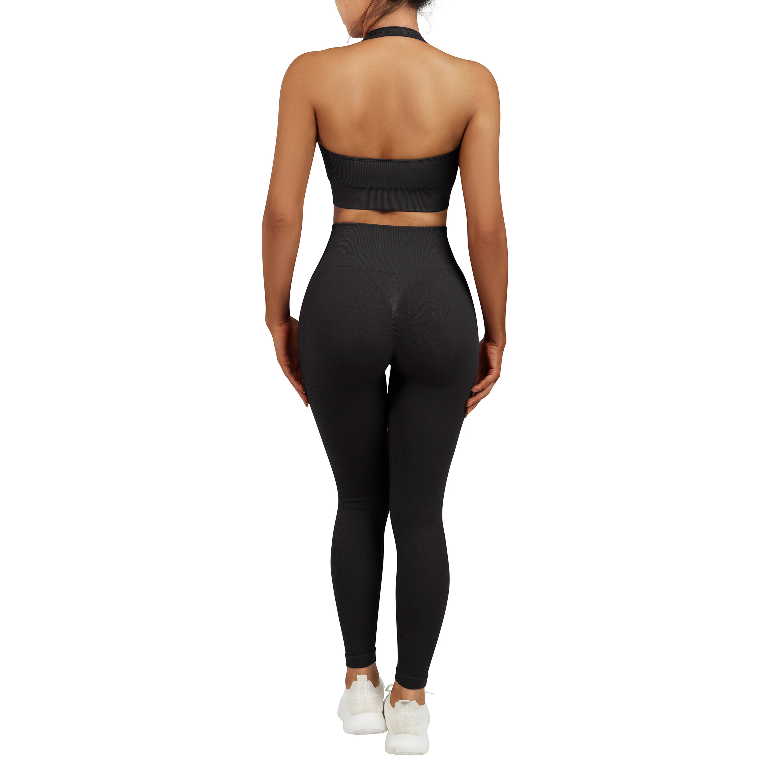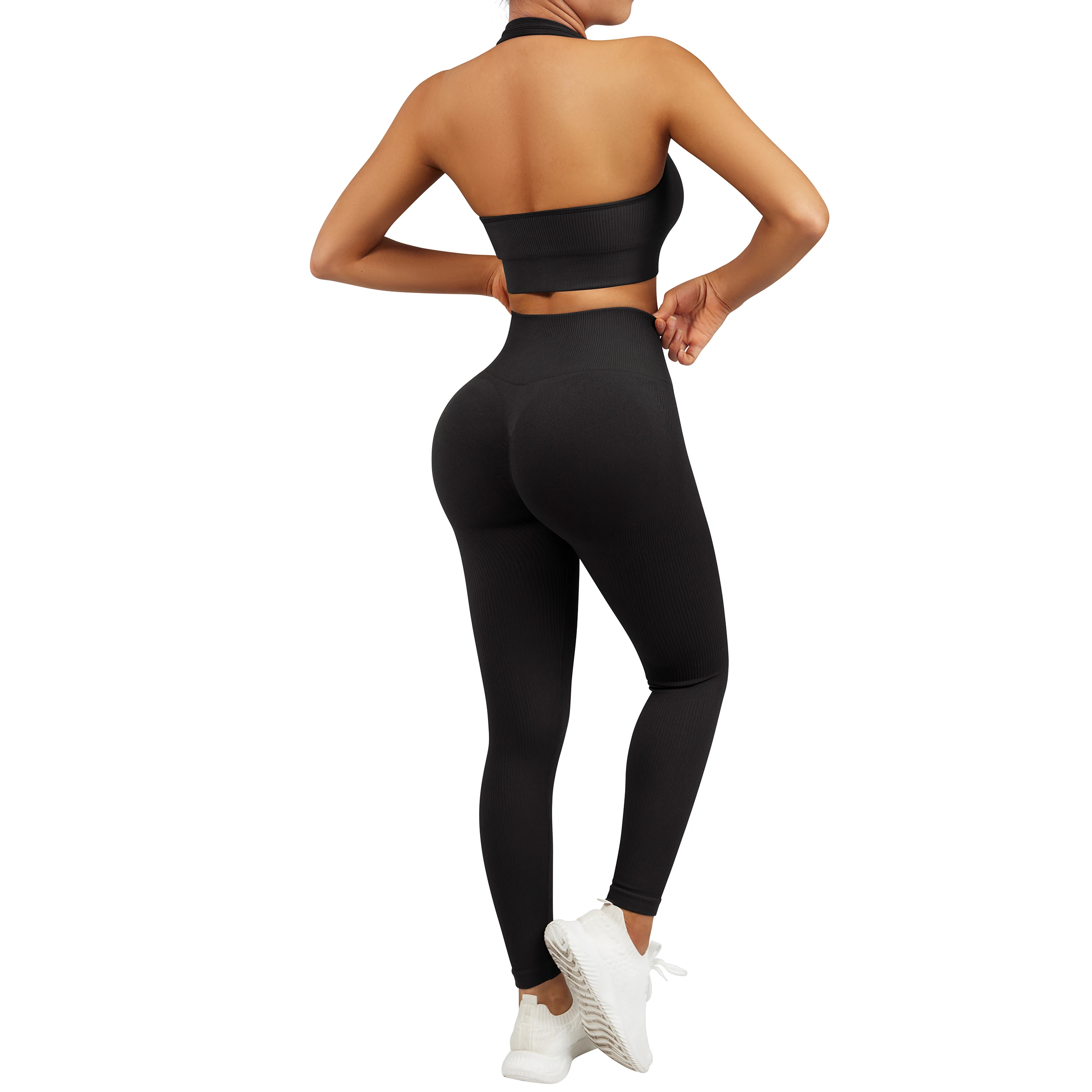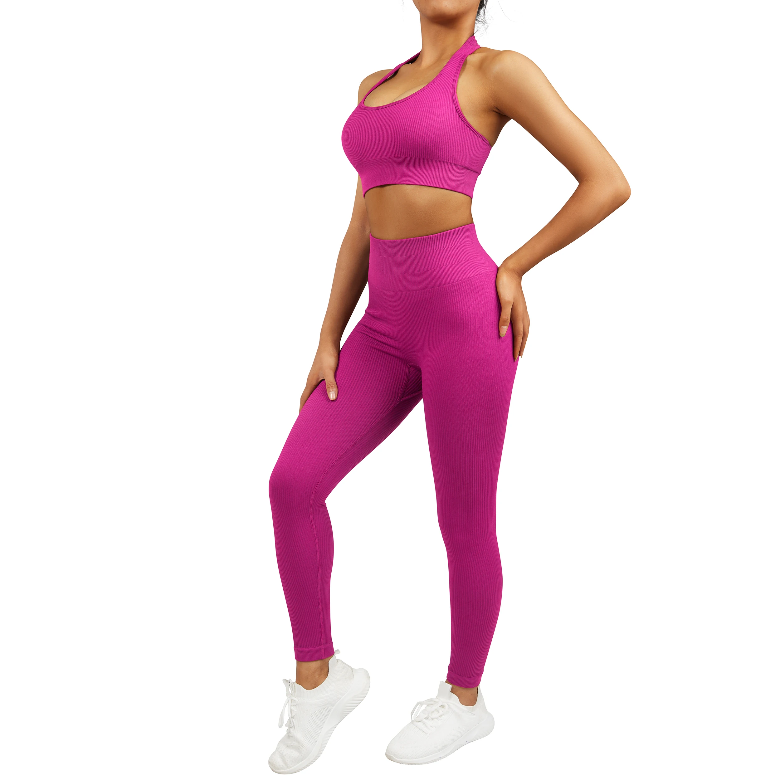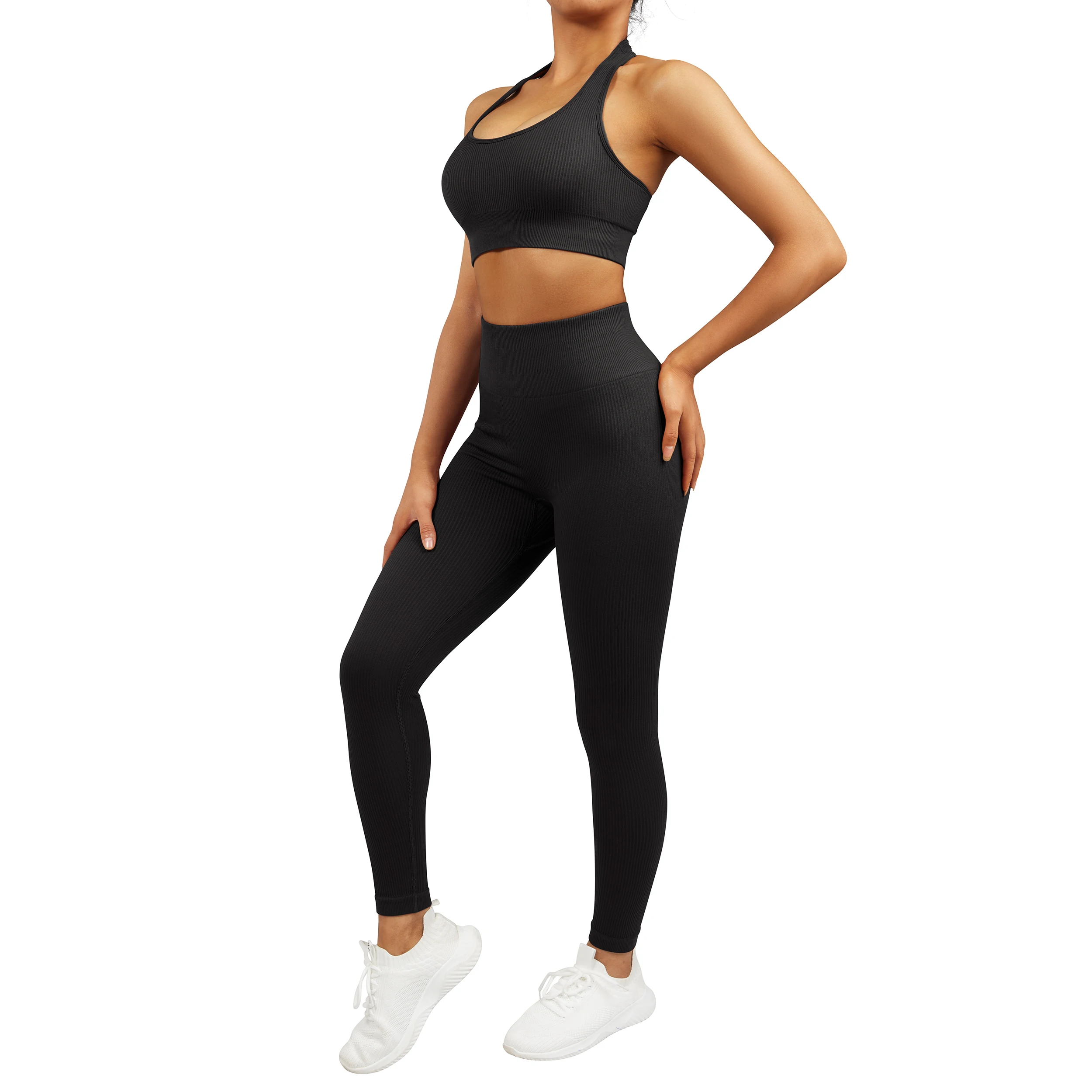 Tracksuit Workout Outfits for Women Ribbed Sportswear High Waist Legging with Sport Bra Exercise Set Crop Tank Seamless Yoga Set