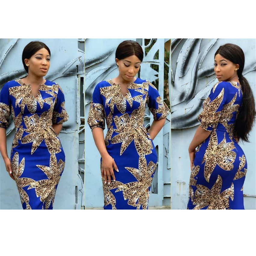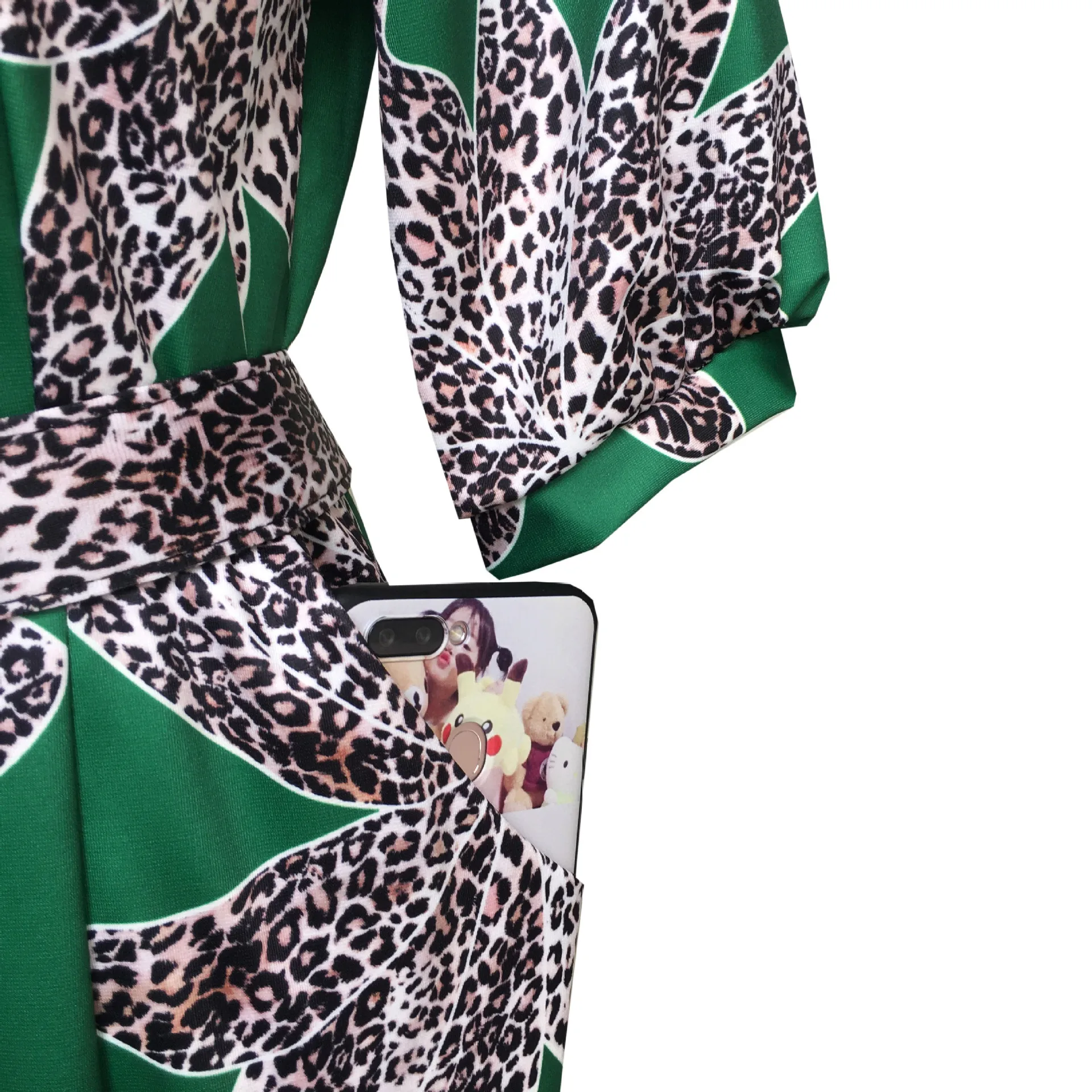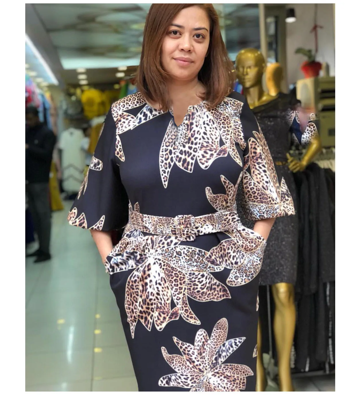 Traditional African Dashiki Woman Leopard Printed Dress V-neck Fashion Fit Clothing New Casual Bazin Party Dresses