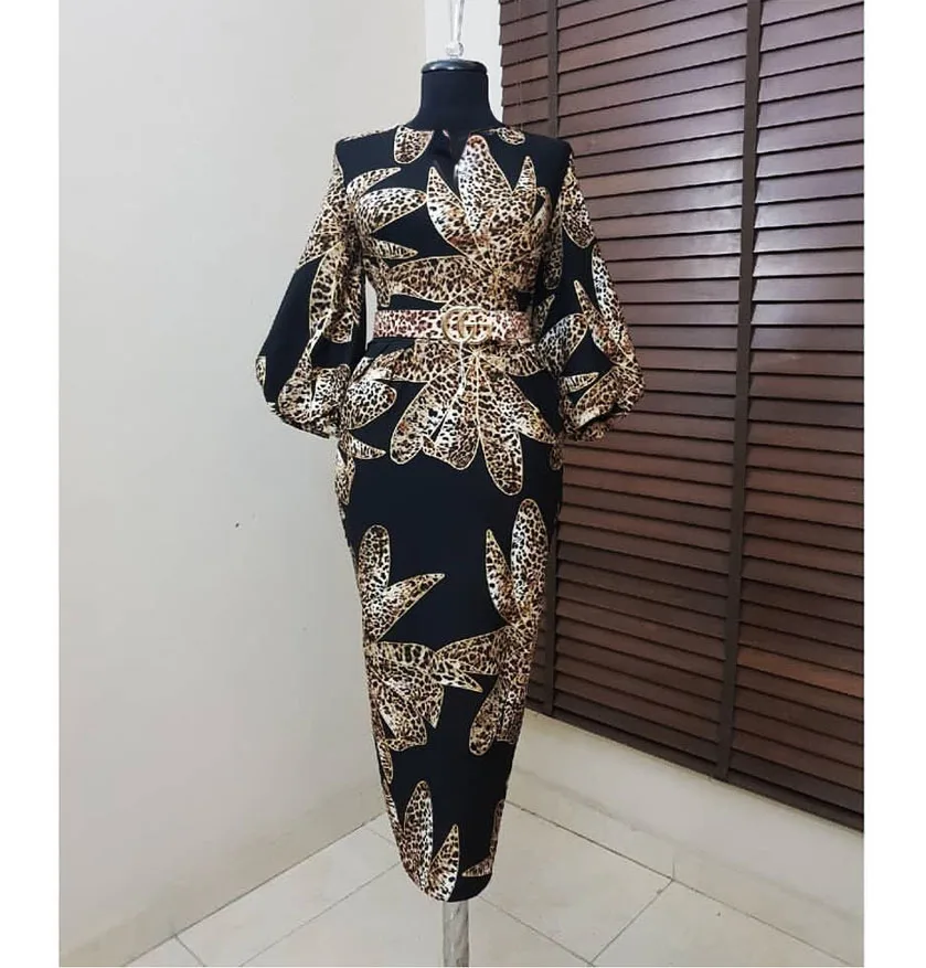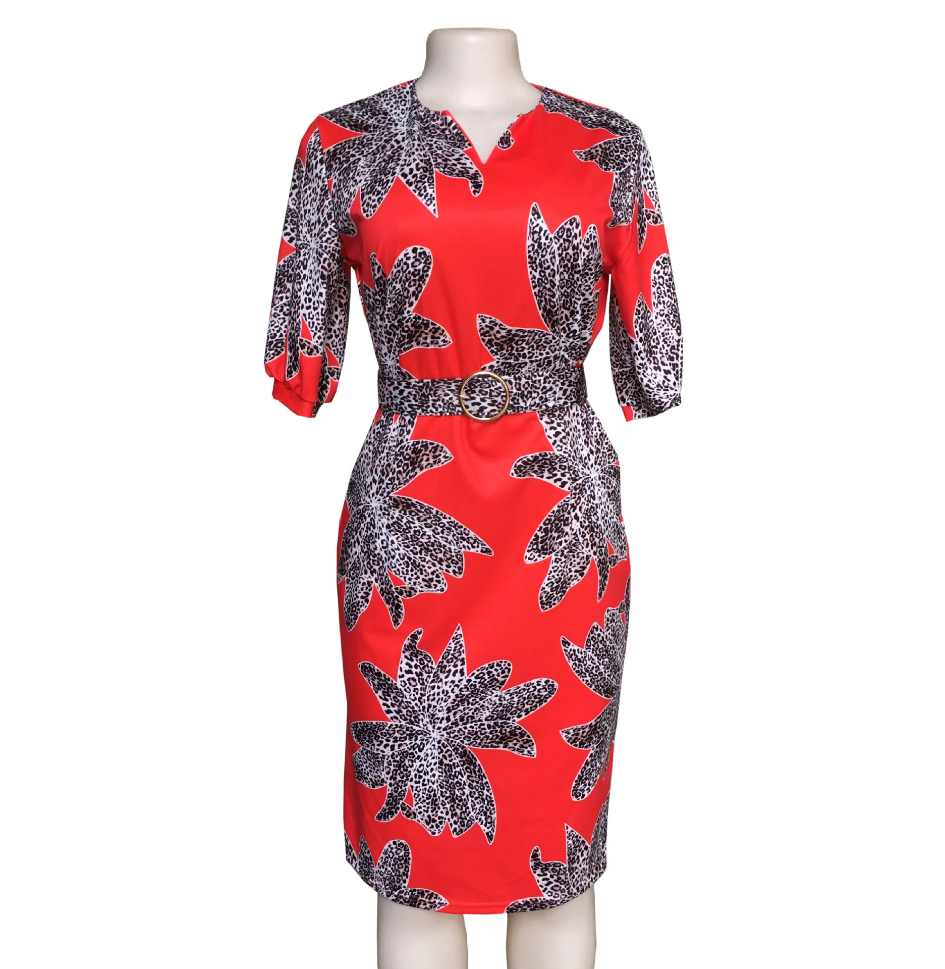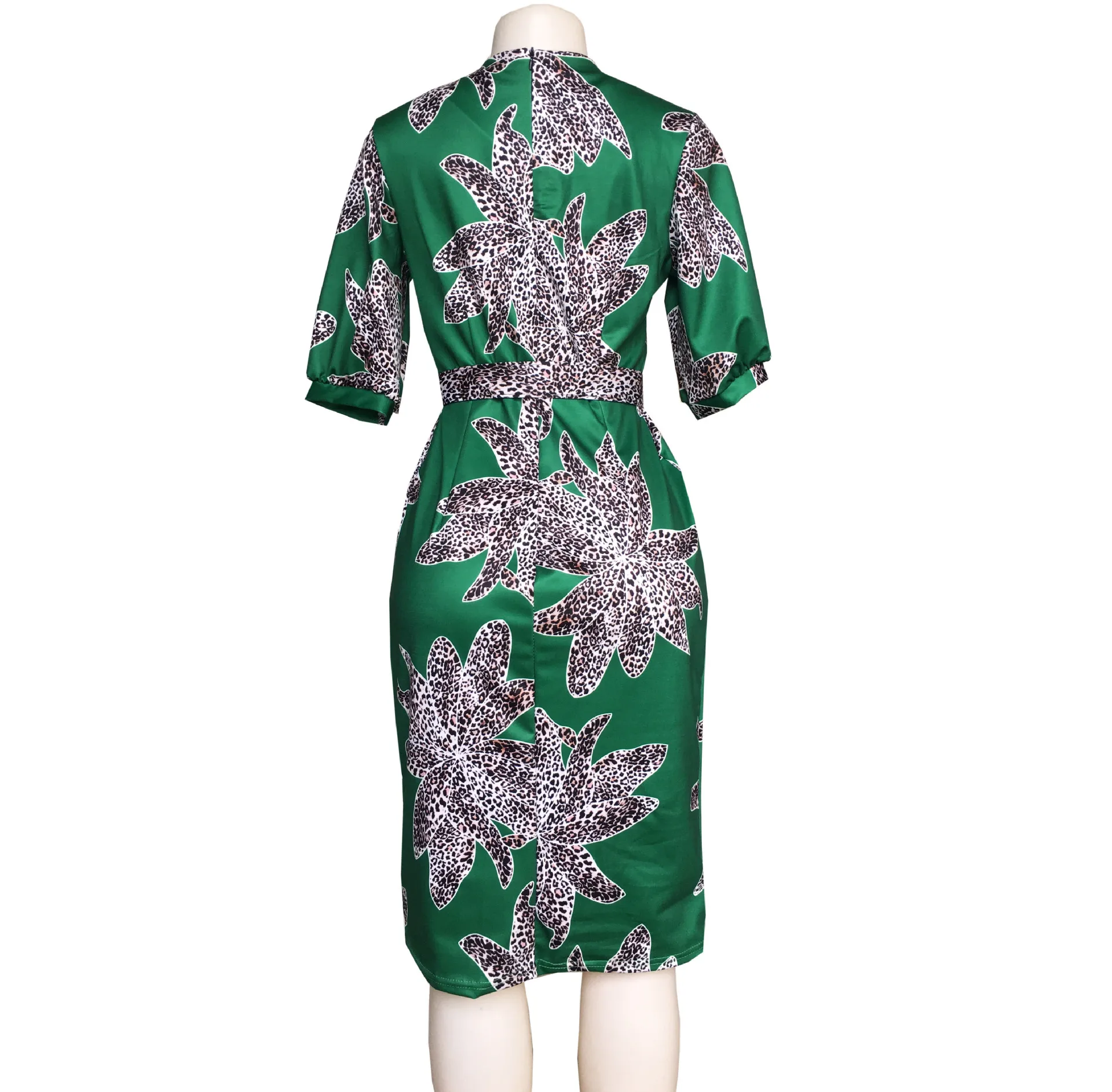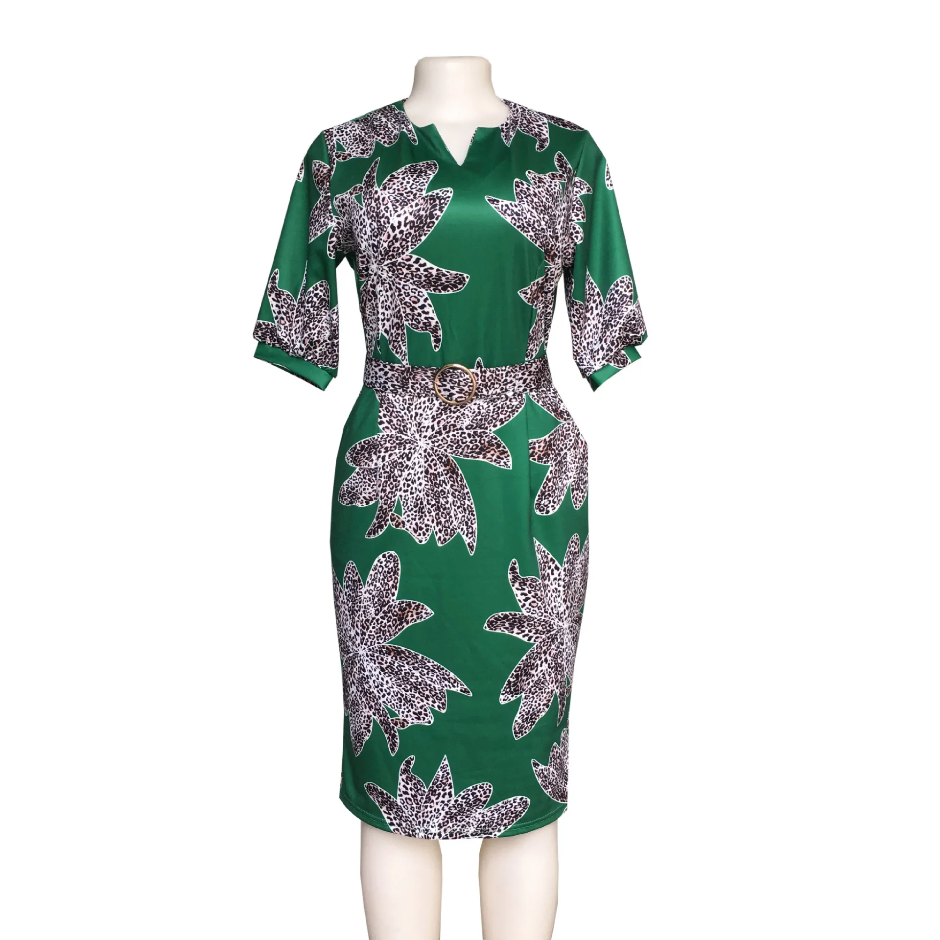 Traditional African Dashiki Woman Leopard Printed Dress V-neck Fashion Fit Clothing New Casual Bazin Party Dresses