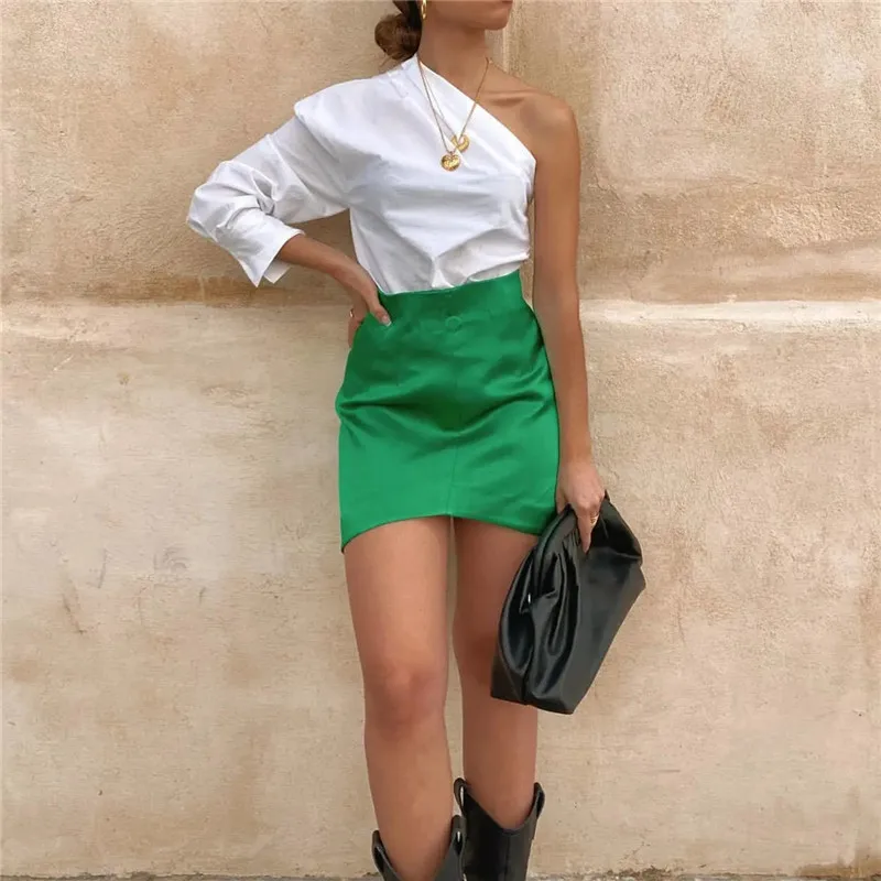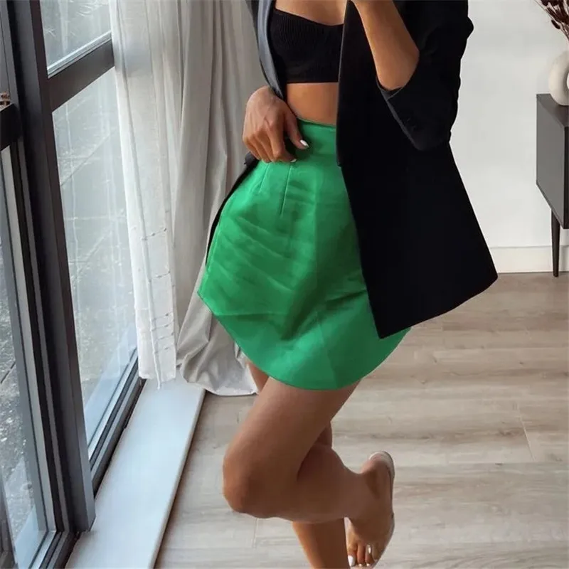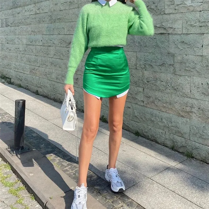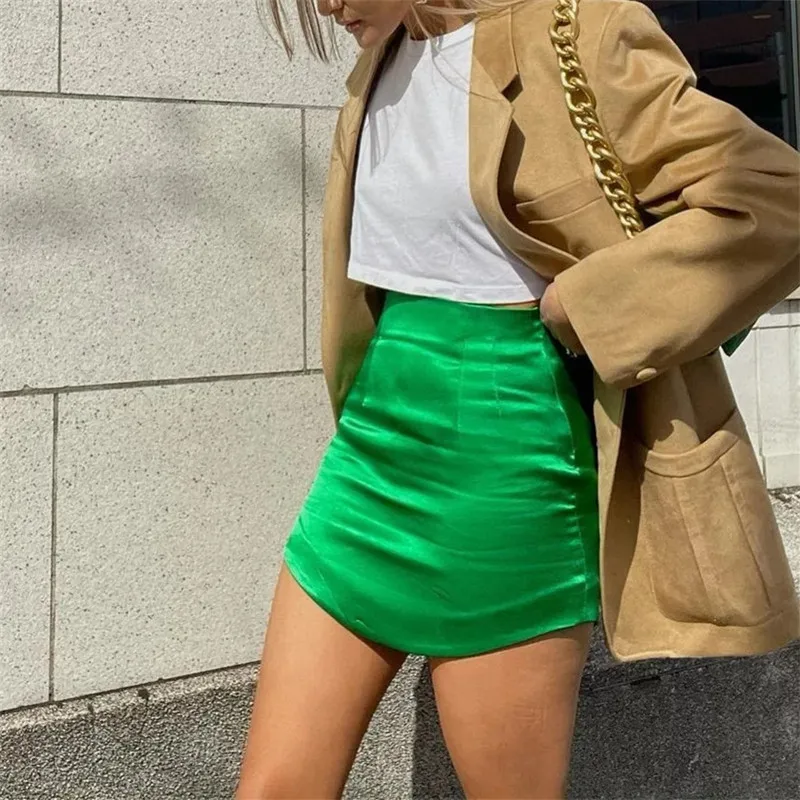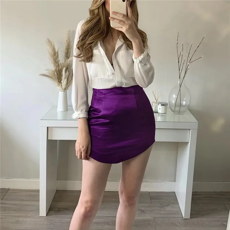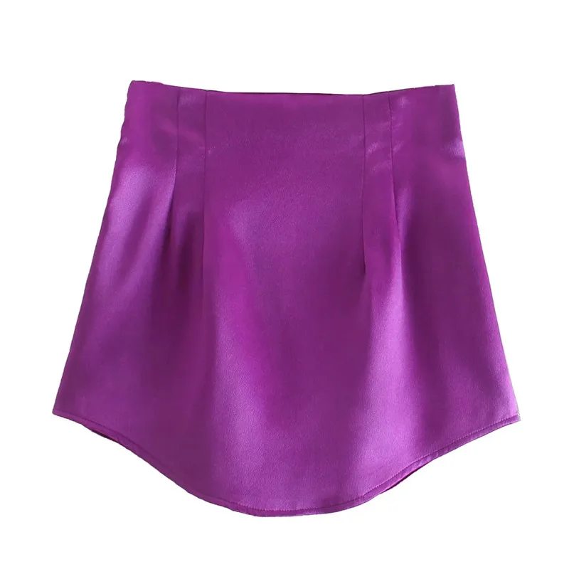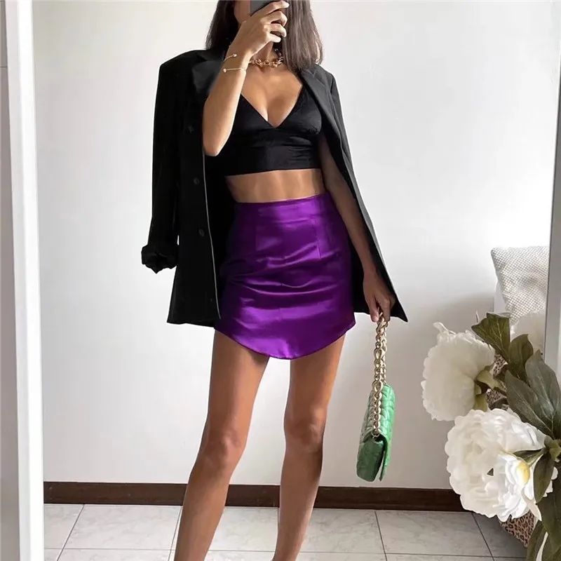 TRAF Woman Skirts Purple Short Skirts Women Green Satin Skirt High Waist Sexy Tight Elegant Mini Skirt Bodycon Autumn Skirt