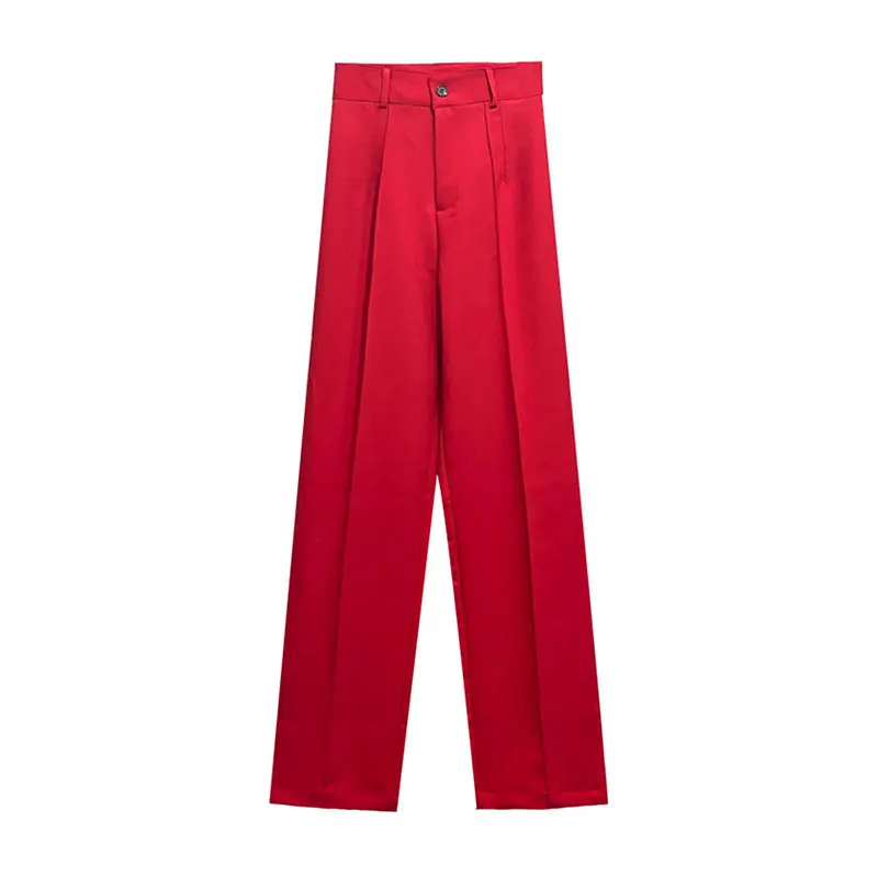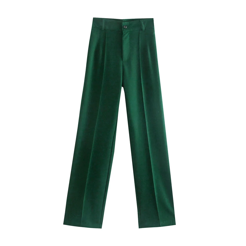 TRAF Women Chic Fashion Office Wear Straight Pants Vintage High Waist Zipper Fly Female Trousers Mujer