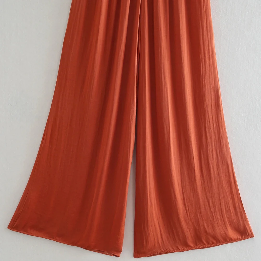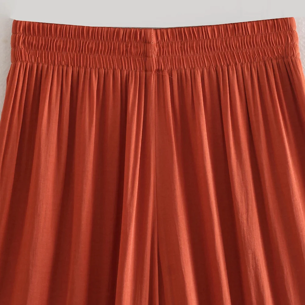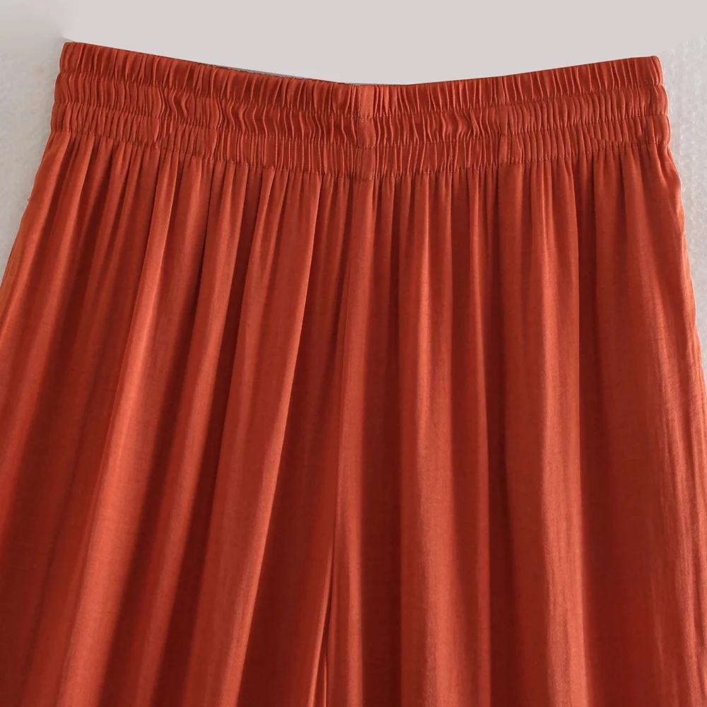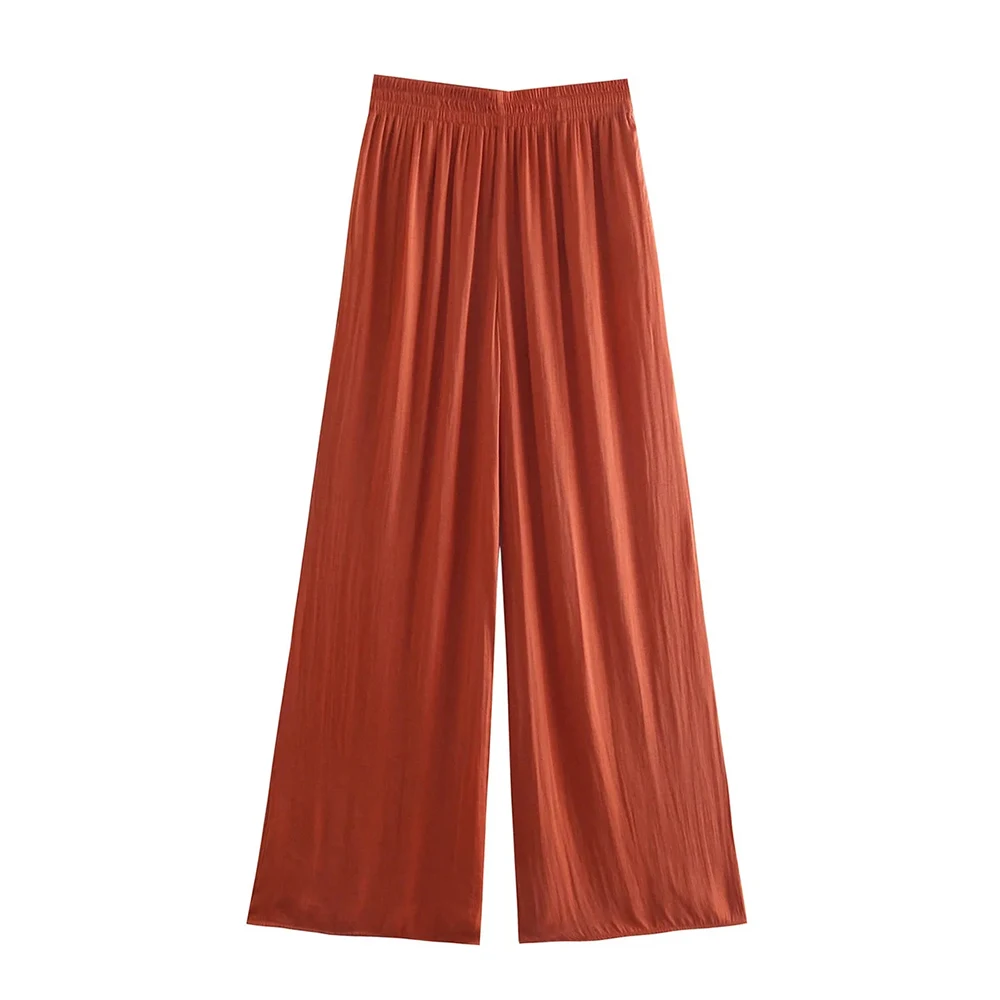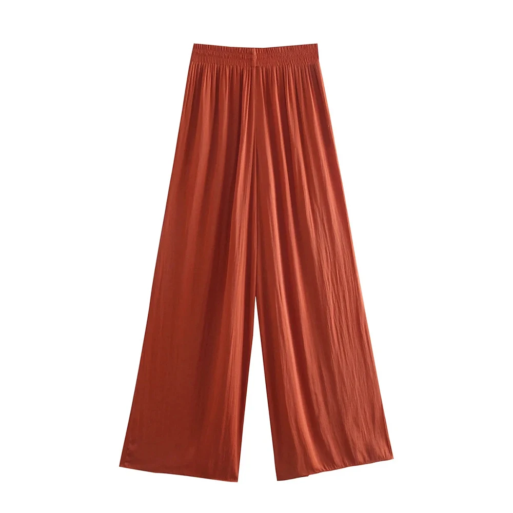TRAF Women Chic Fashion Side Pockets Soft Touch Wide Leg Pants Vintage High Elastic Waist Female Trousers Mujer