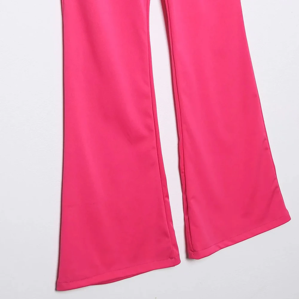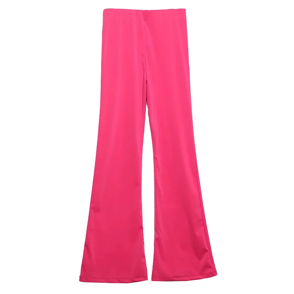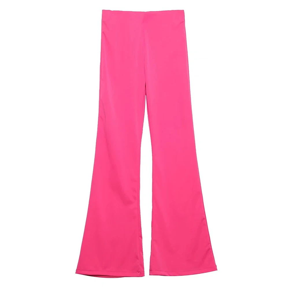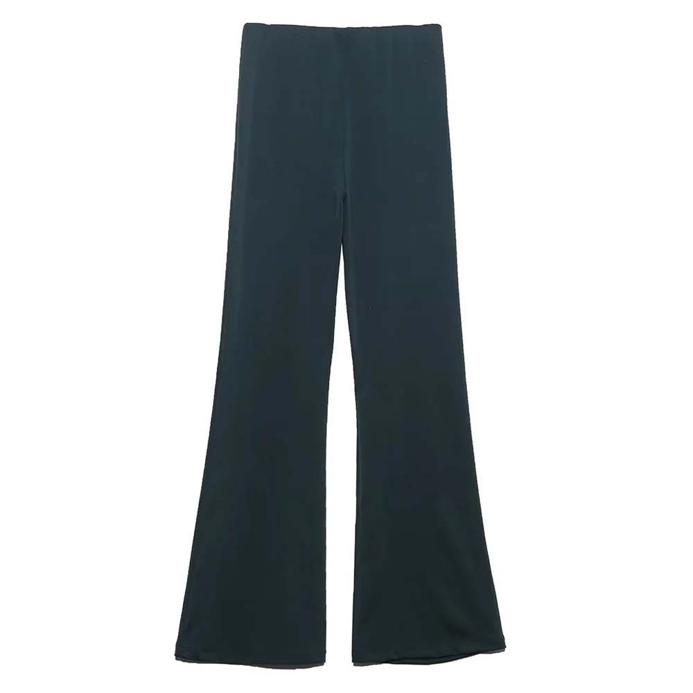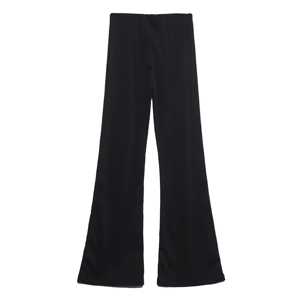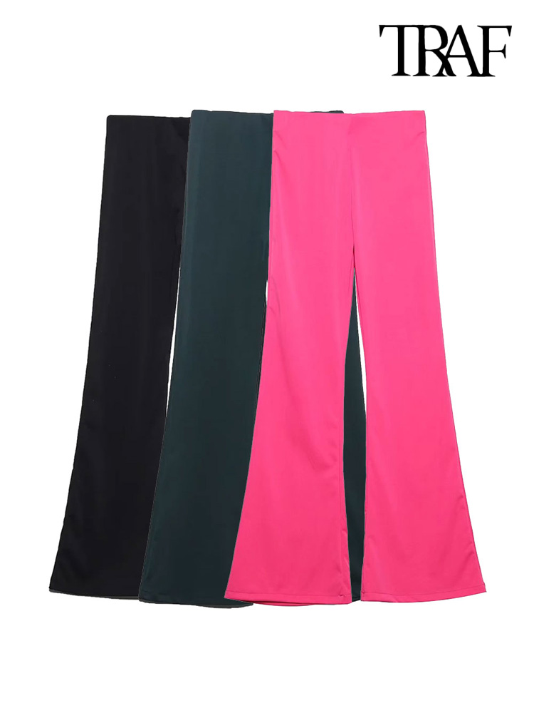 TRAF Women Fashion Basic Flowing Flare Pants Vintage High Waist With Elastic Waistband Female Trousers Mujer
