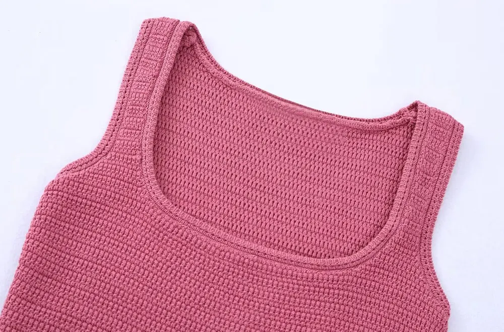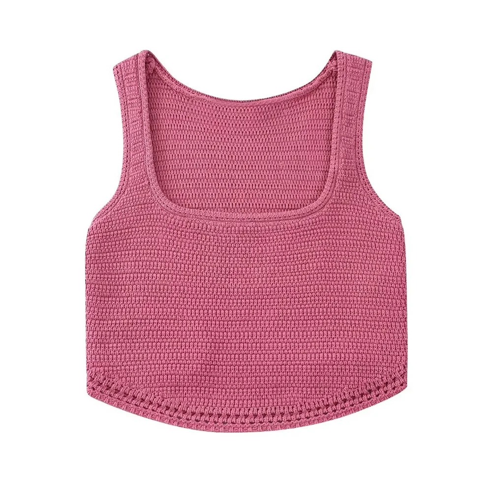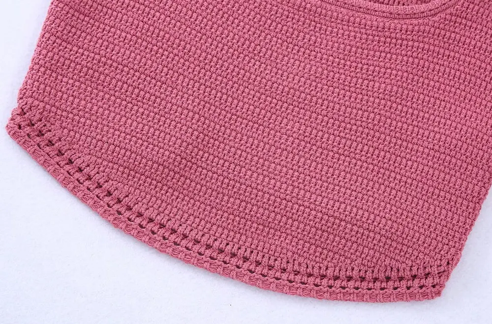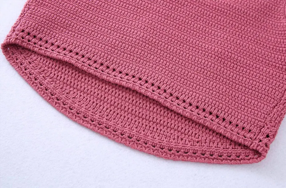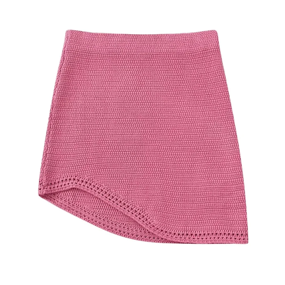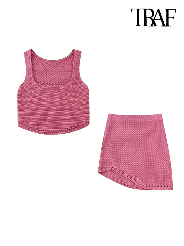 TRAF Women Fashion Crochet Knit Crop Tank Tops And High Elastic Waist Asymmetric Mini Skirt Female Two Piece Sets Mujer