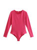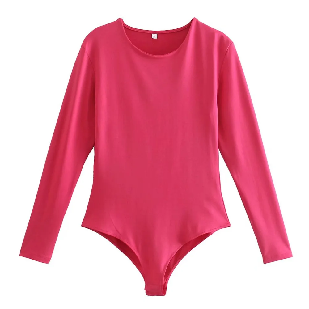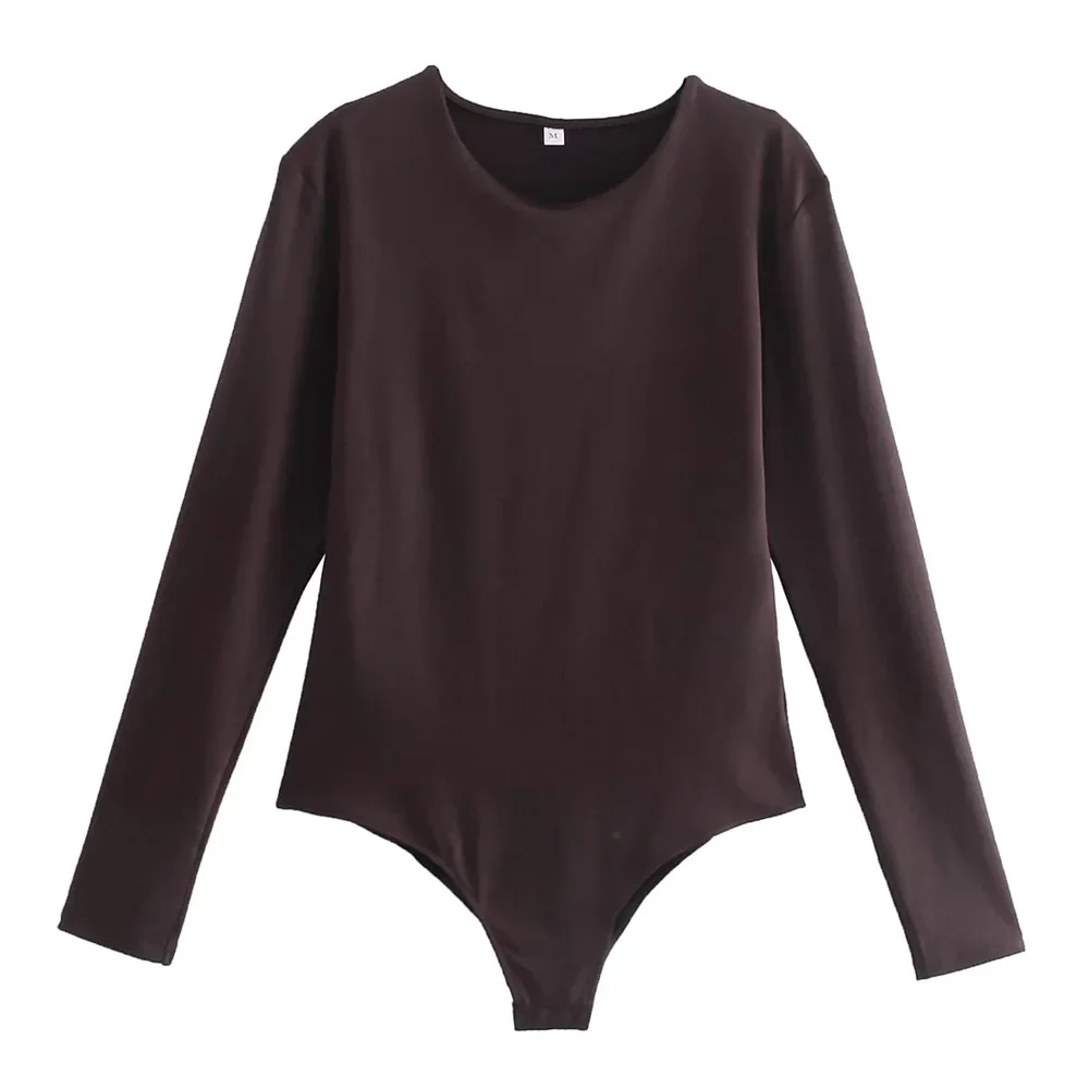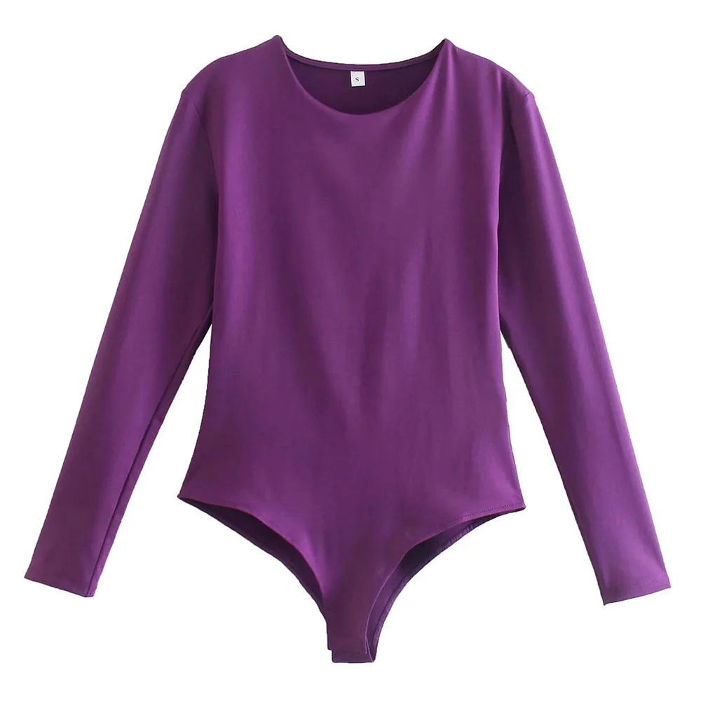 TRAF Women Fashion Fitted Basic Snap-button Bodysuits Vintage O Neck Long Sleeve Female Playsuits Mujer