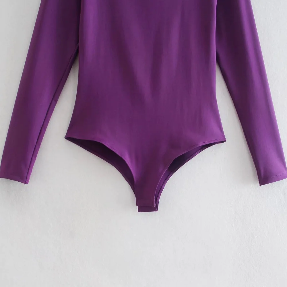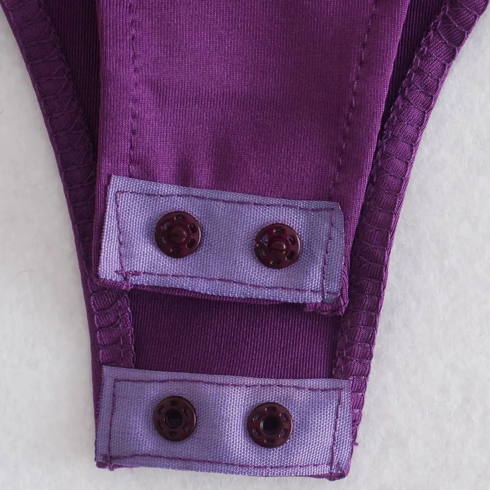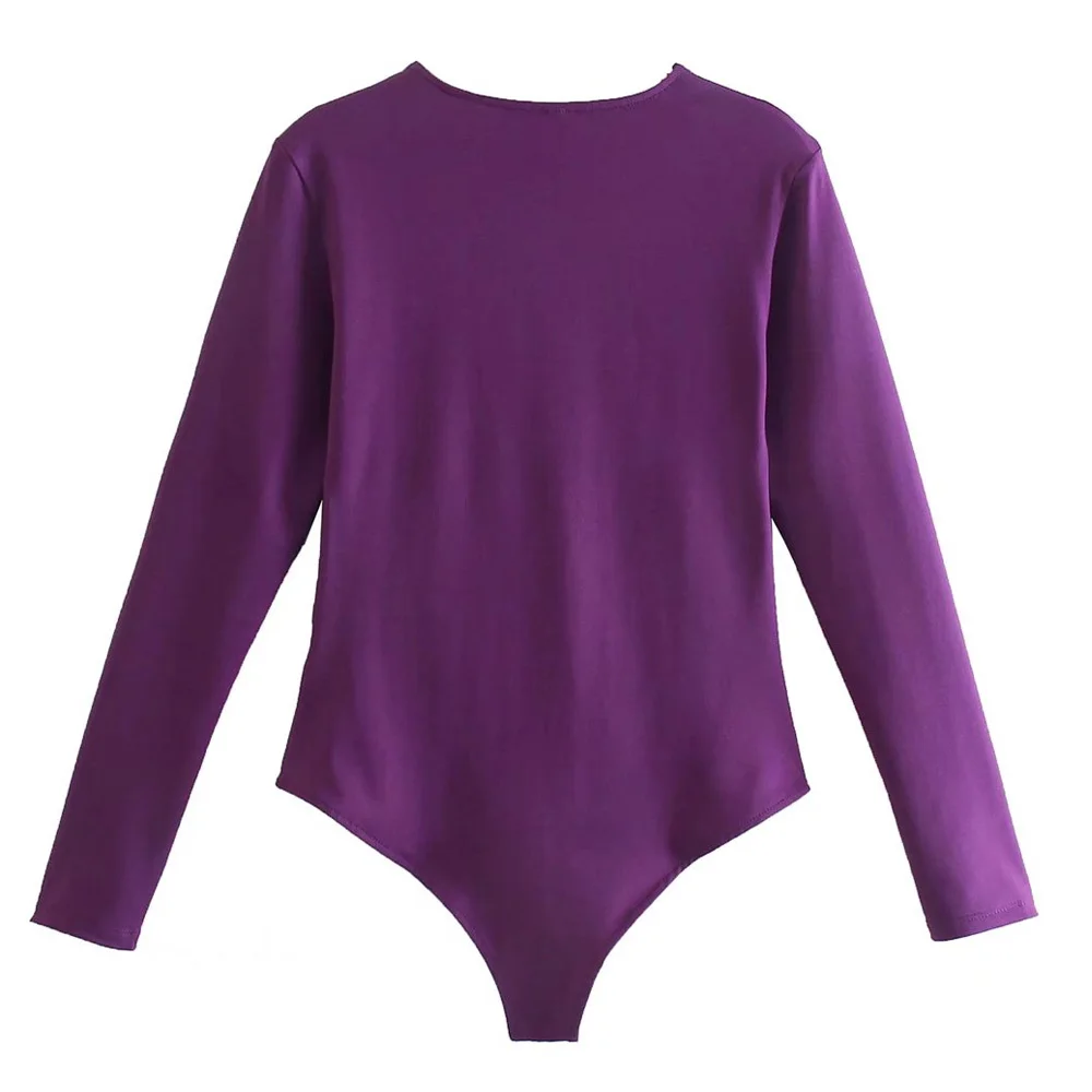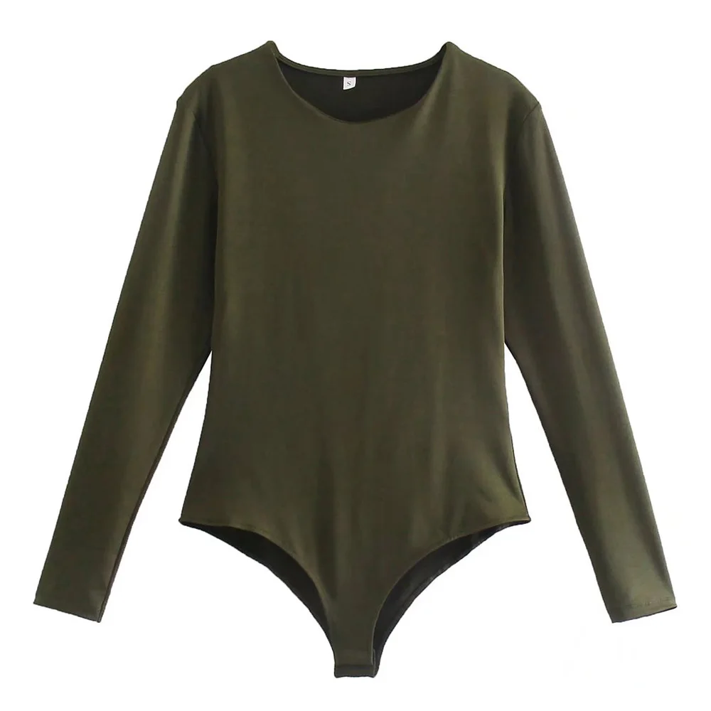 TRAF Women Fashion Fitted Basic Snap-button Bodysuits Vintage O Neck Long Sleeve Female Playsuits Mujer