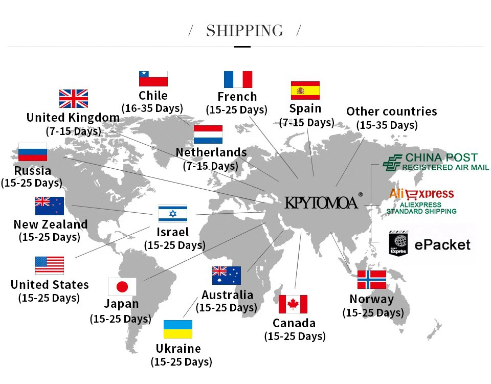 Packages from our warehouse in China will be shipped by ePacket or EMS depending on the weight and size of the product. Packages shipped from our US warehouse are shipped through USPS.