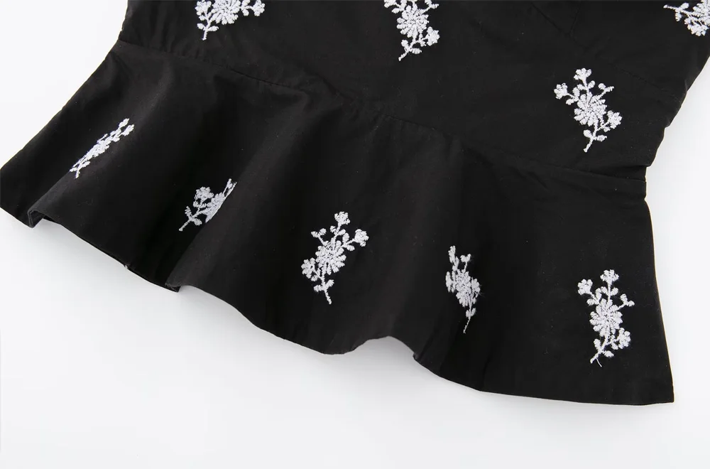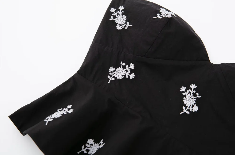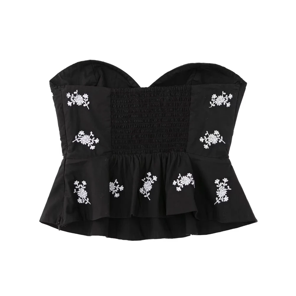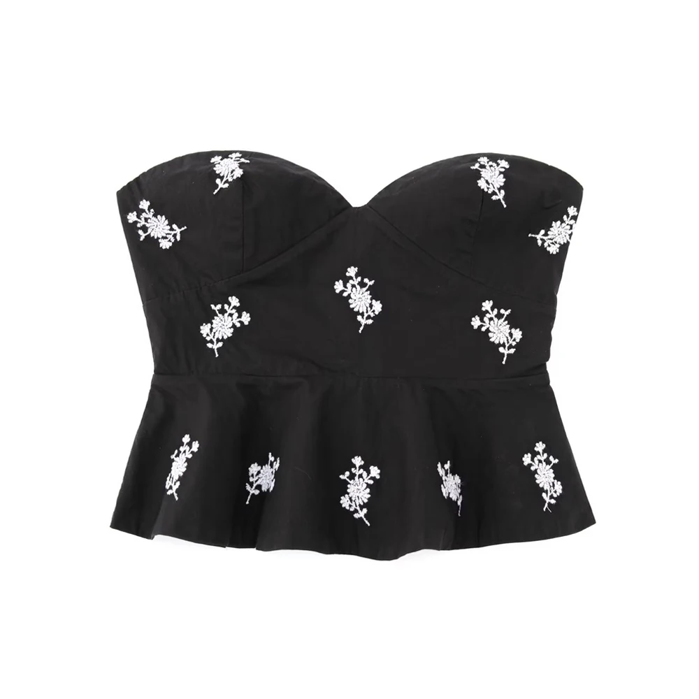 TRAF Women Fashion Floral Embroidered Cropped Poplin Bustier Tops Vintage Strapless Side Zipper Female Camis Mujer