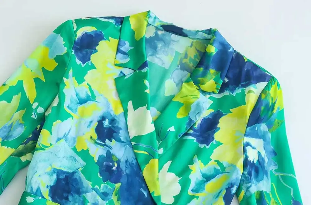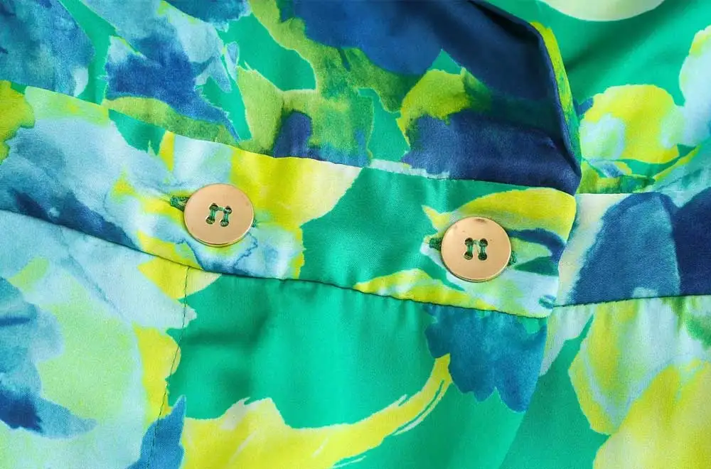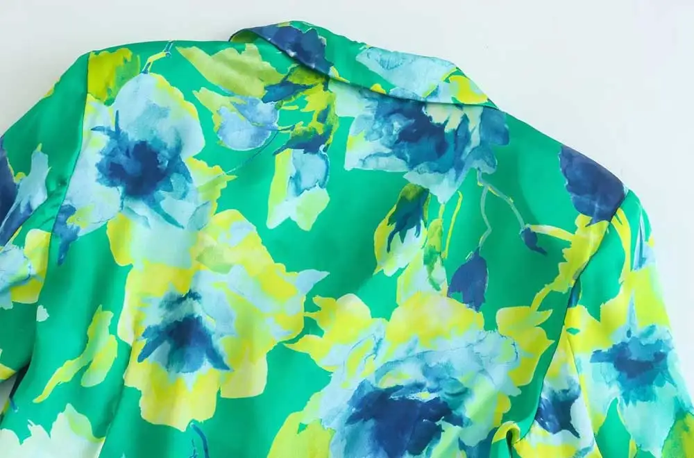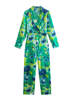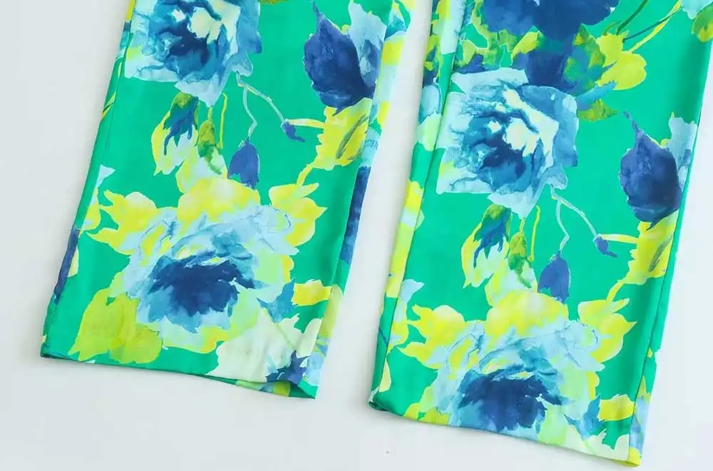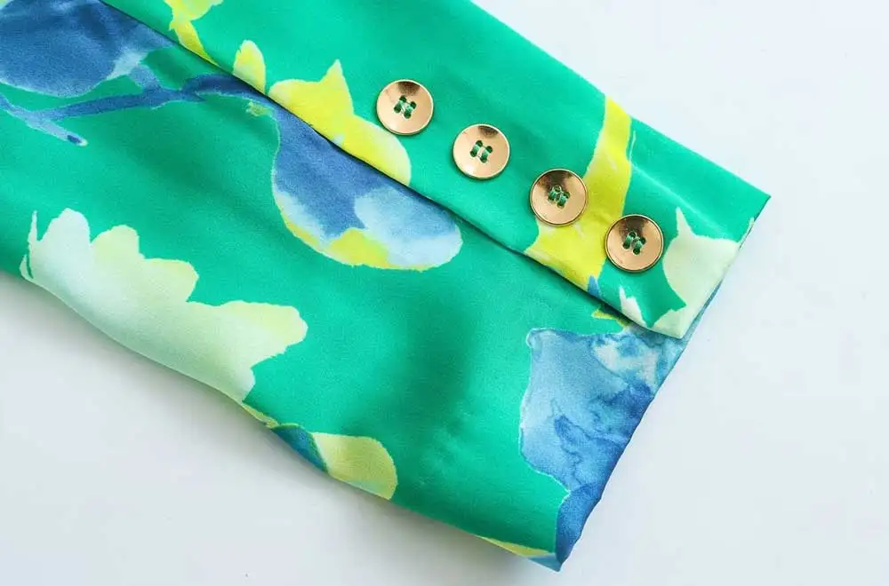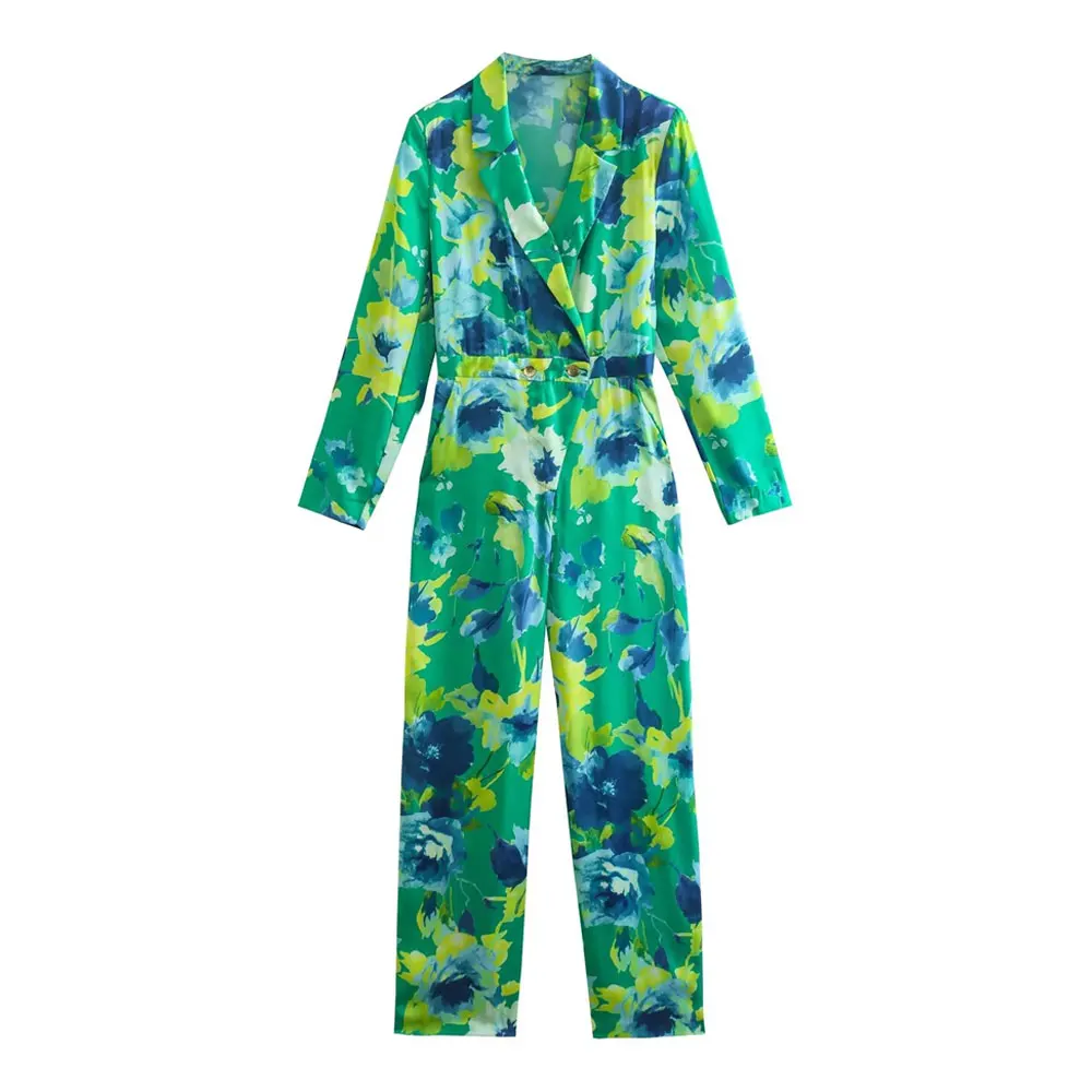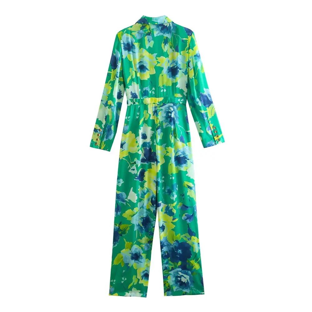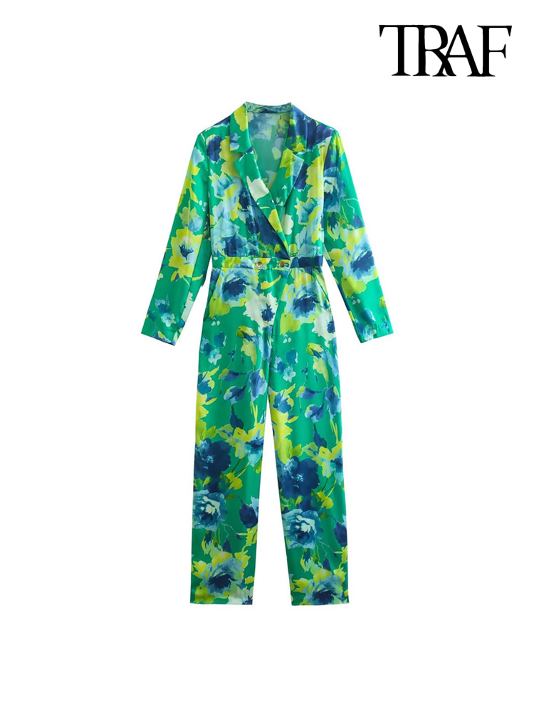 TRAF Women Fashion Floral Print Straight Jumpsuits Vintage Long Sleeve Front Buttons Female Playsuits Mujer