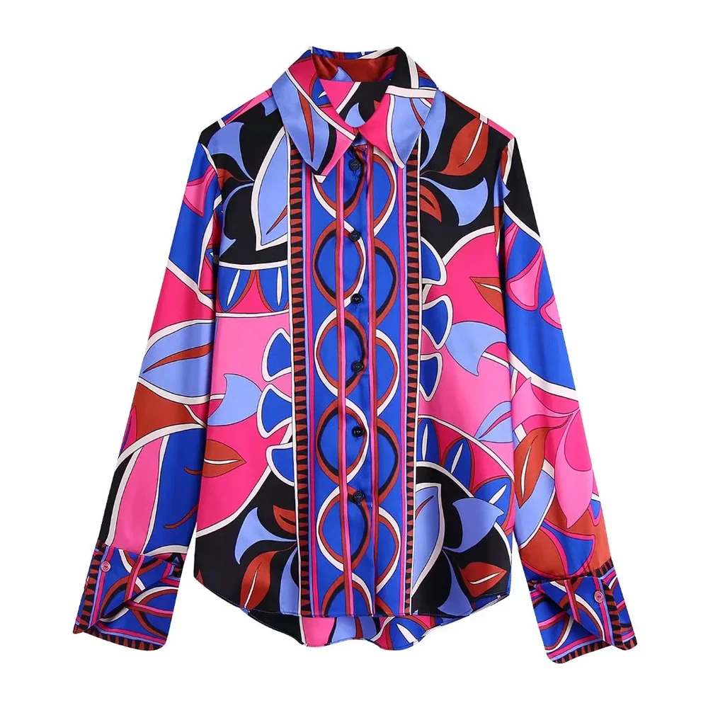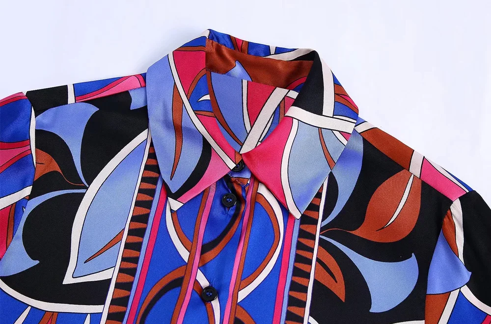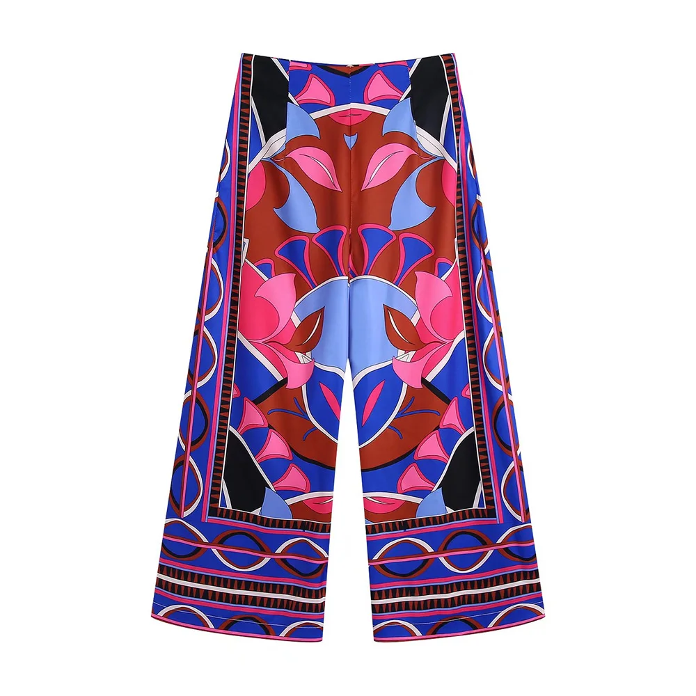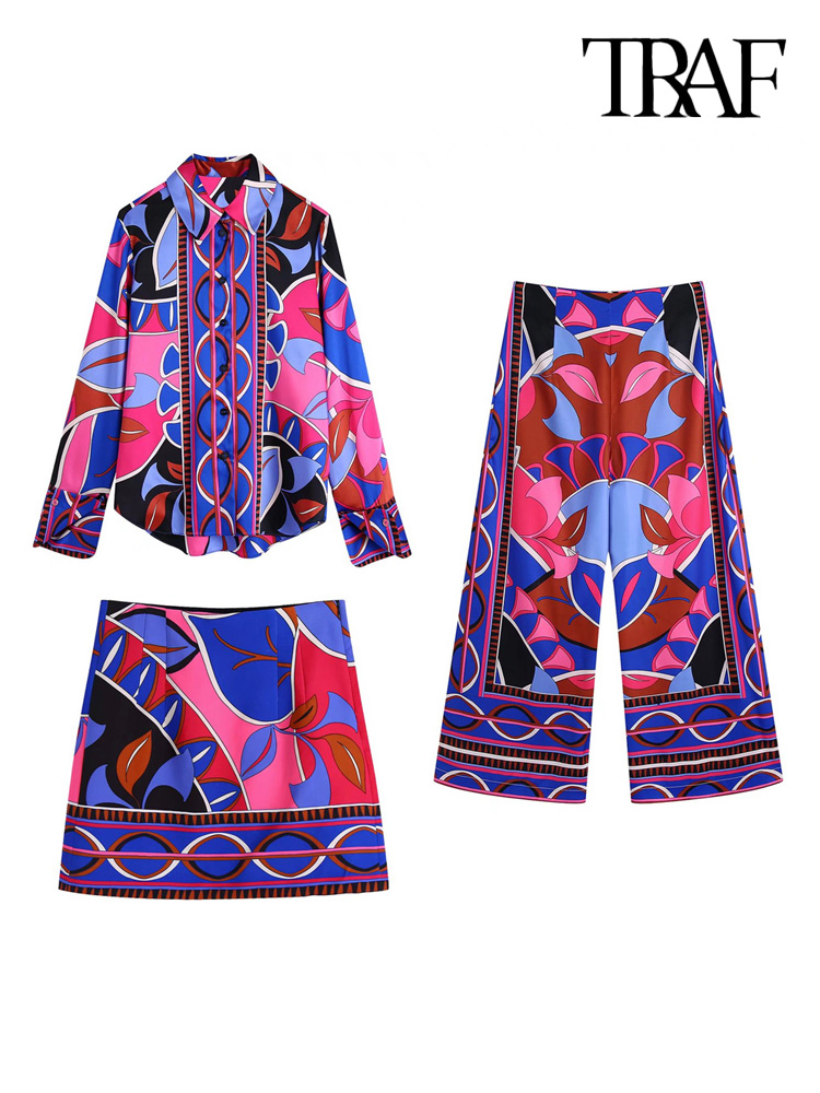 TRAF Women Fashion Flowing Printed Shirts And High Waist Ankle Wide leg Pants And A Line Mini Skirt Female 3pcs Sets Mujer