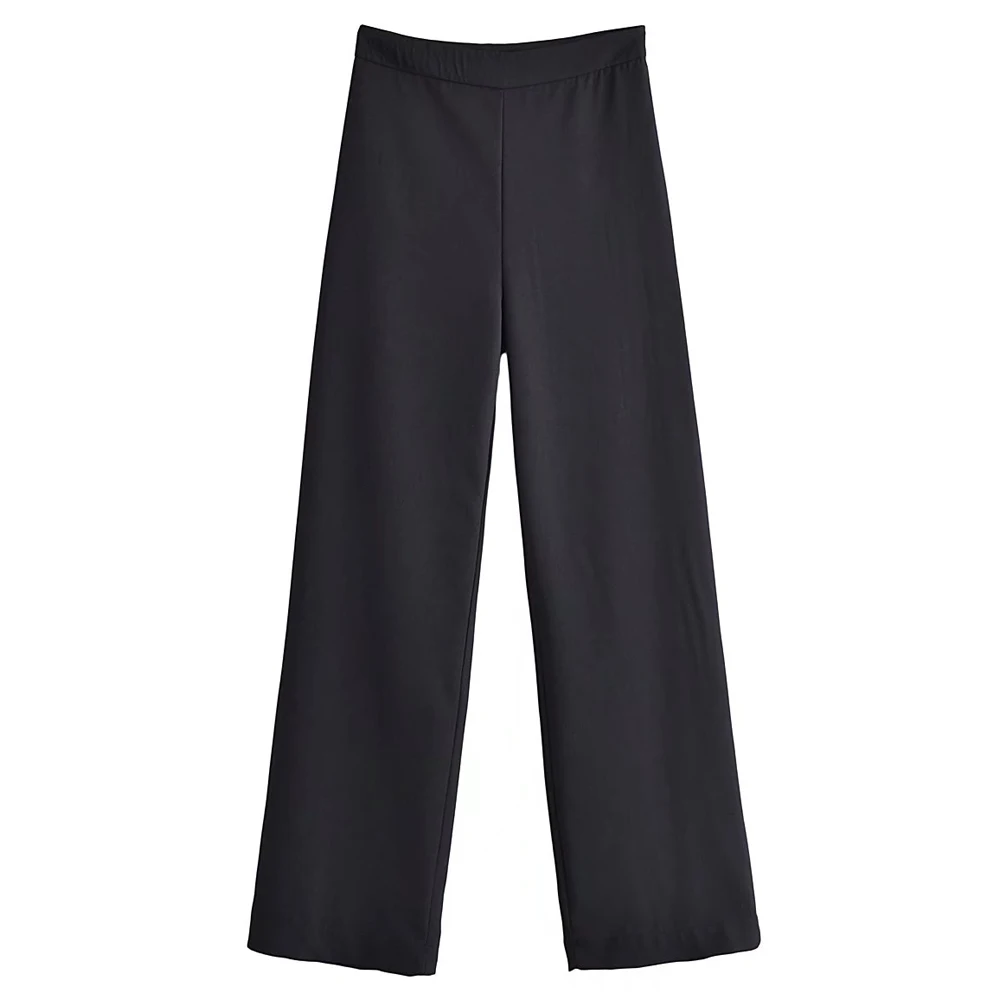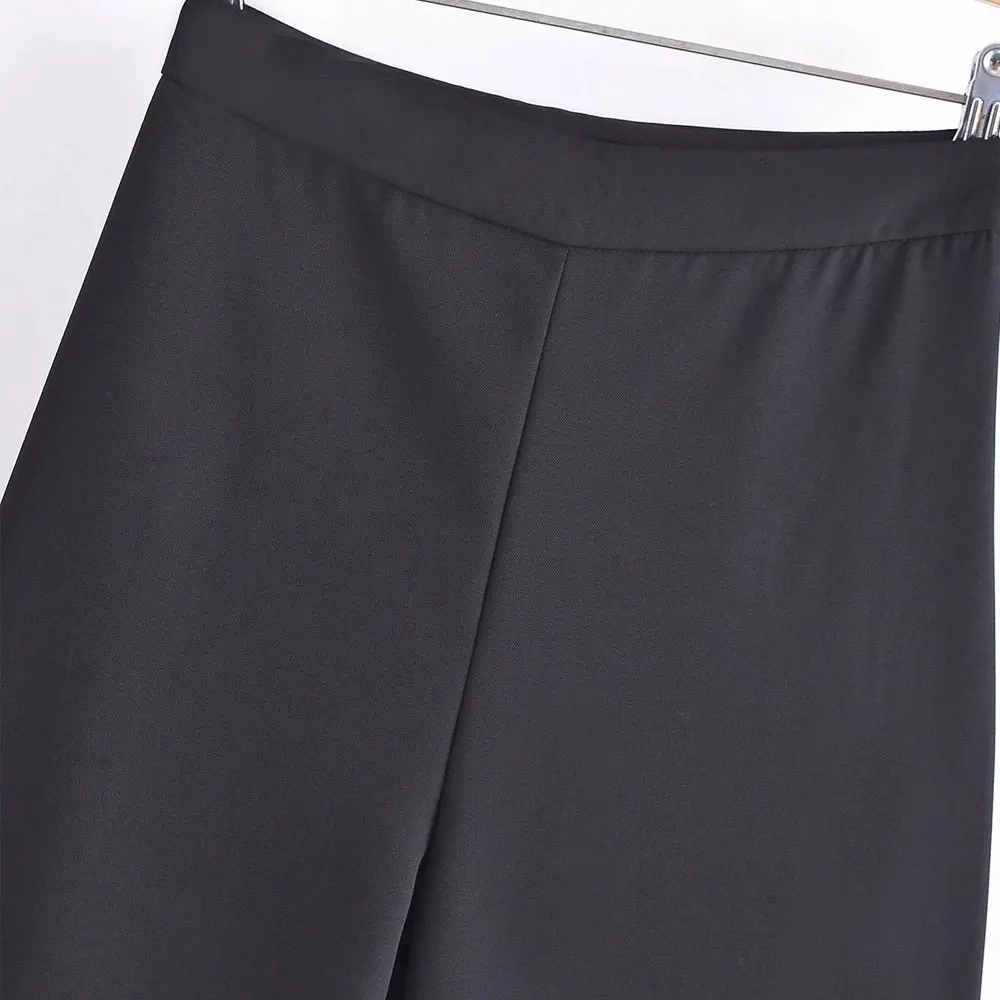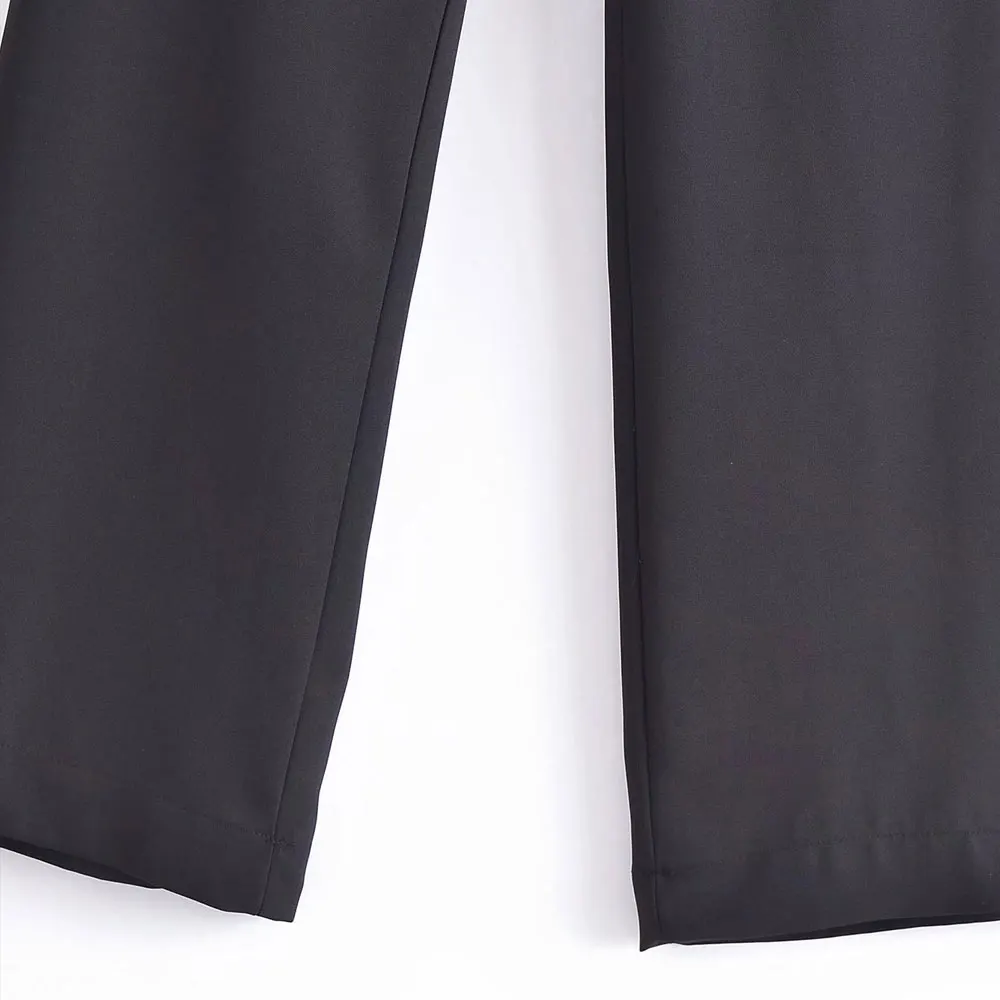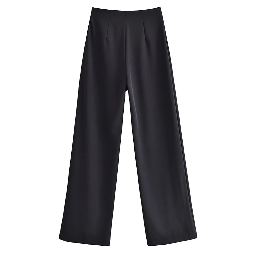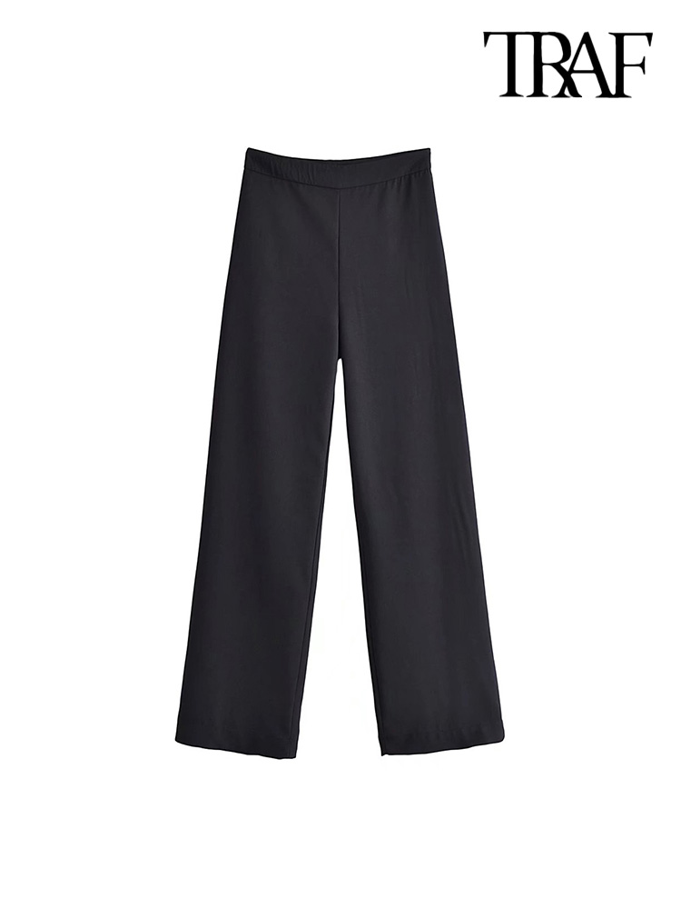 TRAF Women Fashion Flowing Wide Leg Pants Vintage High Waist Zipper Fly Female Trousers Mujer