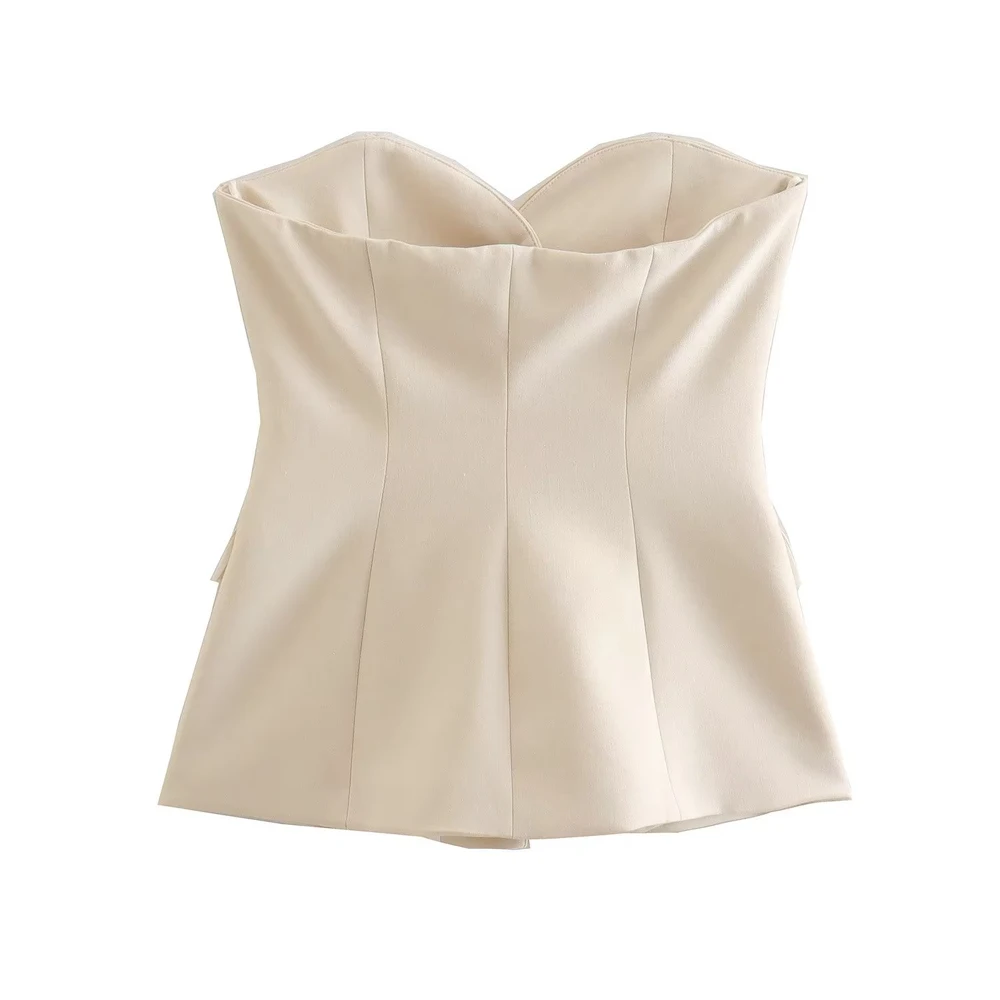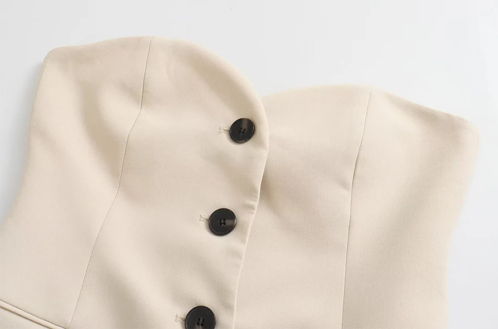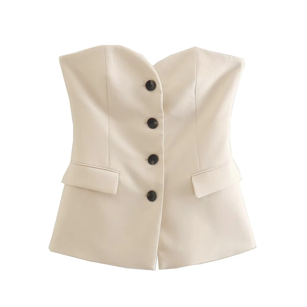 TRAF Women Fashion Front Buttons Bustier Waistcoat And High Waist Zipper Fly Split Hems Trousers Female Two Piece Sets Mujer