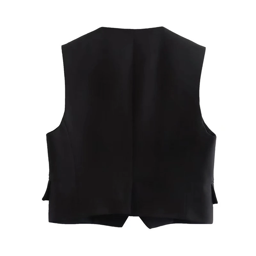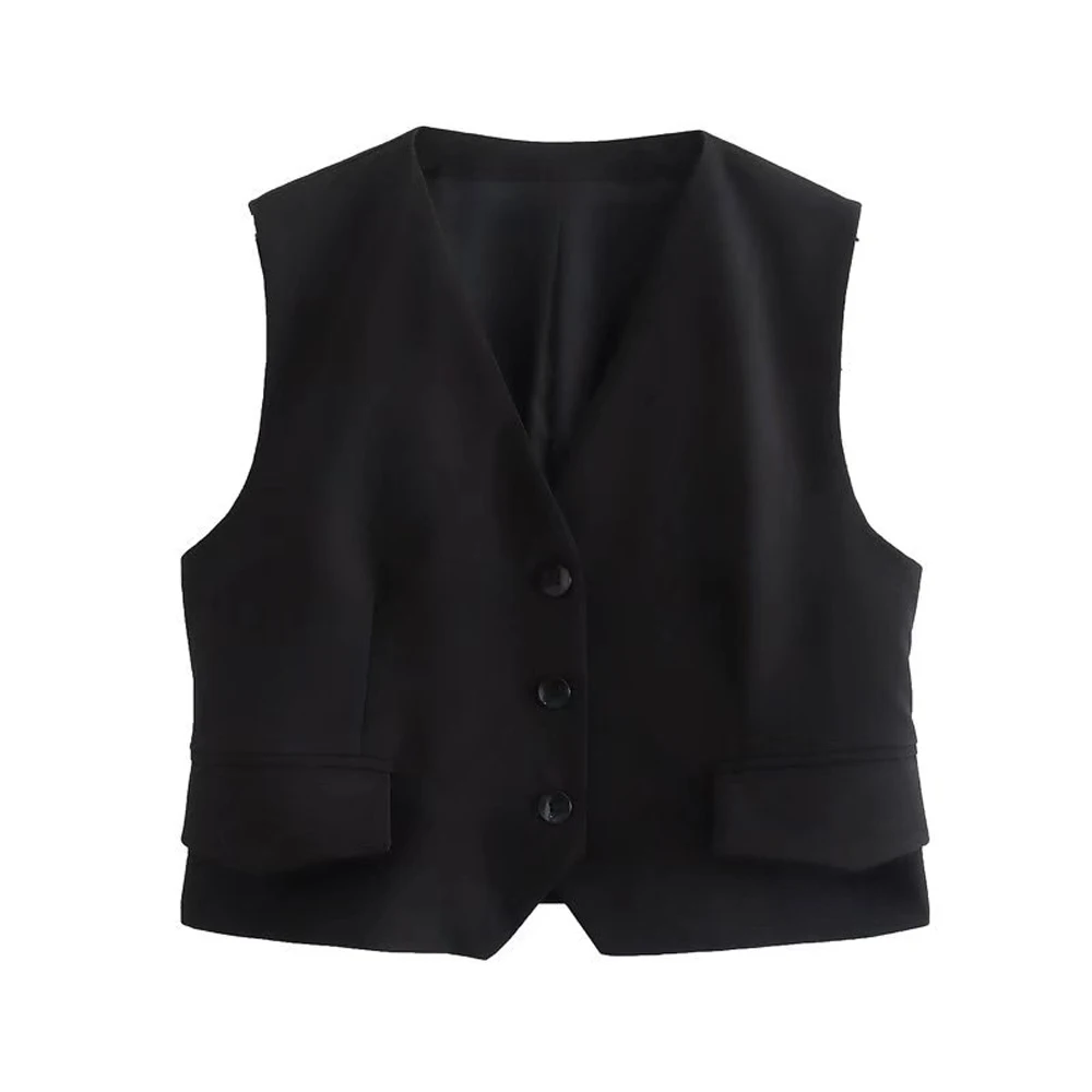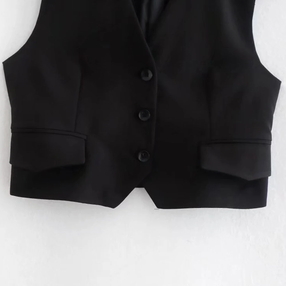 TRAF Women Fashion Front Buttons Waistcoat And High Waist Bermuda Shorts Female Two Pieces Sets Mujer