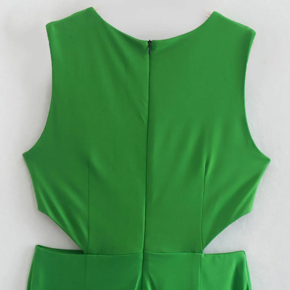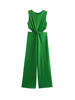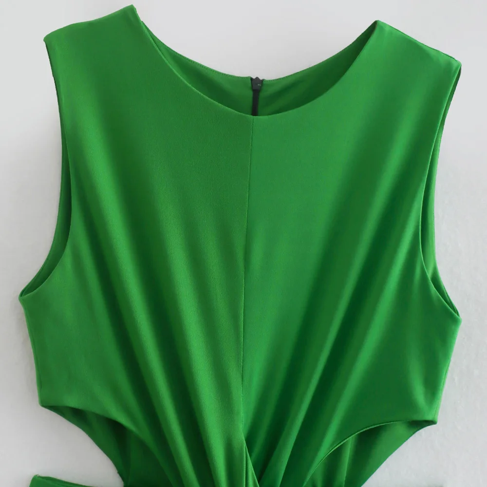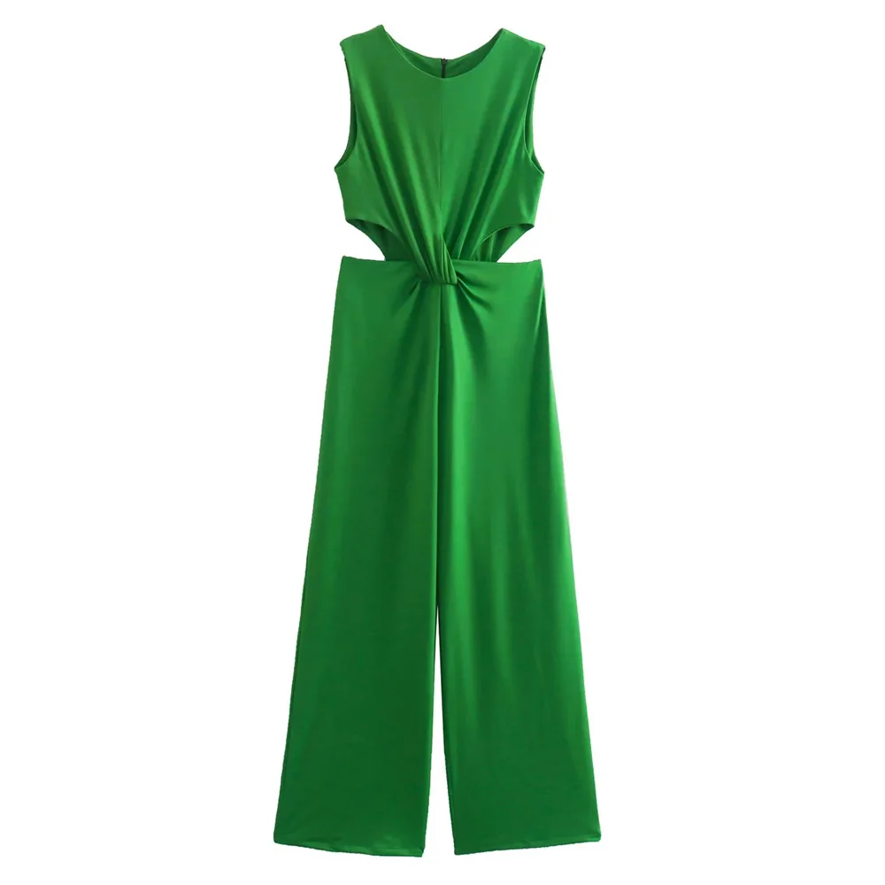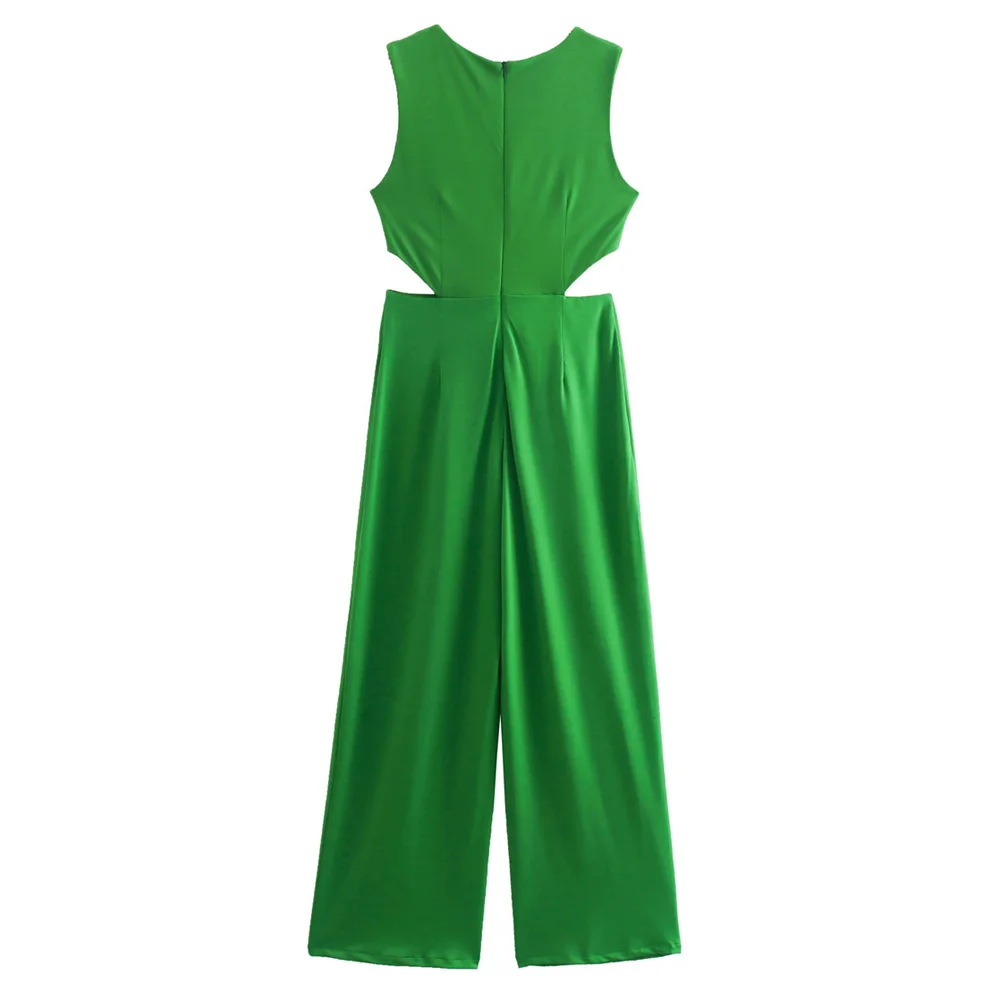 TRAF Women Fashion Front Knotted Hollow Out Jumpsuits Vintage Sleeveless Back Zipper Female Playsuits Mujer