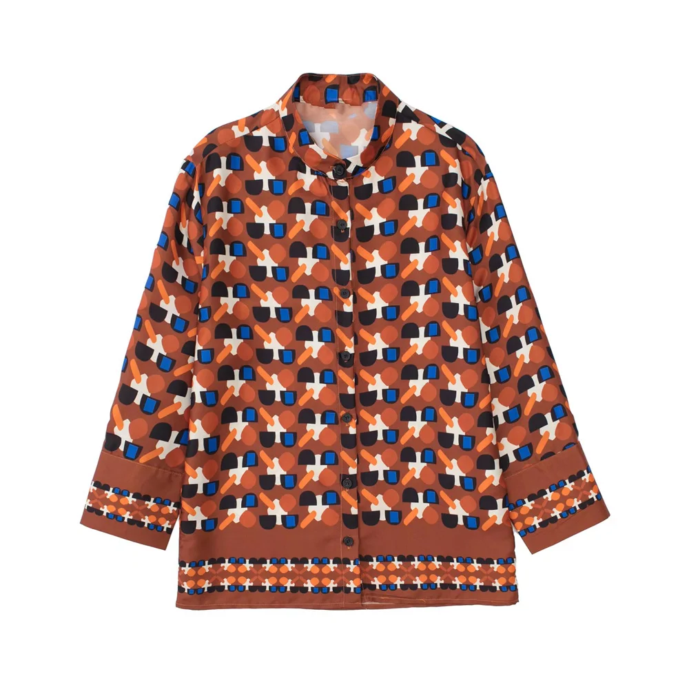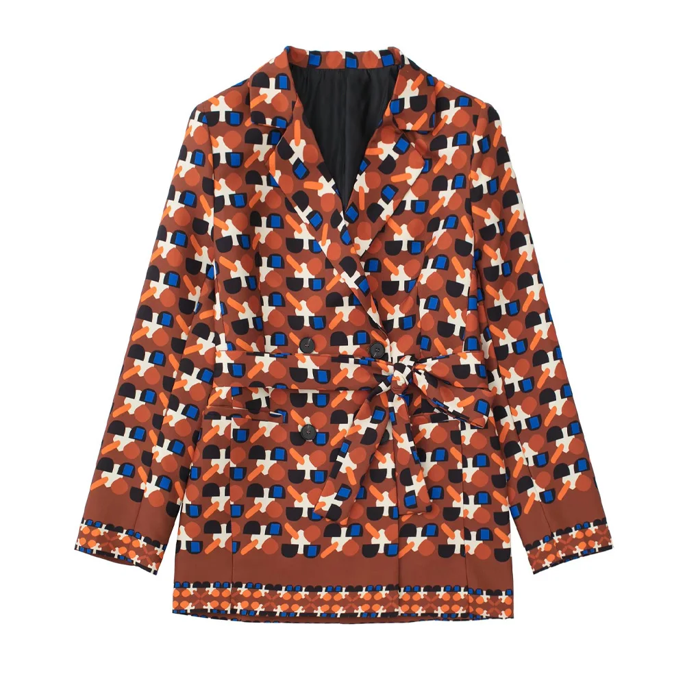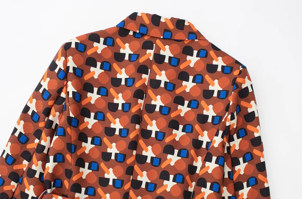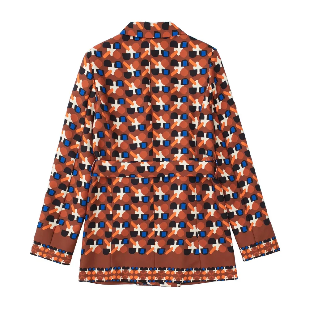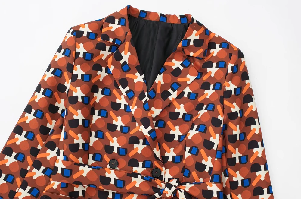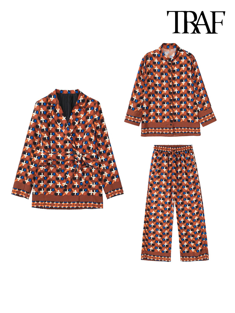 TRAF Women Fashion Printed Blazer Coat And Stand-up Shirts And High Elastic Waist Wide Leg Pants Female 3pc Sets Mujer
