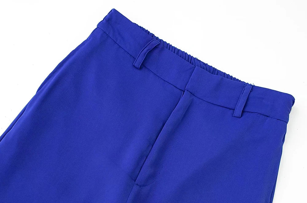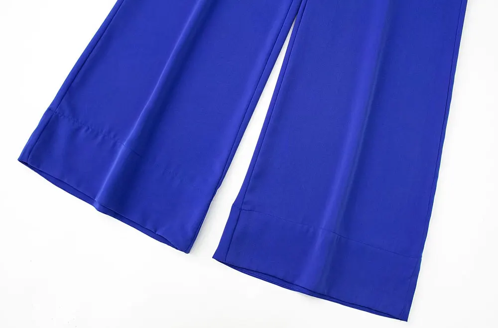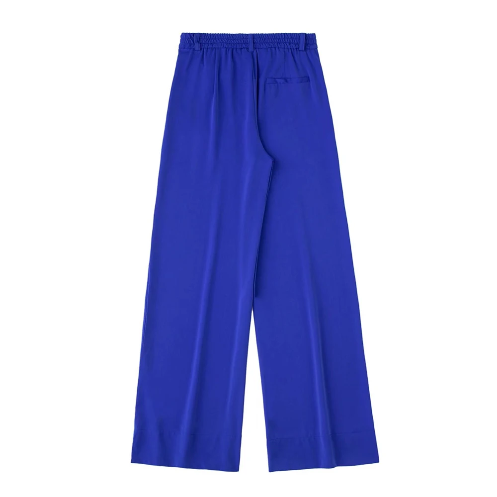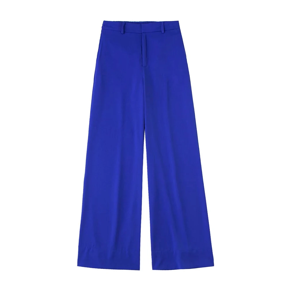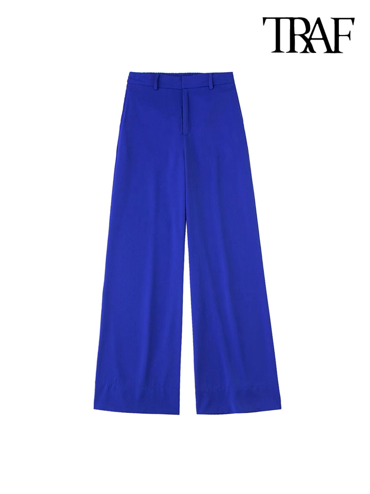 TRAF Women Fashion Side Pockets Flowing Wide Leg Pants Vintage High Waist Zipper Fly Female Trousers Mujer