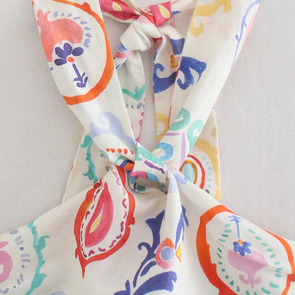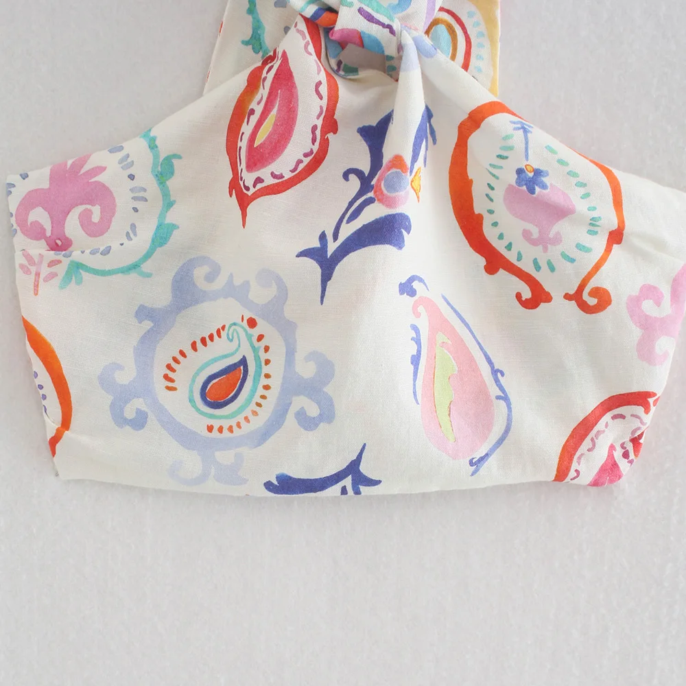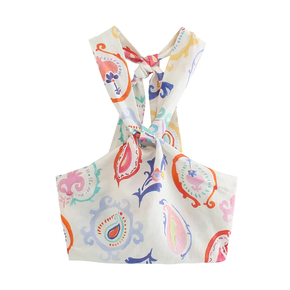 TRAF Women Fashion With Bow Tied Paisley Print Crop Tank Tops Vintage Backless Elastic Wide Straps Female Camis Mujer