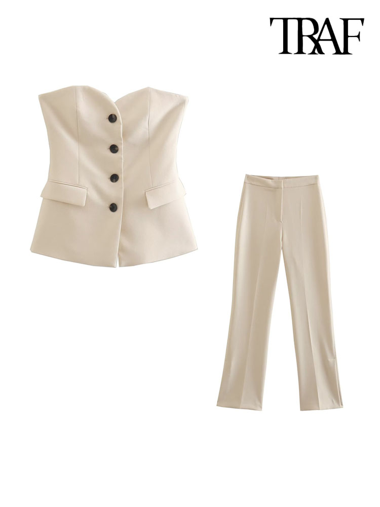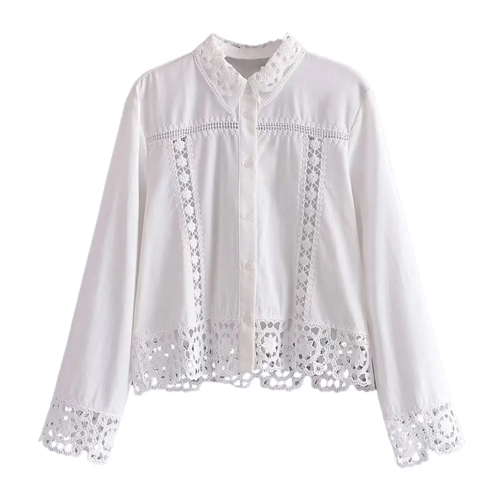 TRAF Women Fashion With Crochet Patchwork Shirts And High Waist Side Zipper Shorts Female Two Piece Sets Mujer