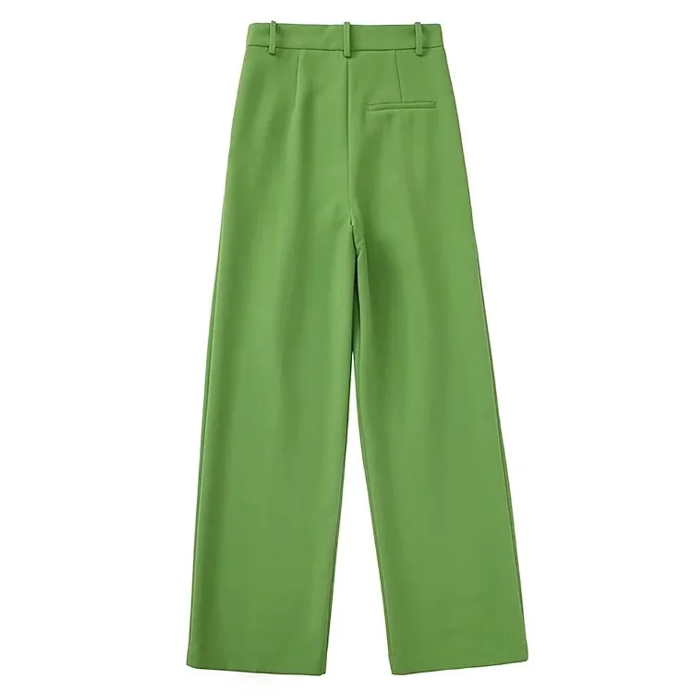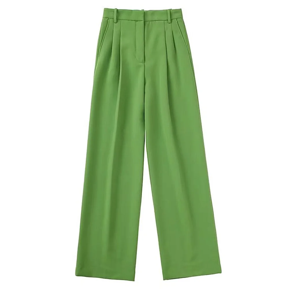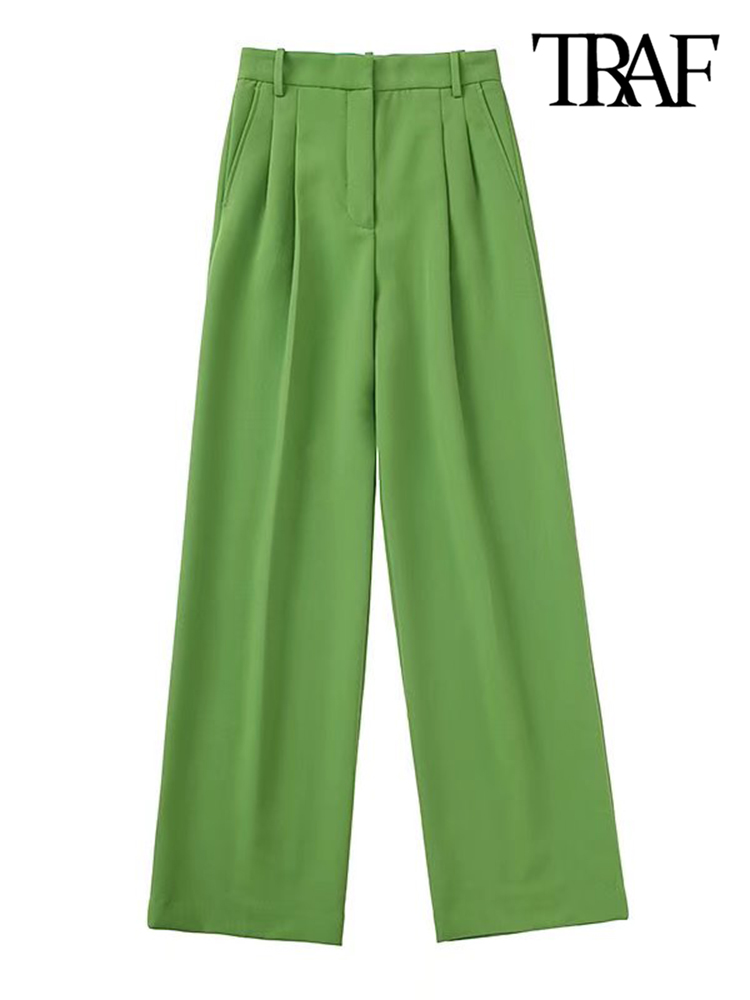 TRAF Women Fashion With Darts Side Pockets Wide Leg Trousers Vintage Mid Waist Zipper Fly Female Pants Mujer