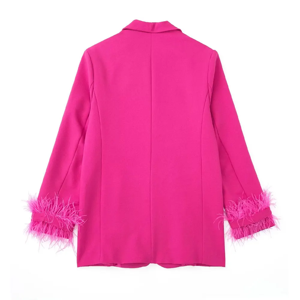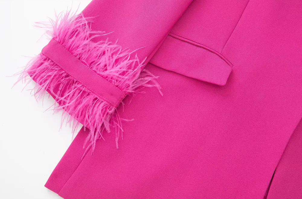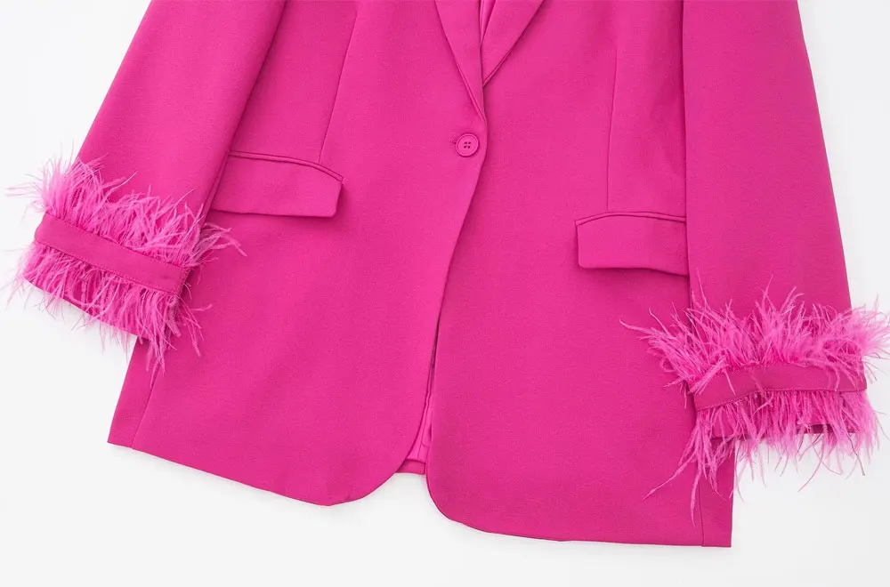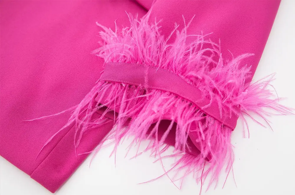 TRAF Women Fashion With Feathers Straight Blazer Coat And High Waist Side Zipper Ankle Trousers Female Two Piece Sets Mujer