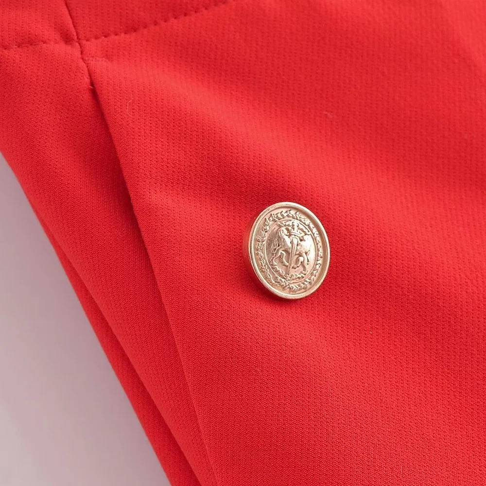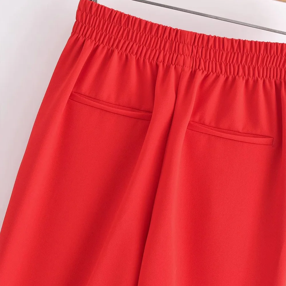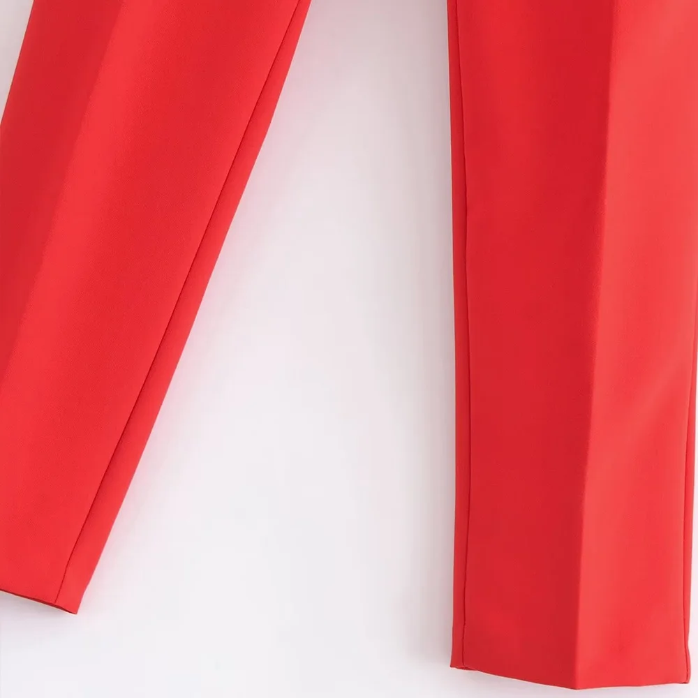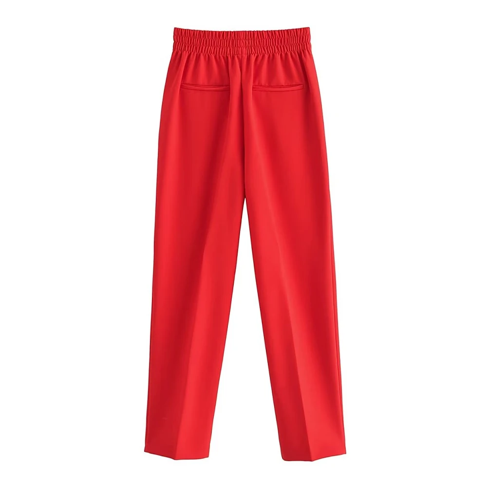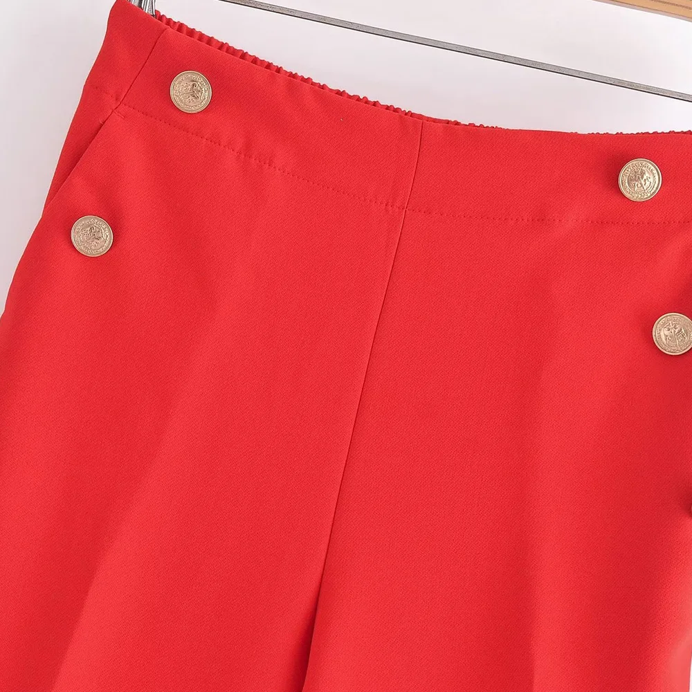TRAF Women Fashion With Metallic Button Straight Pants Vintage High Waist Back Elastic Waistband Female Ankle Trousers Mujer