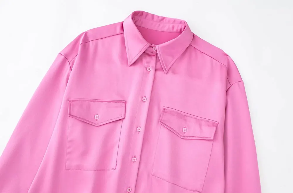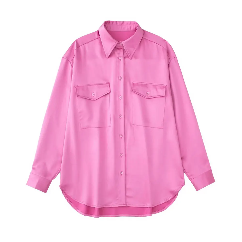 TRAF Women Fashion With Pockets Loose Fitting Shirts And High Waist Zipper Fly Shorts Female Two Piece Sets Mujer