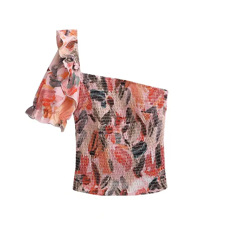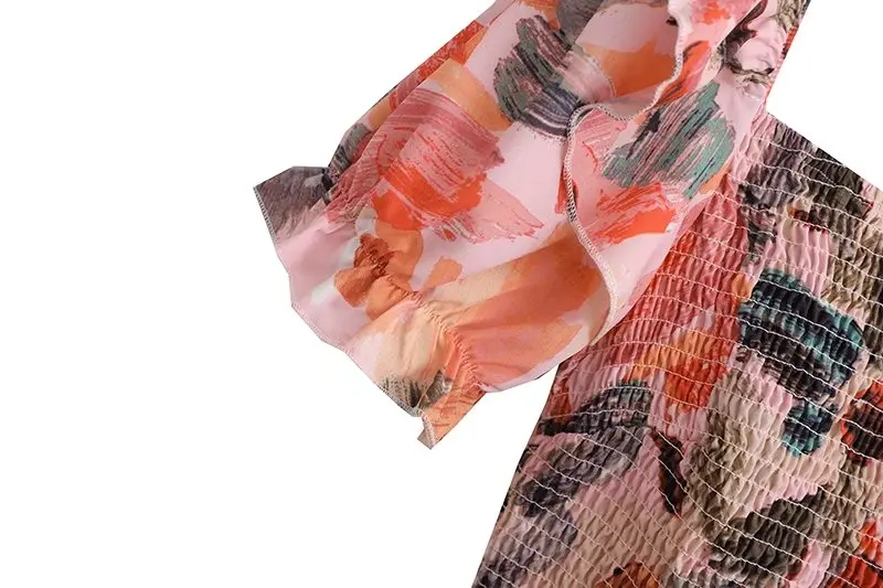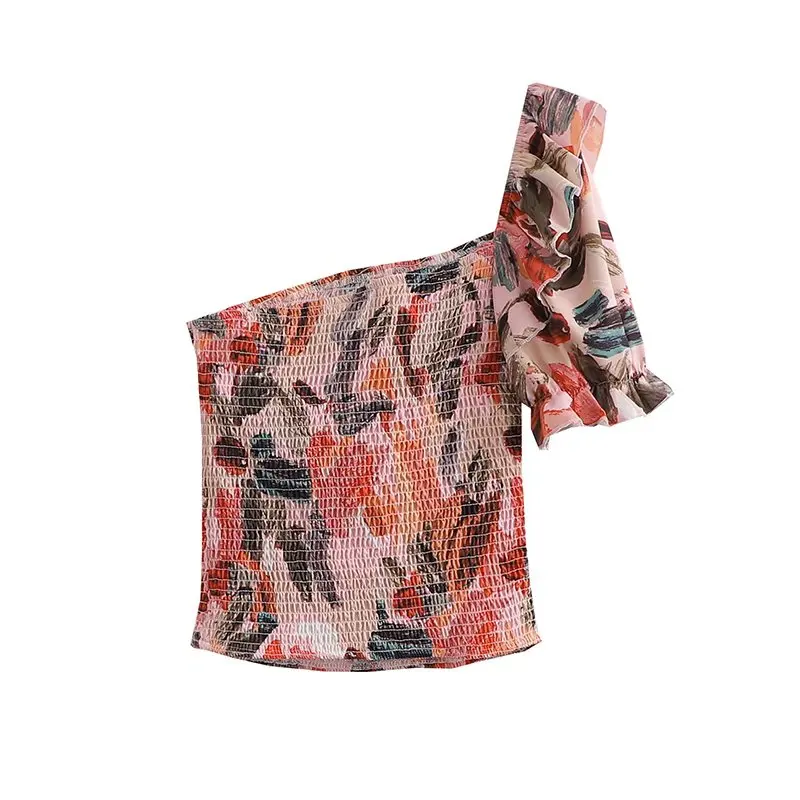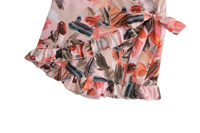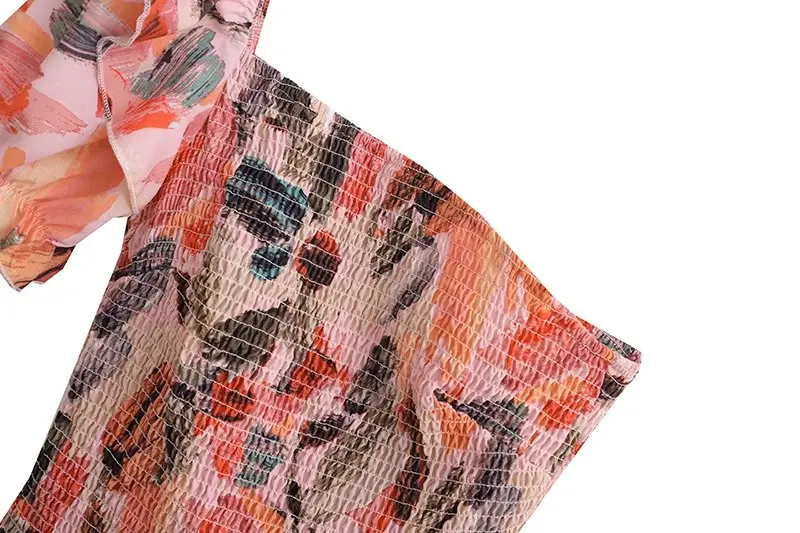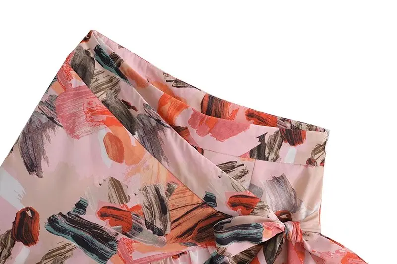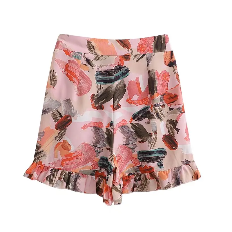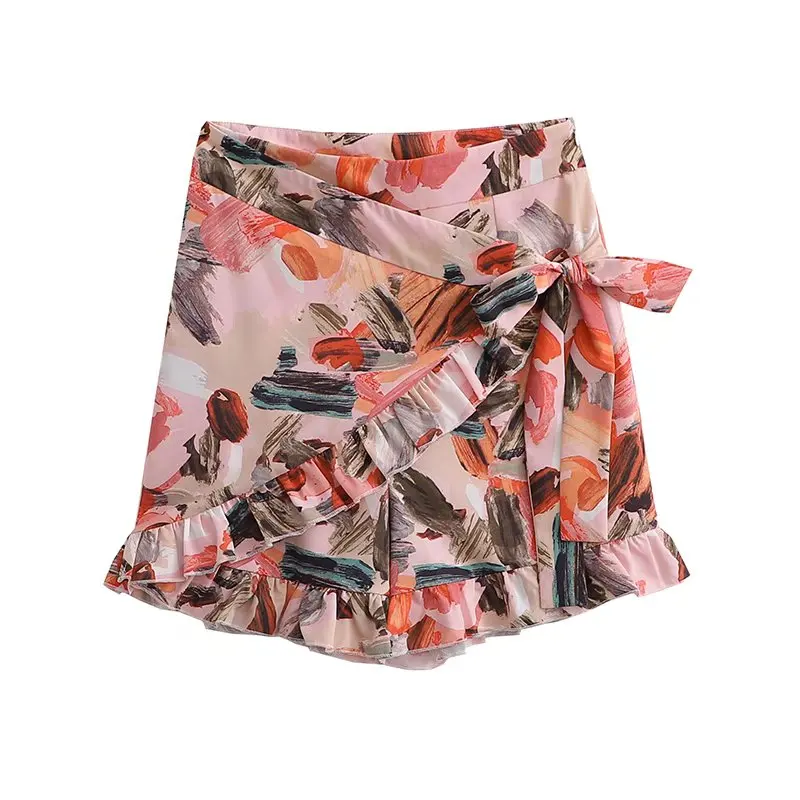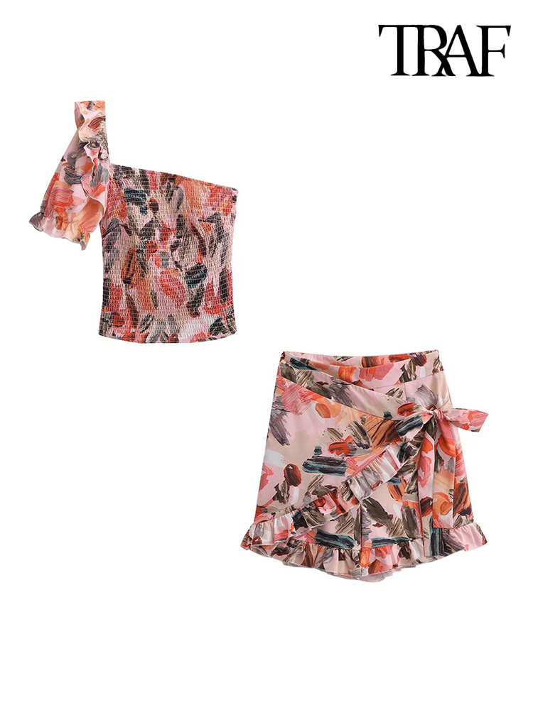TRAF Women Fashion With Ruffles Smocked Crop Blouses And Tied Bow High Waist Shorts Skirts Female Two Pieces Sets Mujer