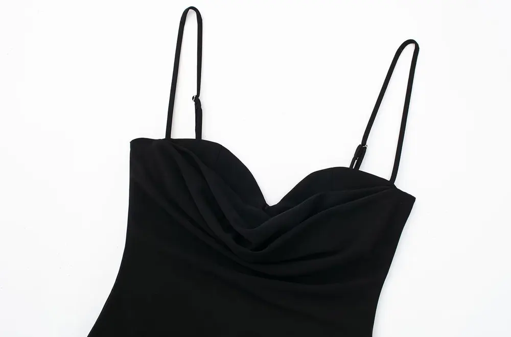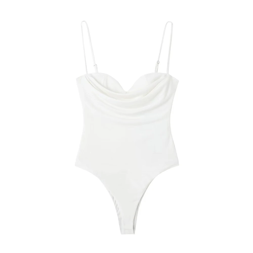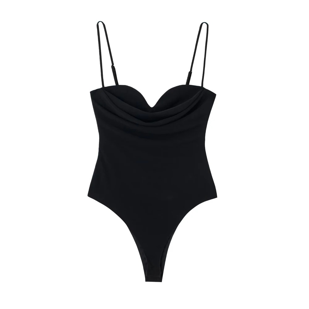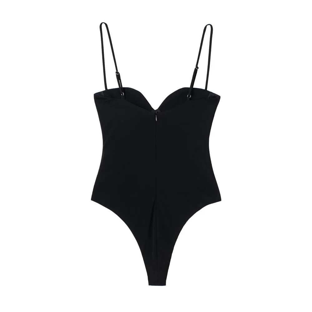 TRAF Women Fashion With Sweetheart Neck Draped Bodysuits Vintage Backless Zipper Thin Straps Female Playsuits Mujer