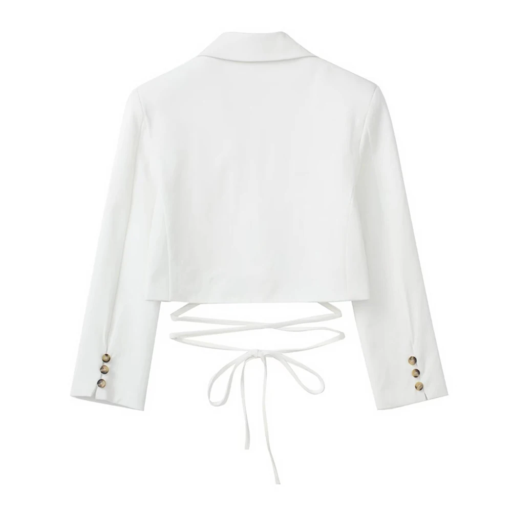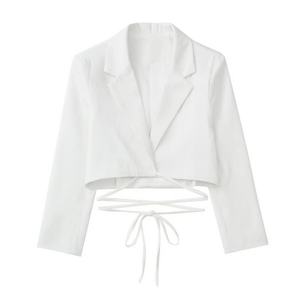 TRAF Women Fashion With Tied Cropped Blazer Coat And High Waist Zipper Fly Shorts Skirts Female Two Piece Sets Mujer