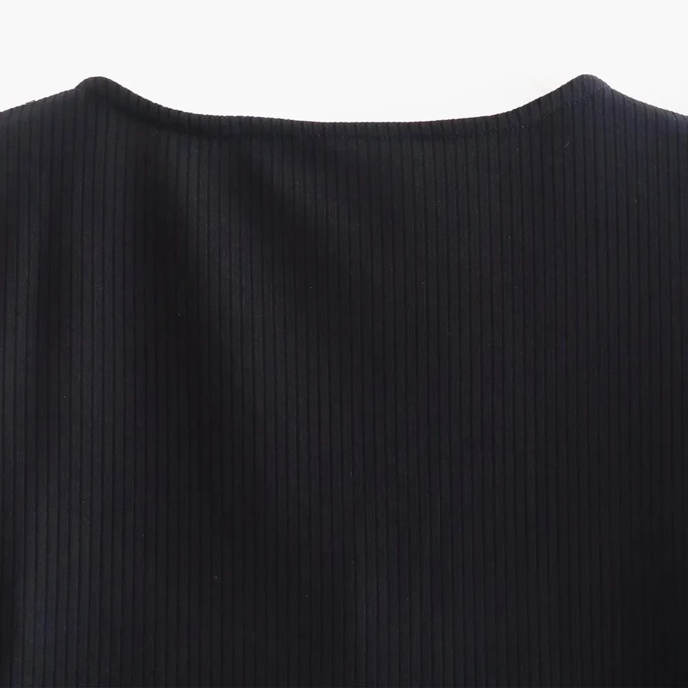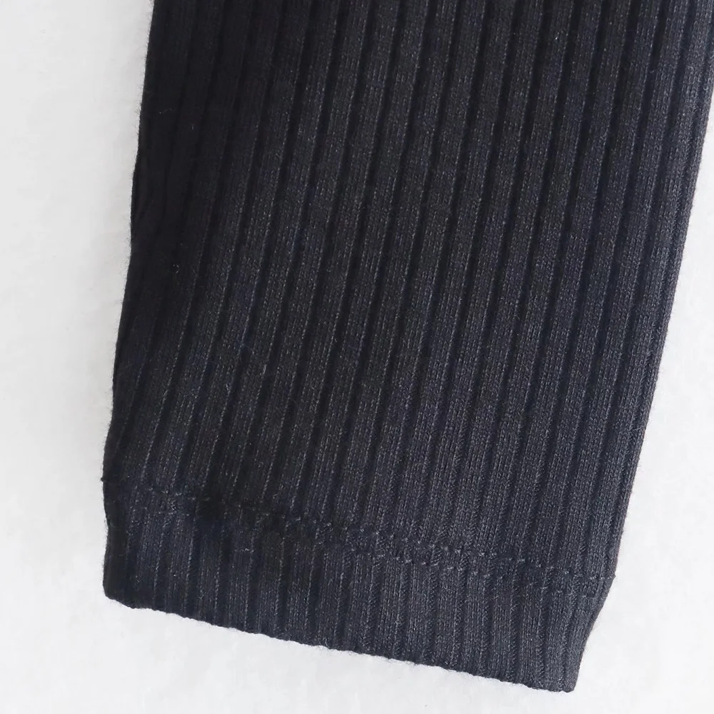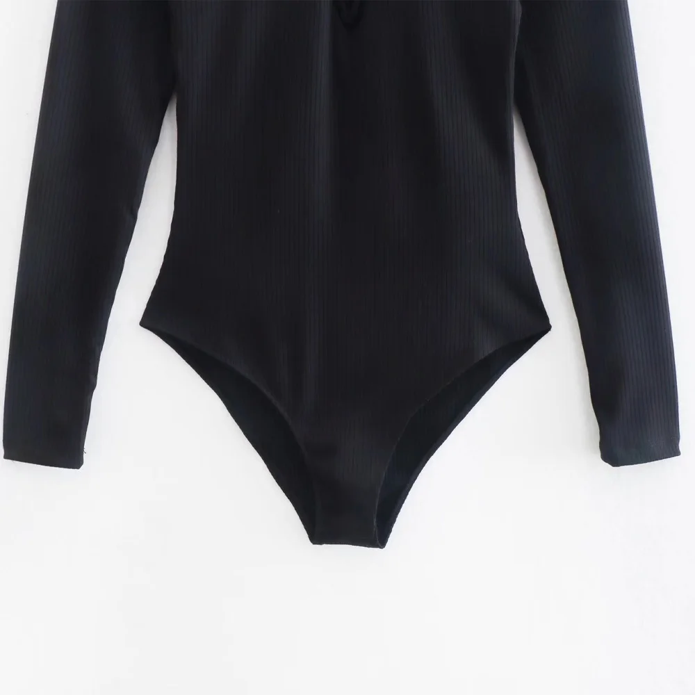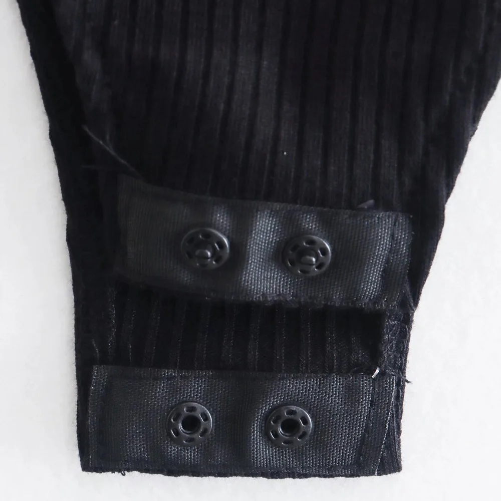 TRAF Women Fashion With V Neck Fitted Knit Bodysuits Vintage Long Sleeve Snap-button Female Playsuits Mujer
