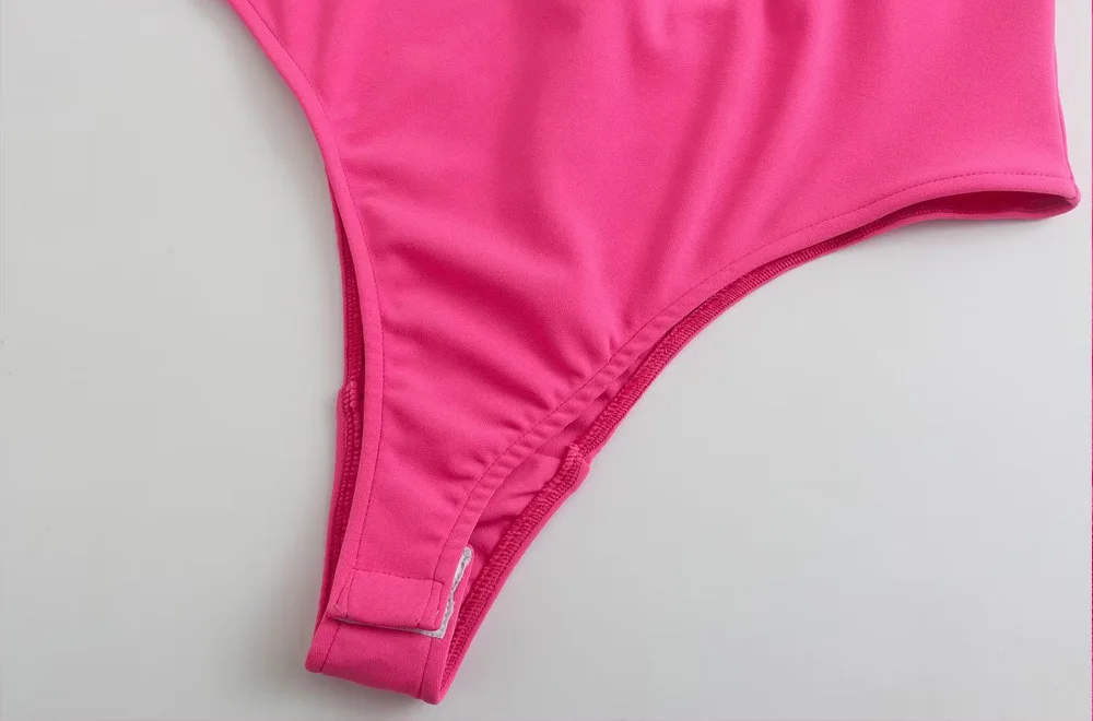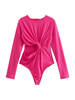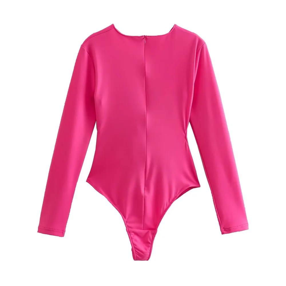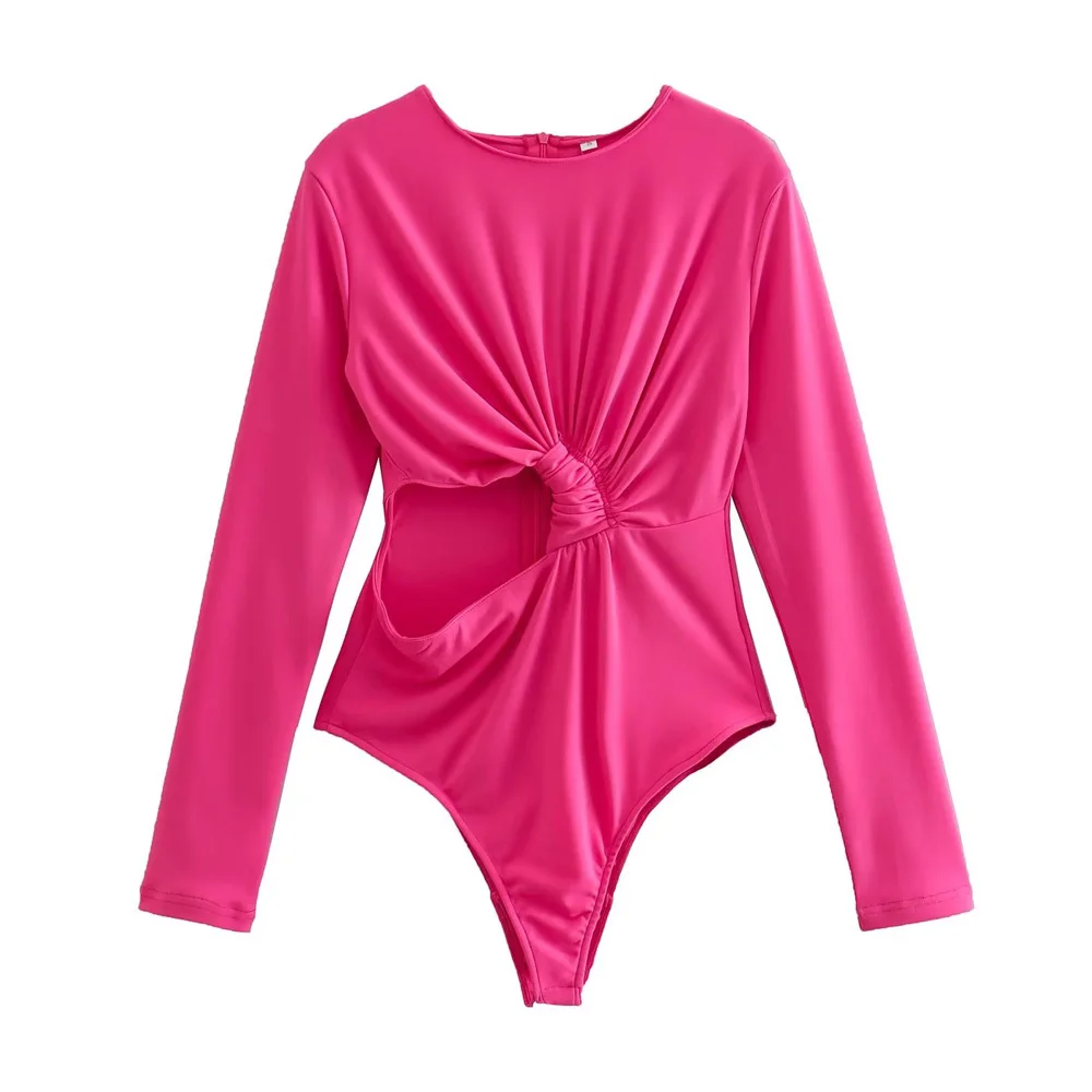 TRAF Women Sexy Fashion Hollow Out Draped Bodysuits Vintage Long Sleeve Snap-button Female Playsuits Mujer