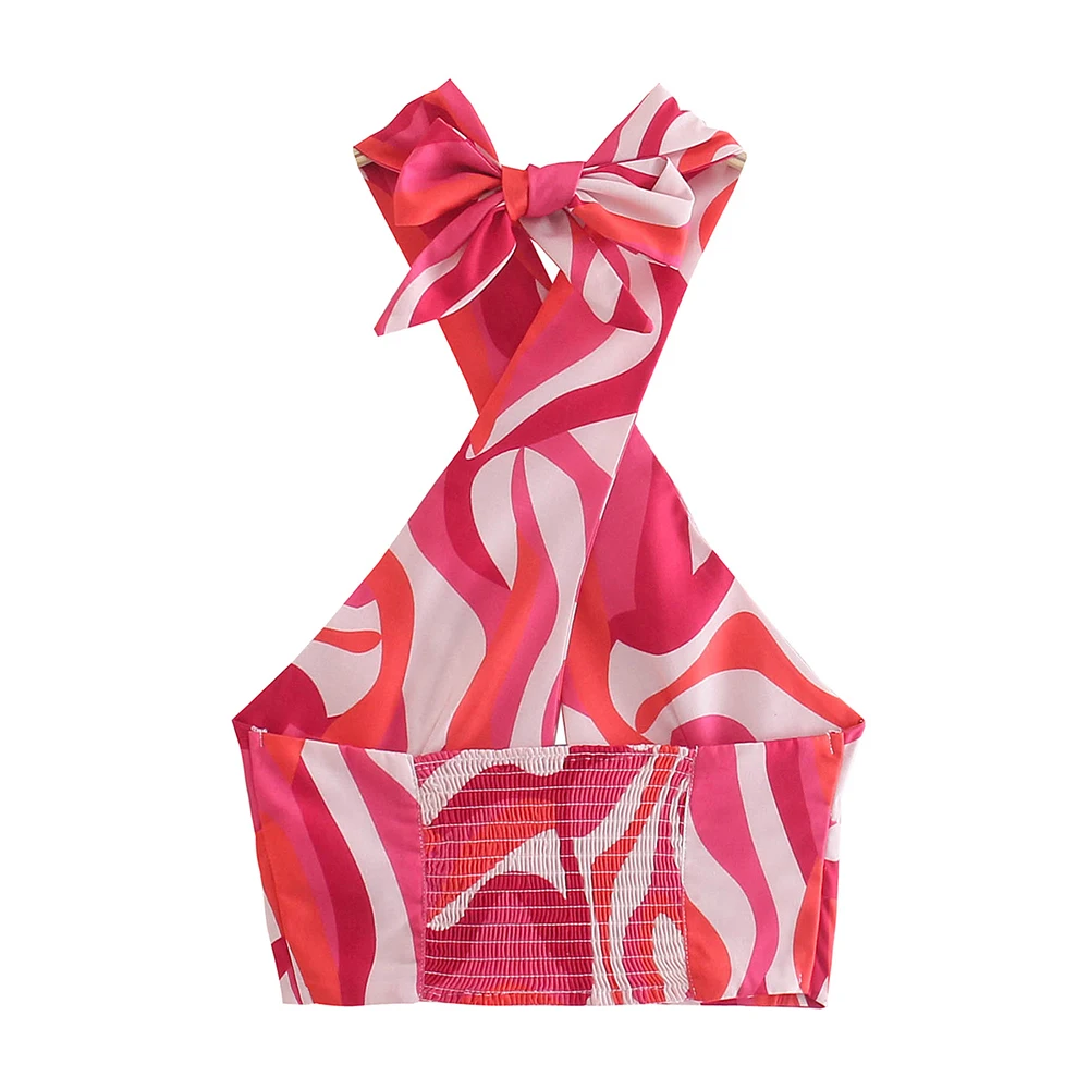 TRAF Women Sexy Fashion Printed Y2K Cropped Cross Tank Tops Vintage Backless Elastic Bow Ties Strap Female Camis Mujer