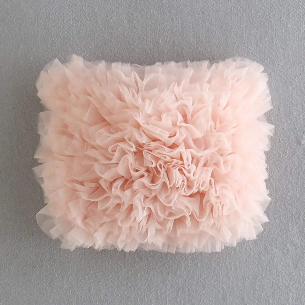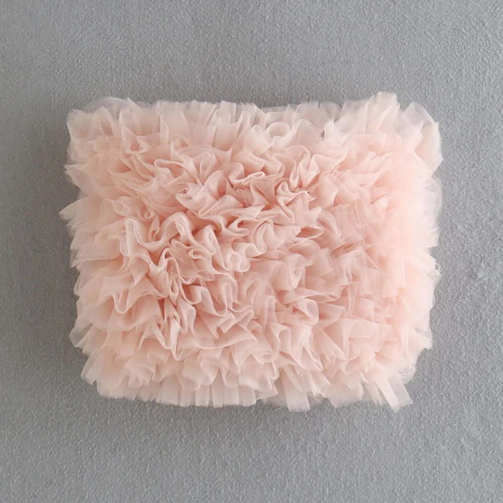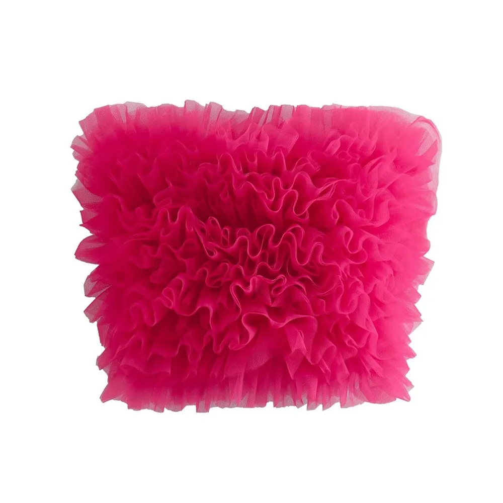 TRAF Women Sexy Fashion With Mesh Pleated Cropped Bustier Vintage Exposed Shoulders Fitted Female Camis Mujer