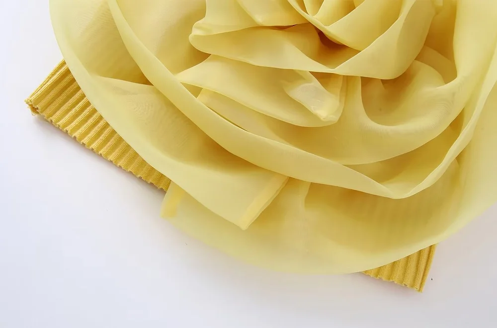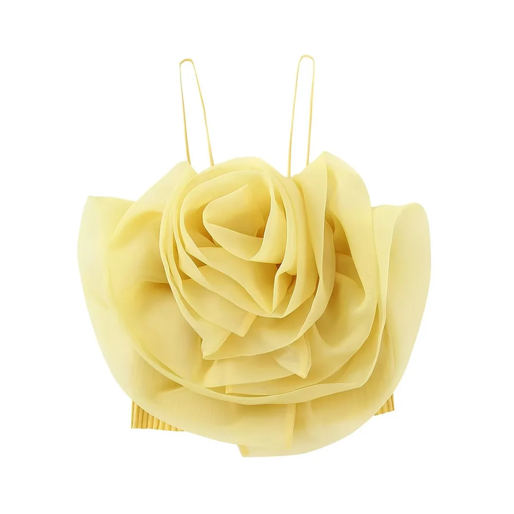 TRAF Women Sexy Fashion With Organza Flower Cropped Tank Tops Vintage Straight Neck Thin Straps Female Camis Mujer