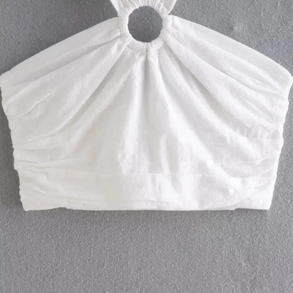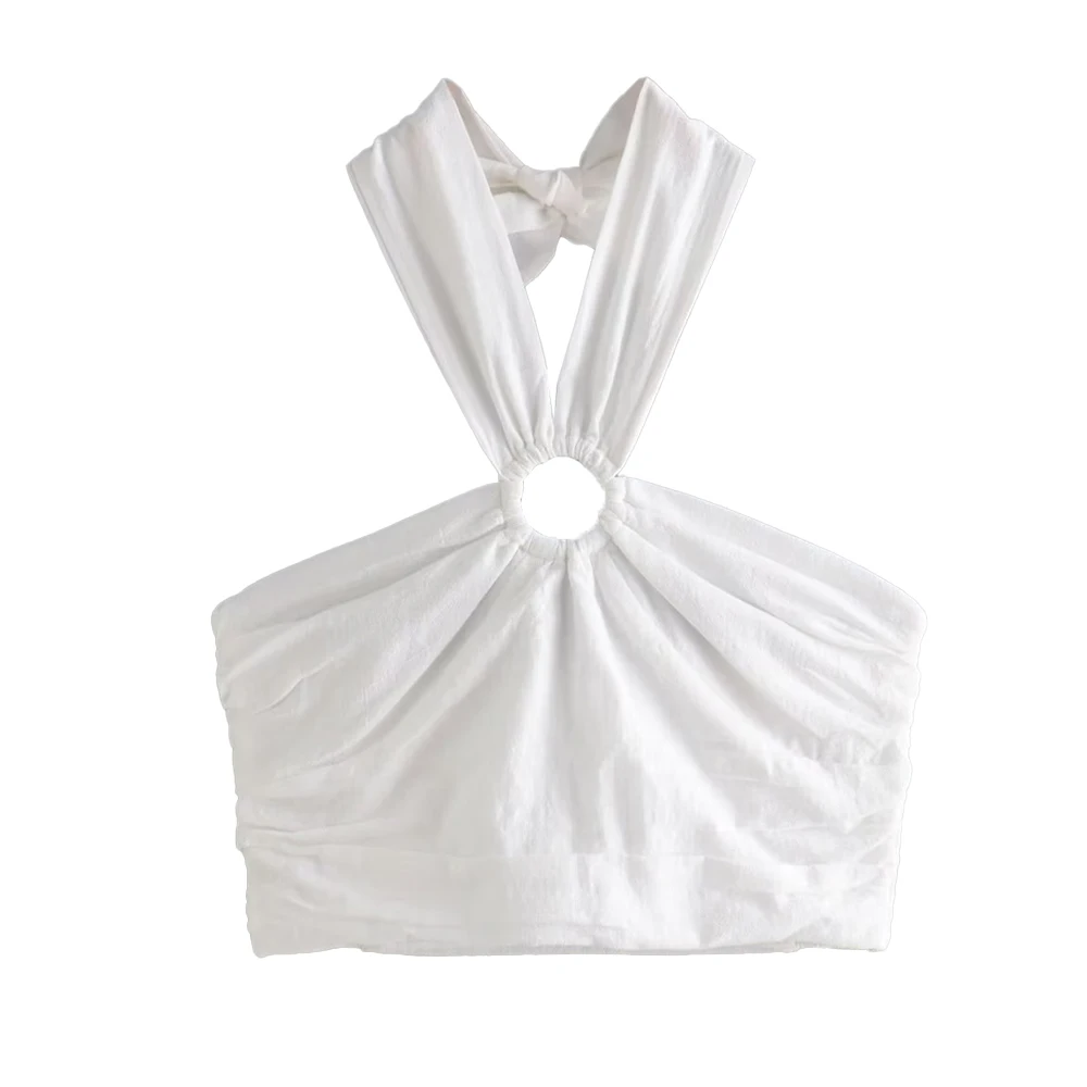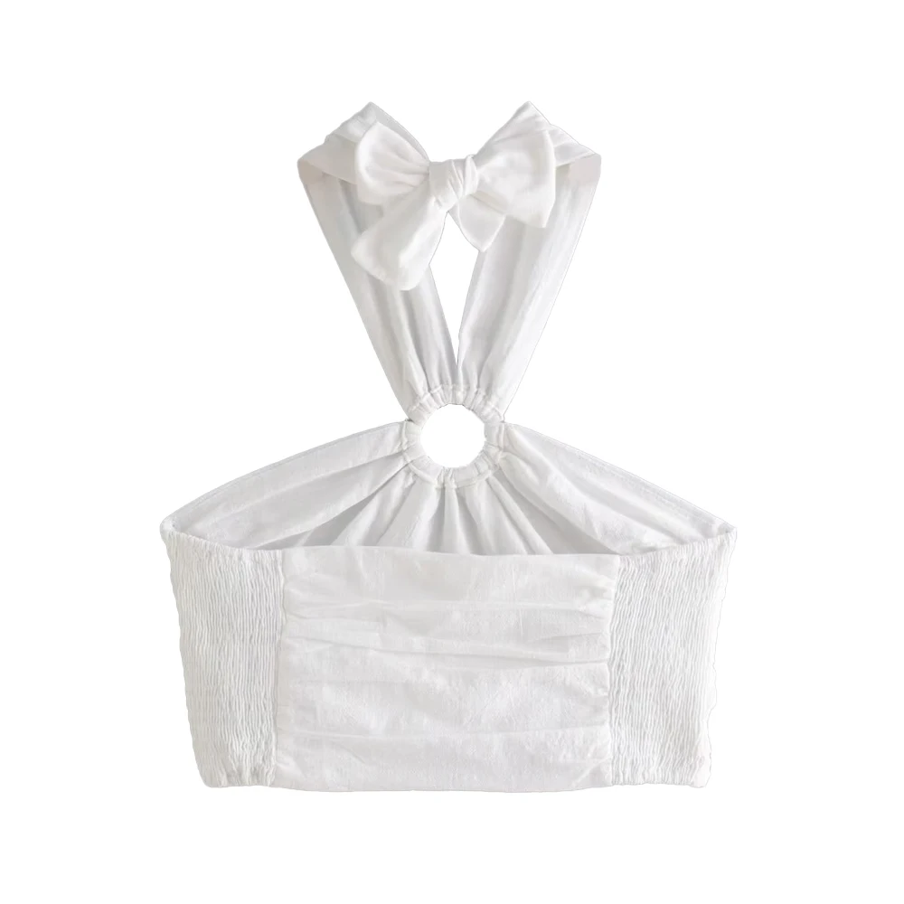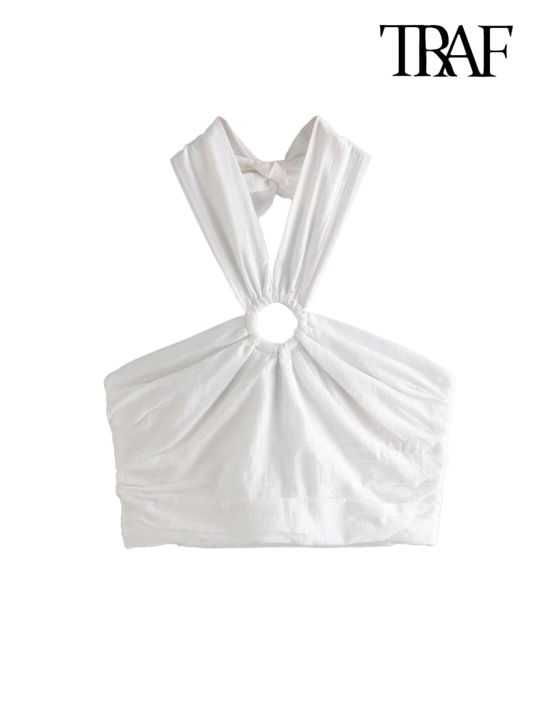 TRAF Women Sexy Fashion With Ring Halterneck Tank Tops Vintage Backless Elastic Bow Tied Straps Female Camis Mujer