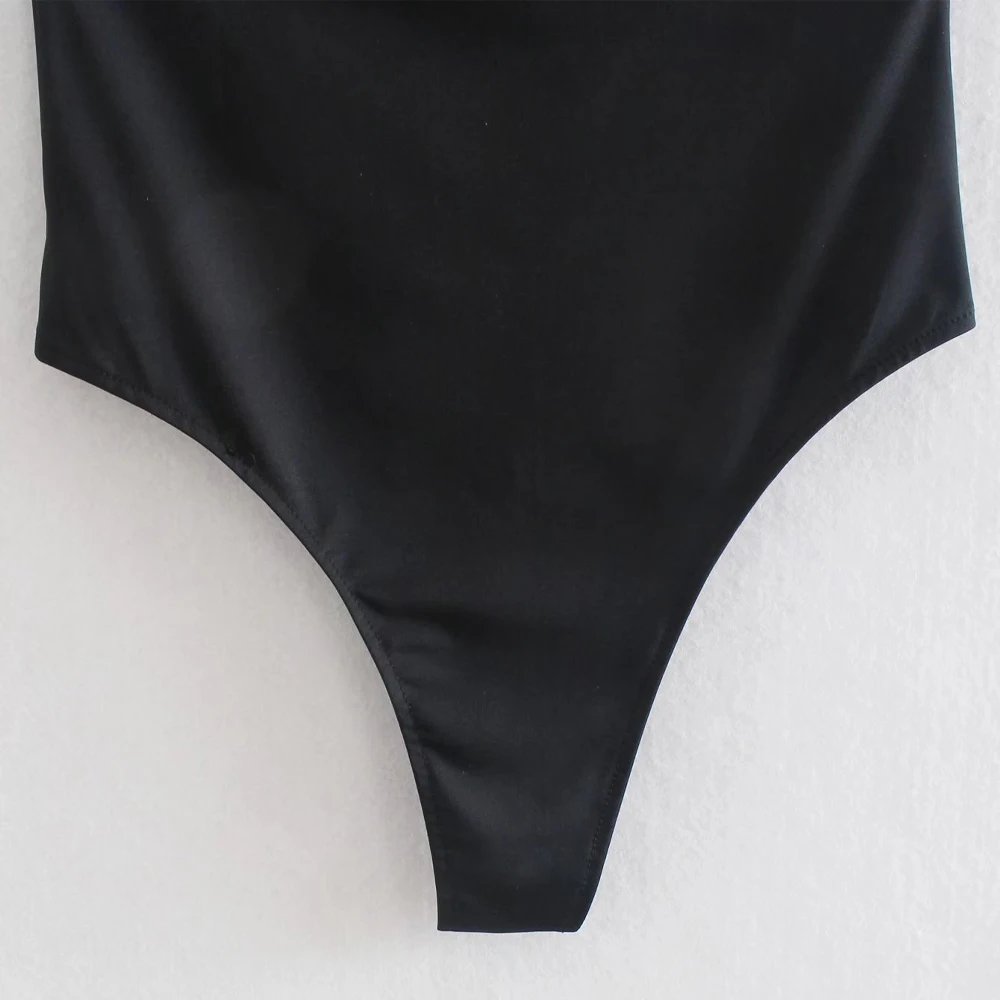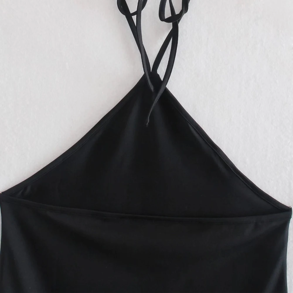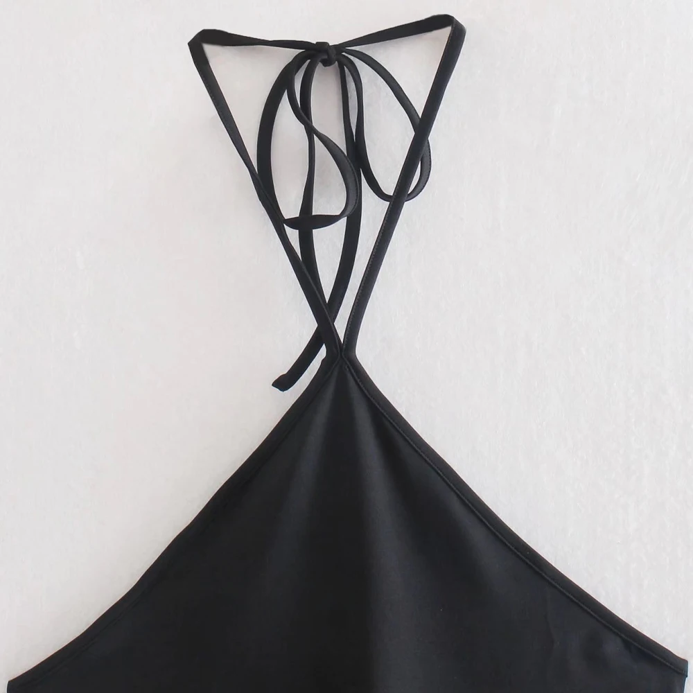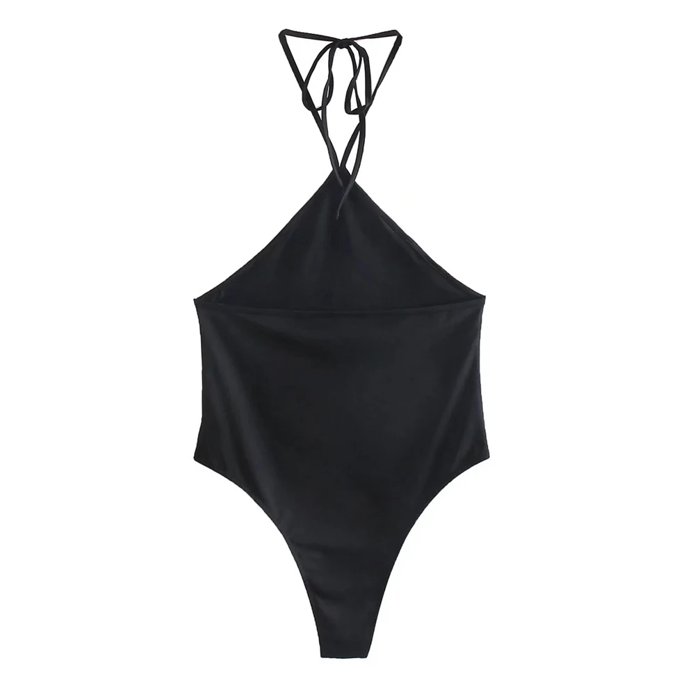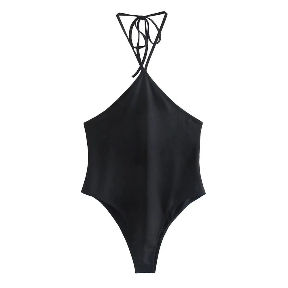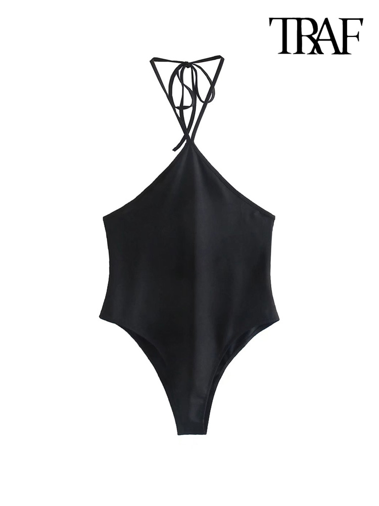 TRAF Women Sexy Fashion With Tie Halter Neck Fitted Bodysuits Vintage Backless Thin Straps Female Playsuits Mujer