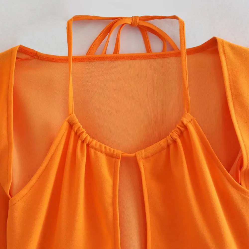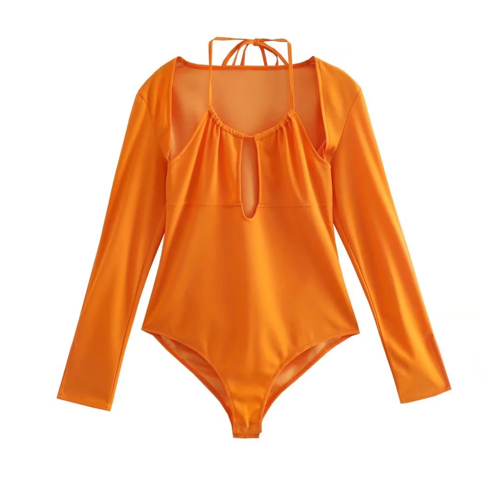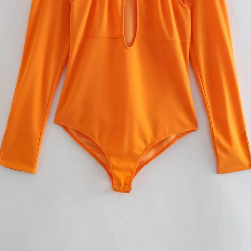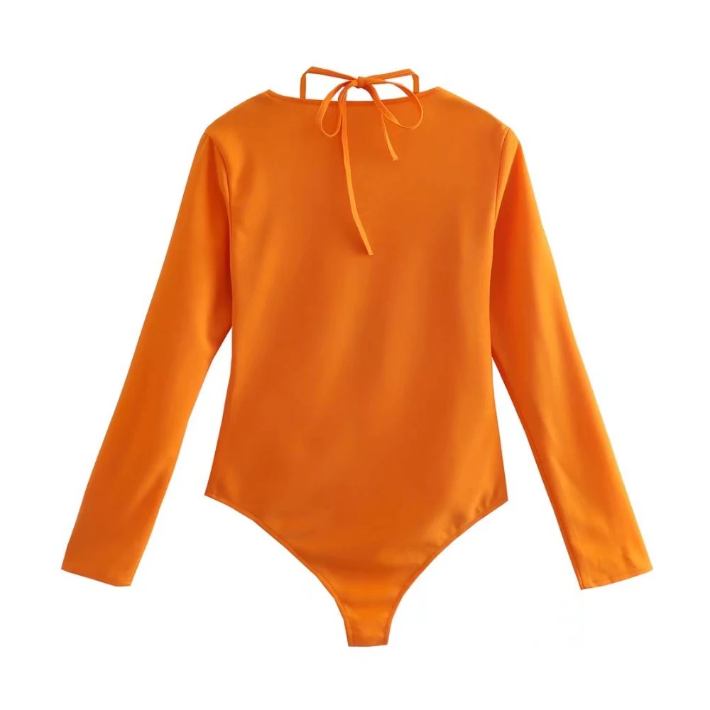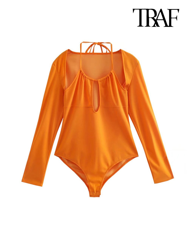 TRAF Women Sexy Fashion With Tied Straps Cut-out Bodysuits Vintage Long Sleeve Snap-button Female Playsuits Mujer