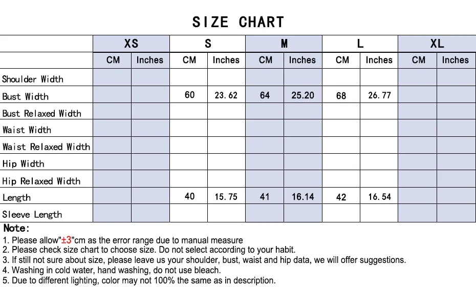 SizeChest WidthLength