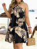 Tropical Print Halter Backless Casual Dress Women Strapless Summer Dress