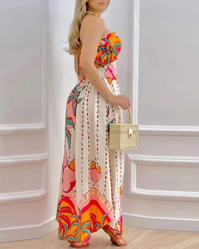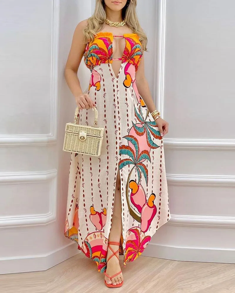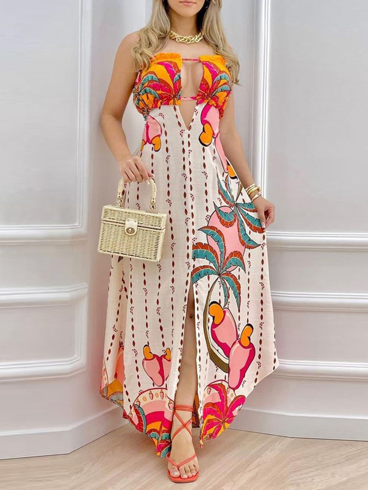 Tropical Print Tied Detail Bandeau Maxi Dress