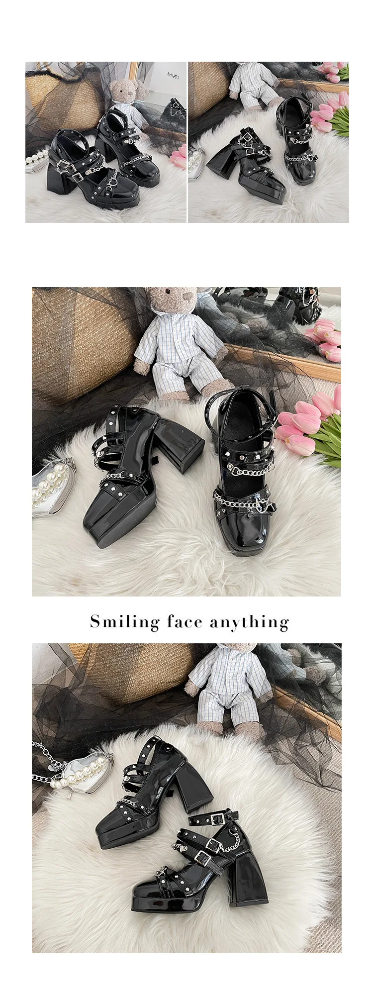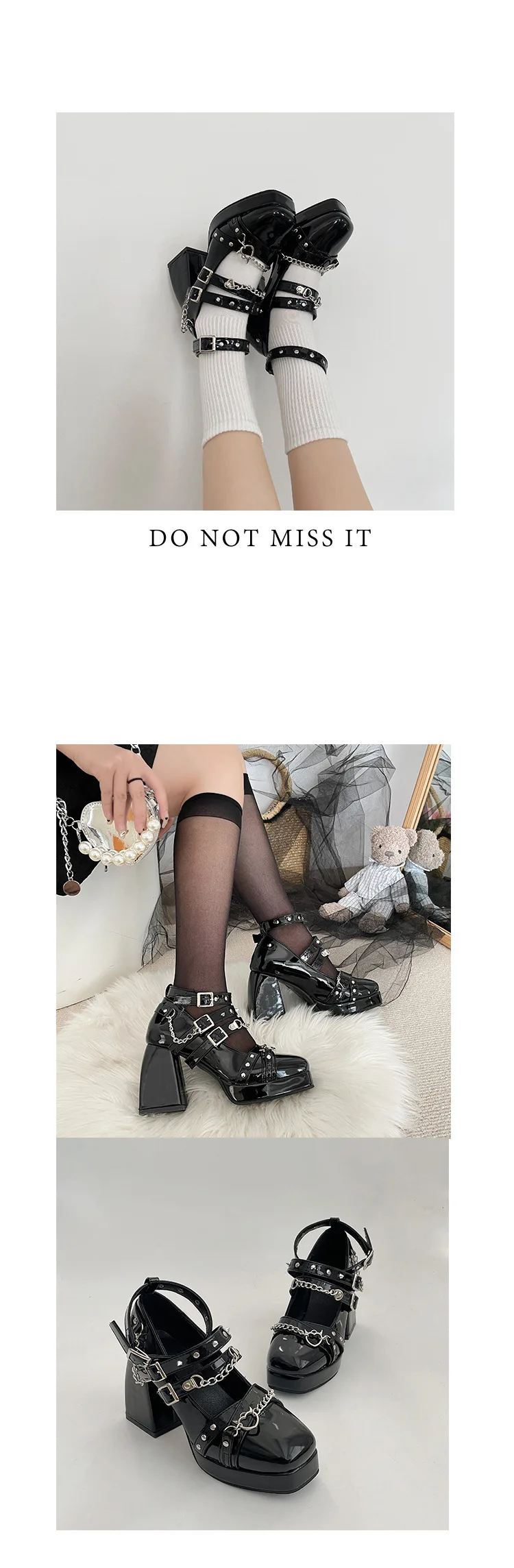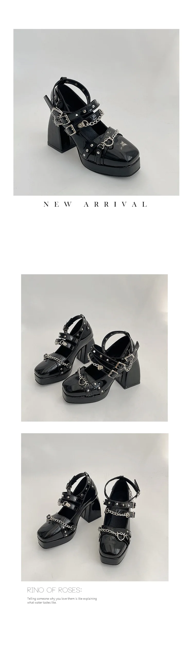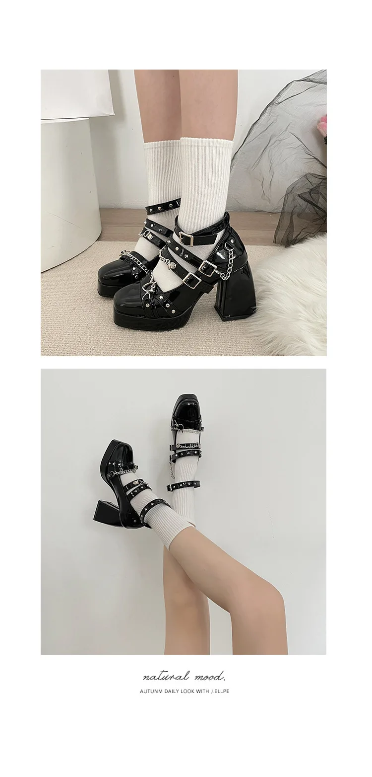 TSTCTB Platform Heeled Mary Janes Pumps for Women Metal Chain Buckle Gothic Black Punk Cosplay Casual JK Street High Heels Shoes