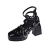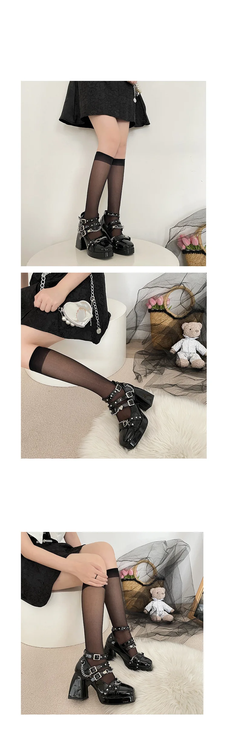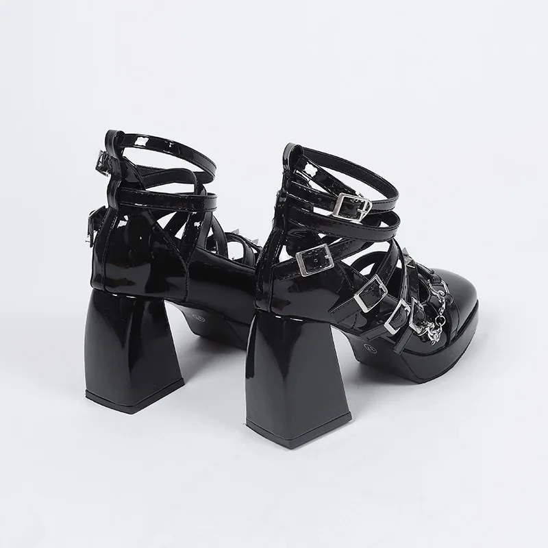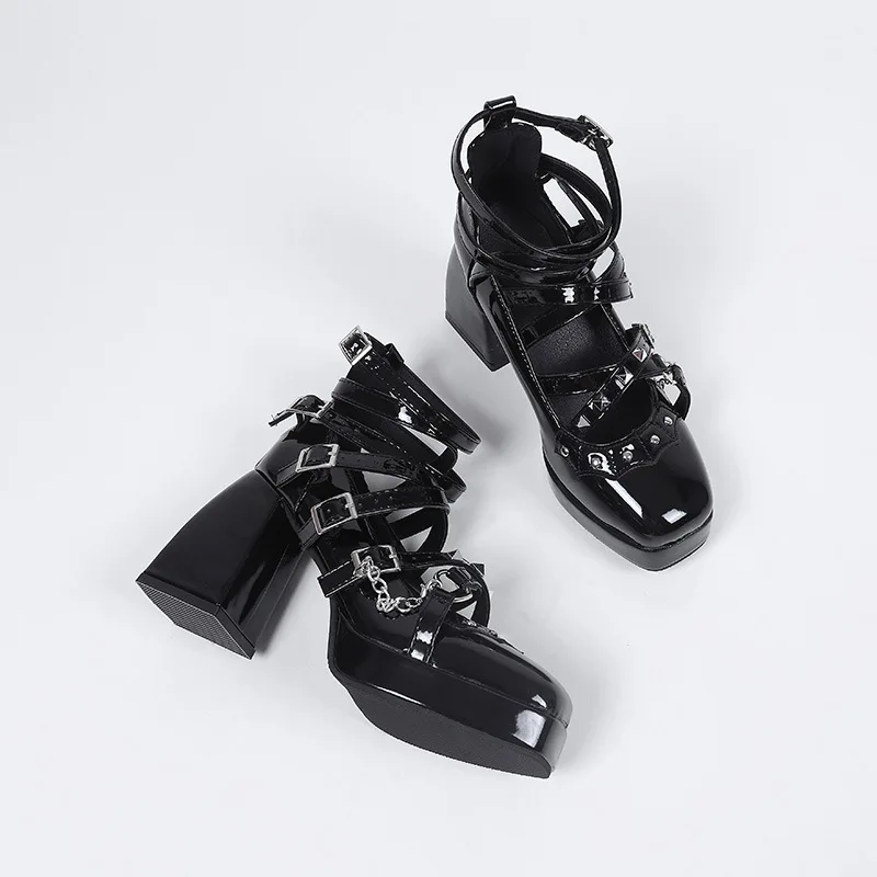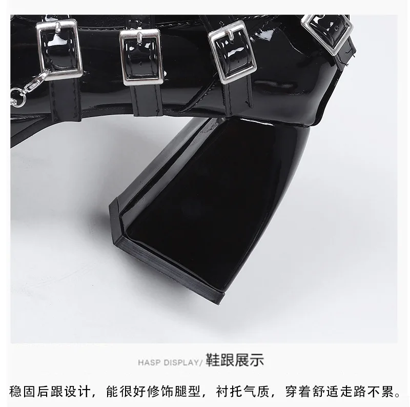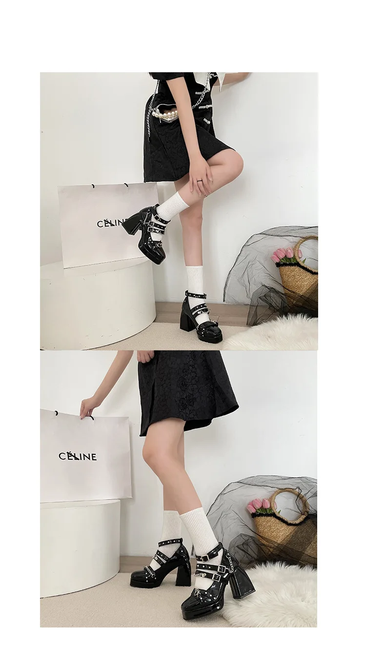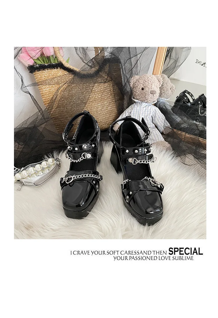TSTCTB Platform Heeled Mary Janes Pumps for Women Metal Chain Buckle Gothic Black Punk Cosplay Casual JK Street High Heels Shoes