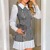 Turn-down Collar Slim Pleated Dress Women Autumn Elegant Buttons Stitching Fake Two-piece Dress Vintage Print Party Mini Dresses