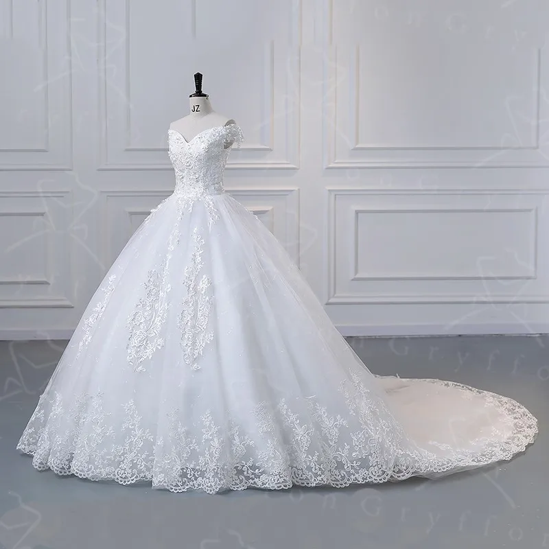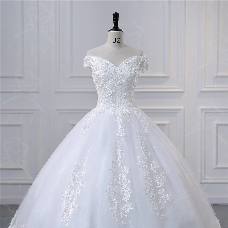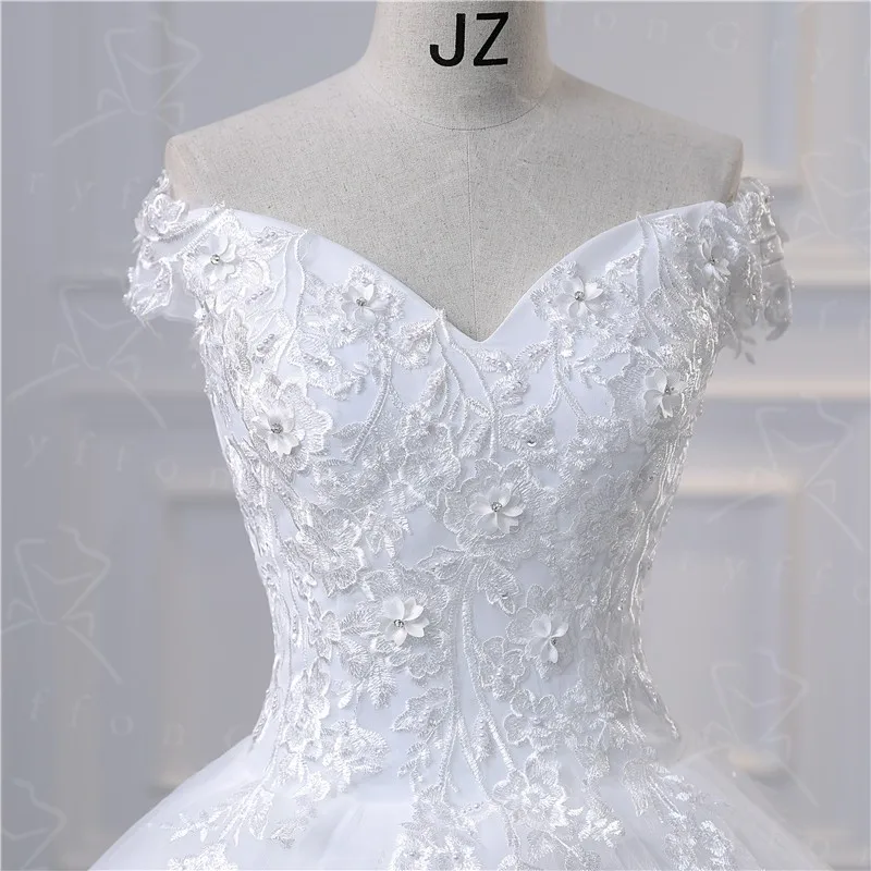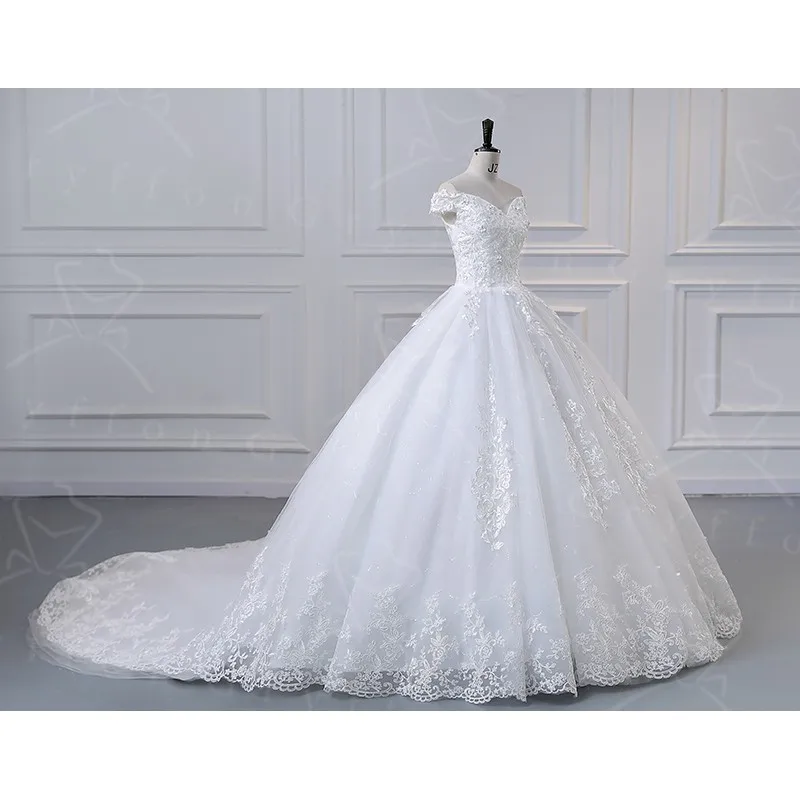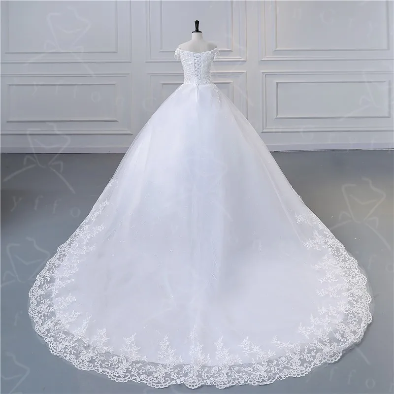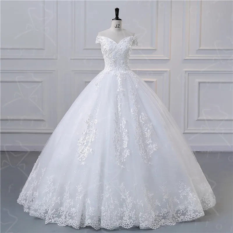 Vestido De Noiva Simple Light Wedding Dress Elegant Lace Boat Neck Luxury Ball Gown Real Photo Robe De Mariee Plus Size
