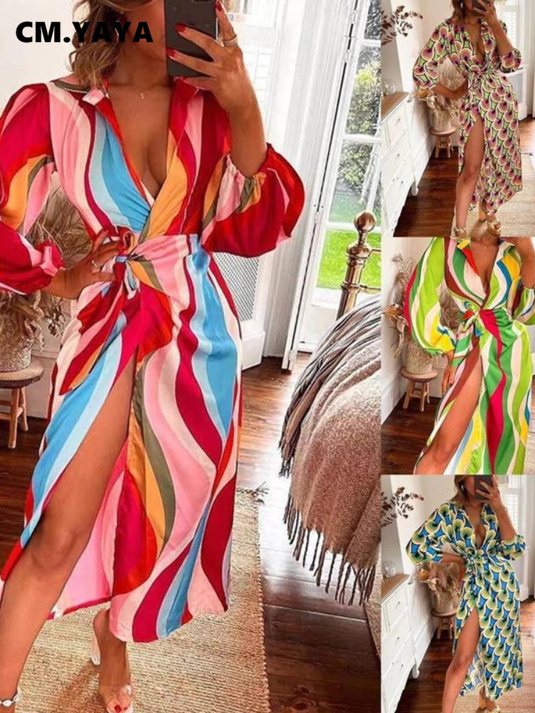 Vestidos Ladies Elegant Floral Print Lantern Long Sleeve Casual Chiffon Dress V-Neck Large Swing Dress New Spring Autumn Dresses