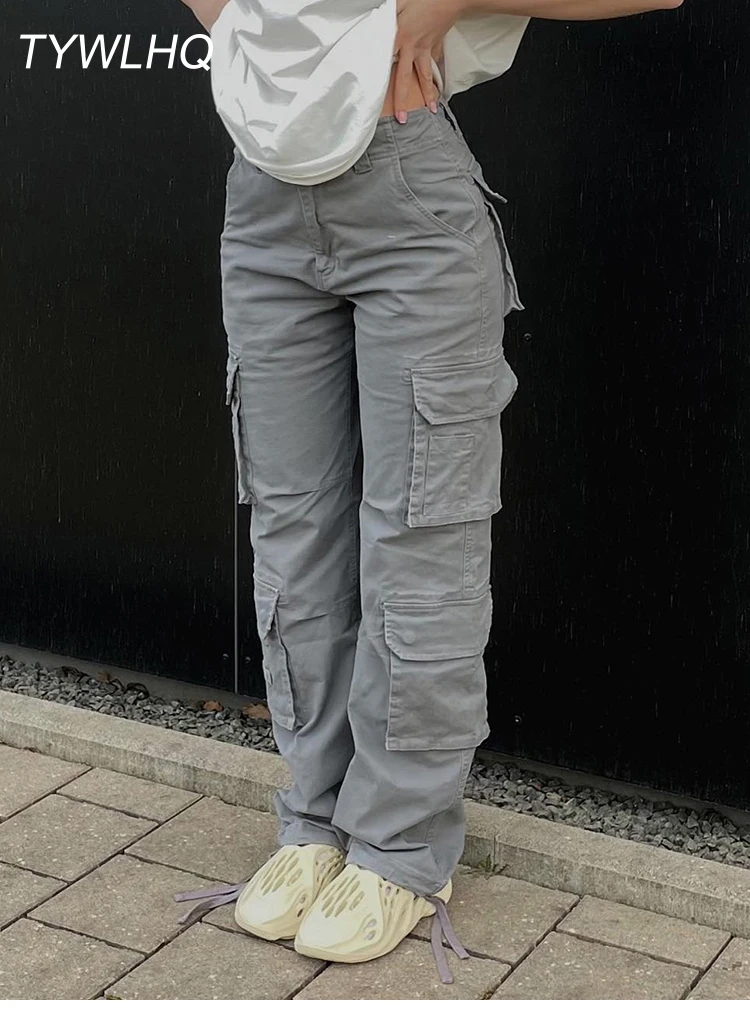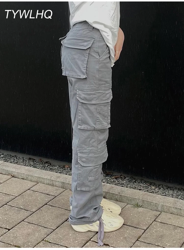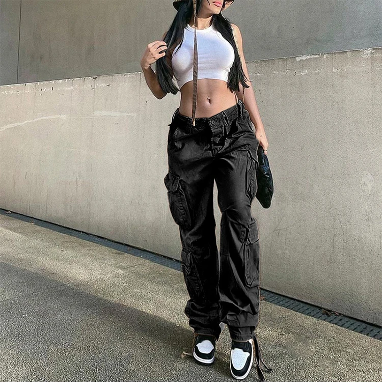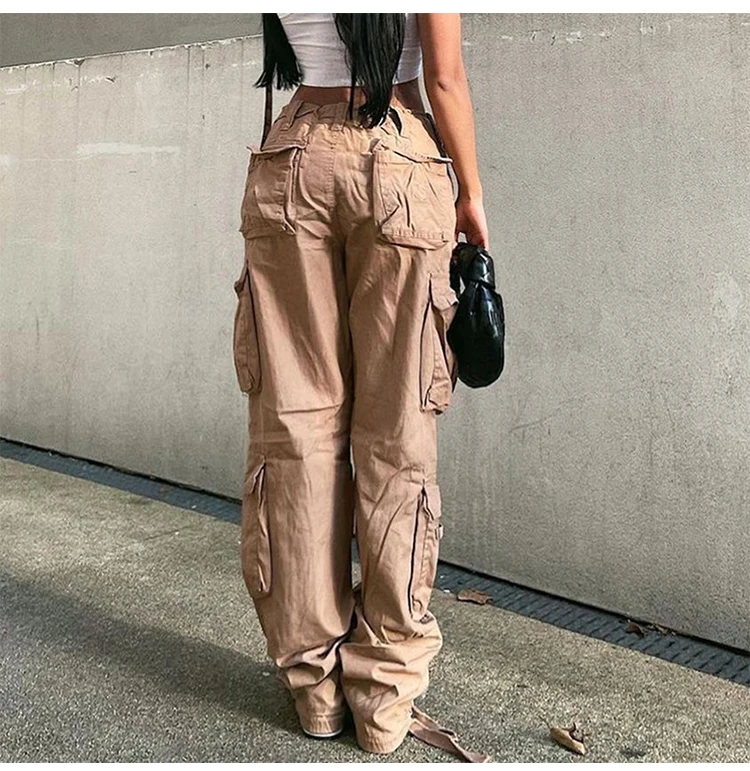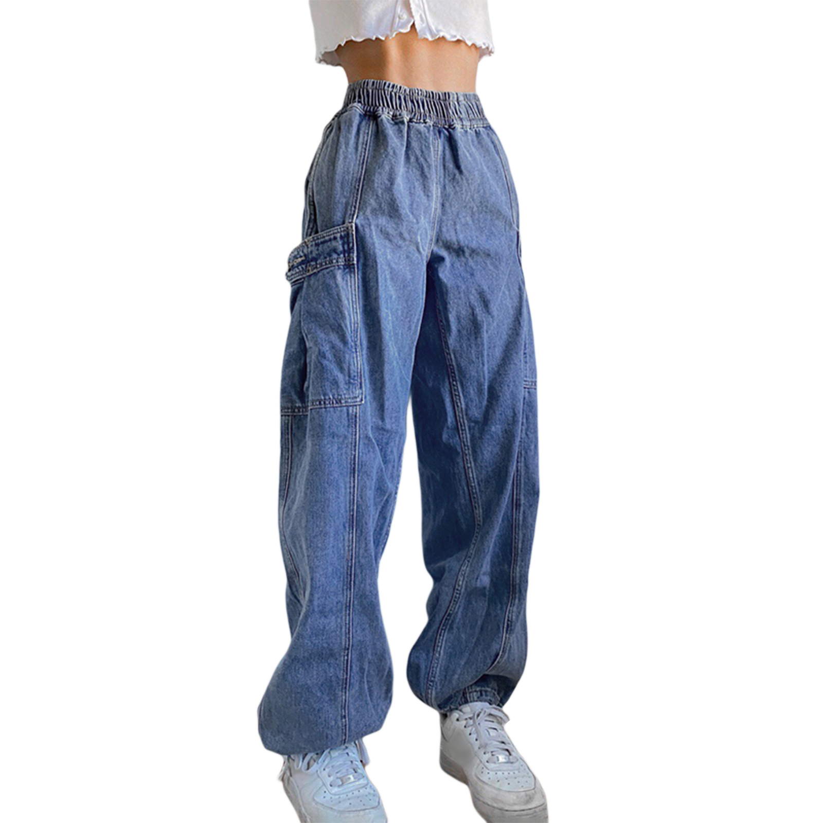 Vintage Cargo Pants Baggy Jeans Women Fashion 90s Streetwear Pockets Wide Leg High Waist Straight Y2k Denim Trousers Overalls