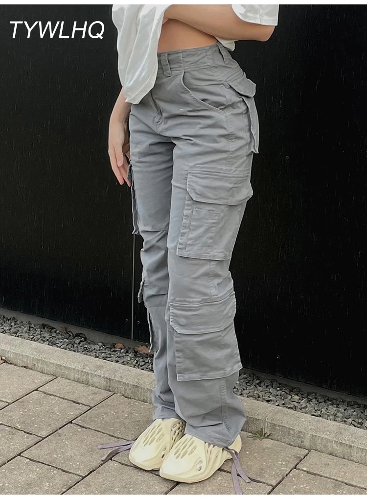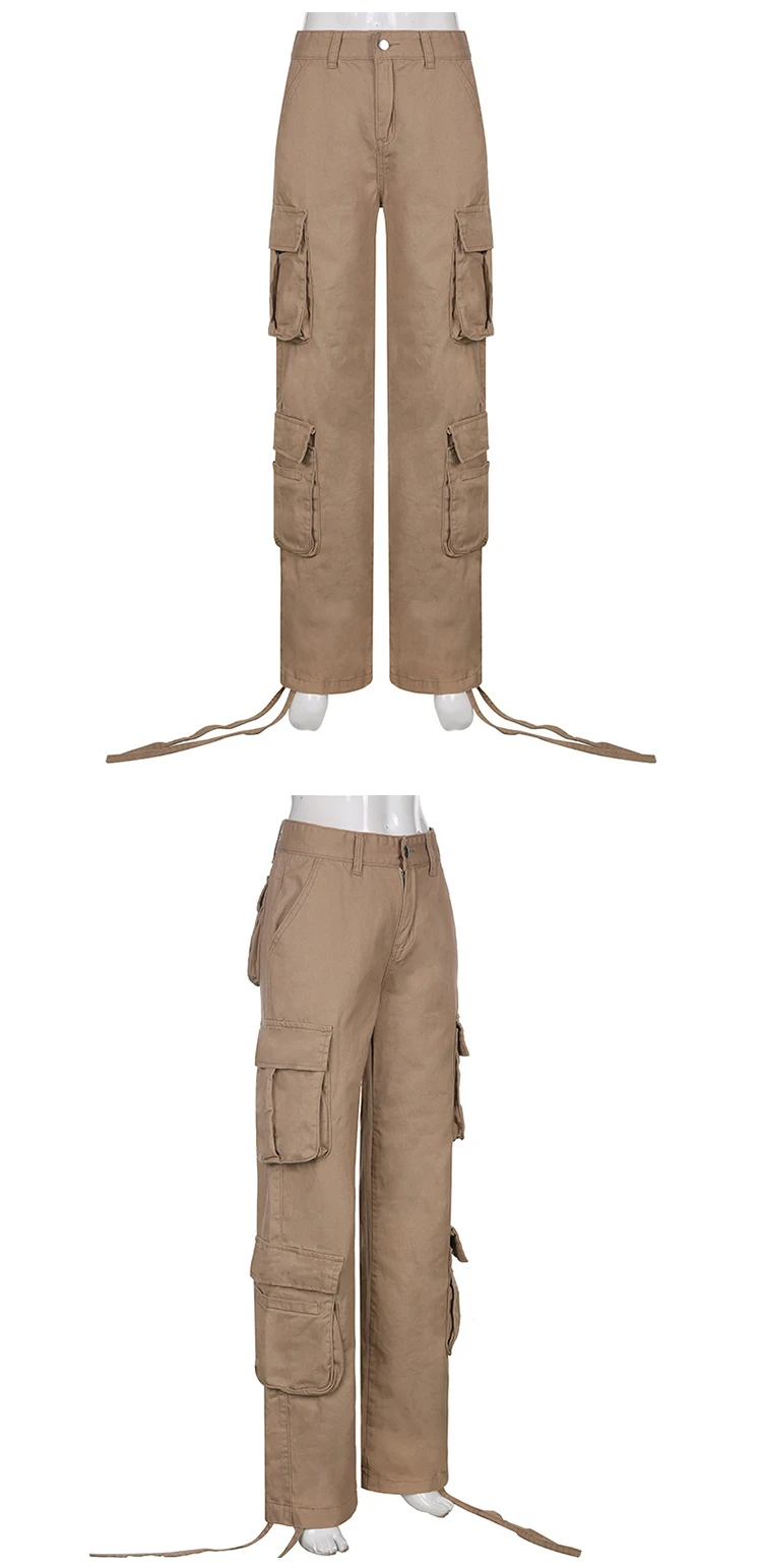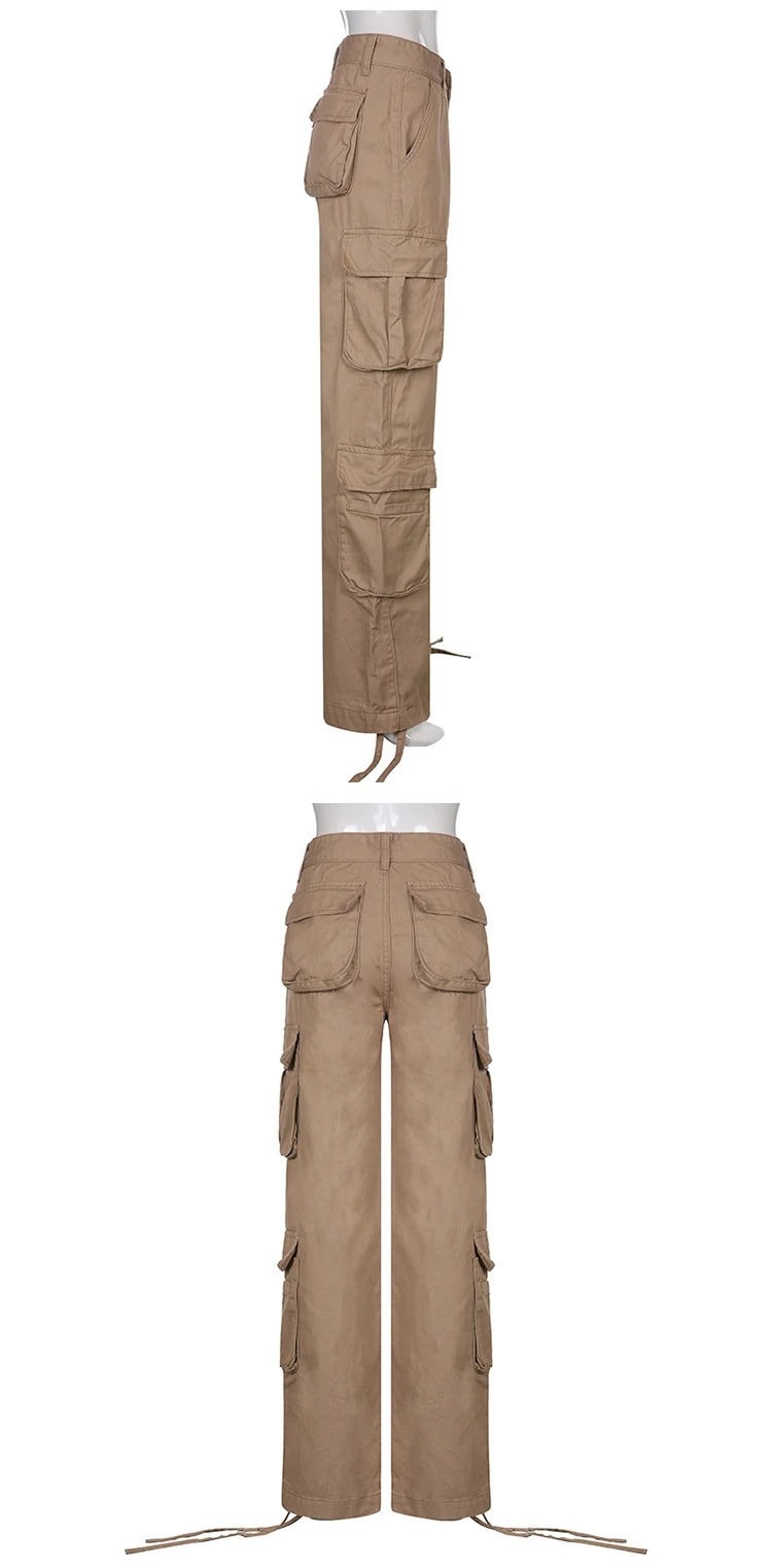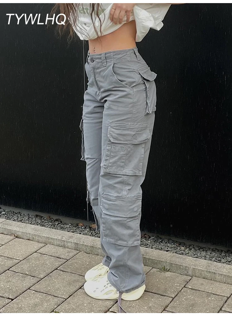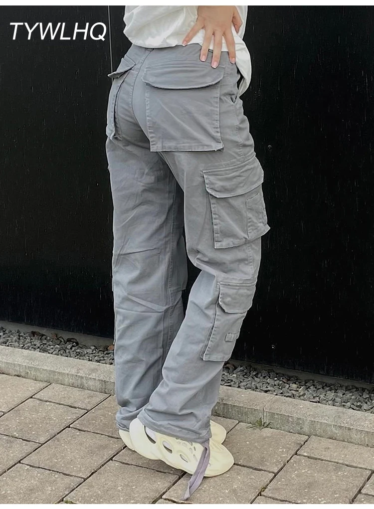 Vintage Cargo Pants Baggy Jeans Women Fashion 90s Streetwear Pockets Wide Leg High Waist Straight Y2k Denim Trousers Overalls
