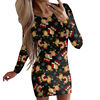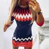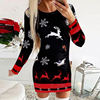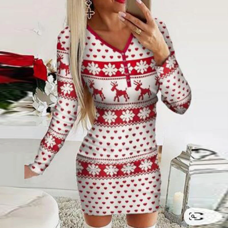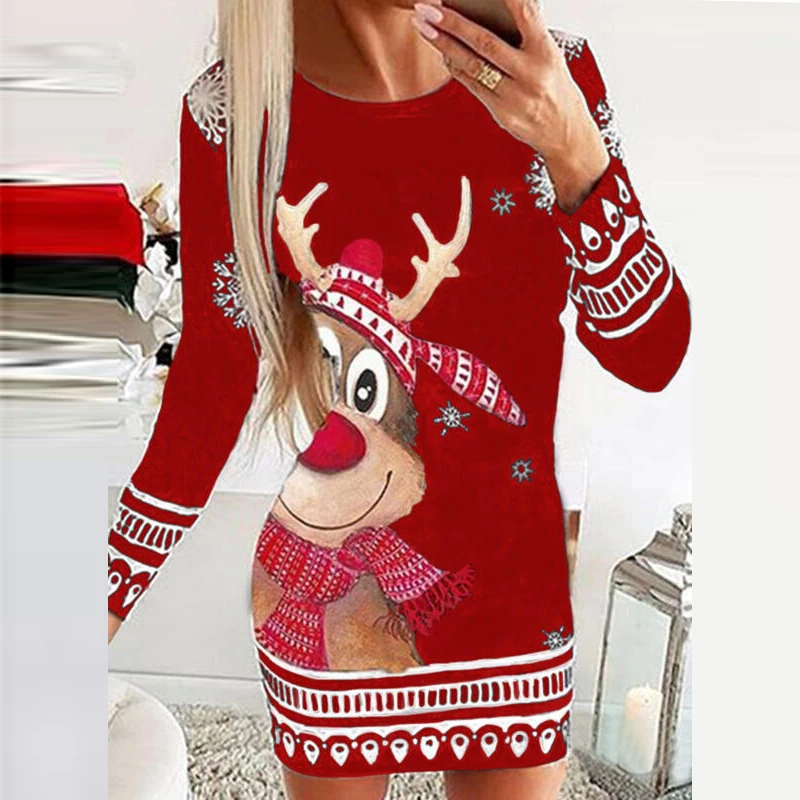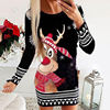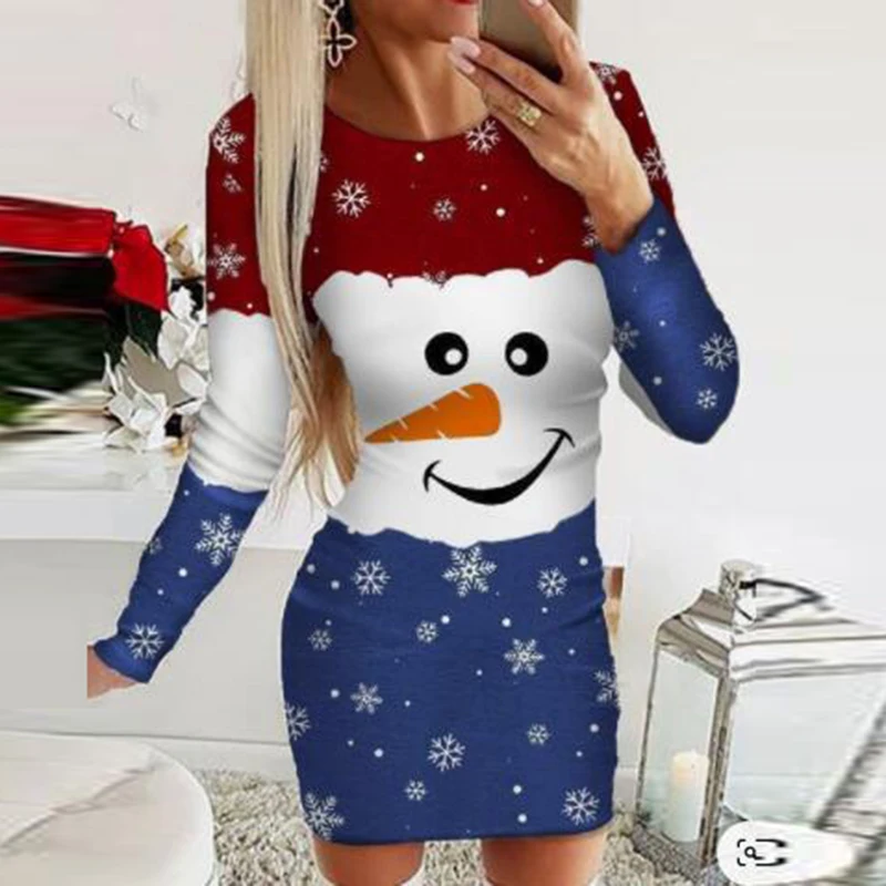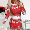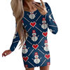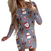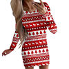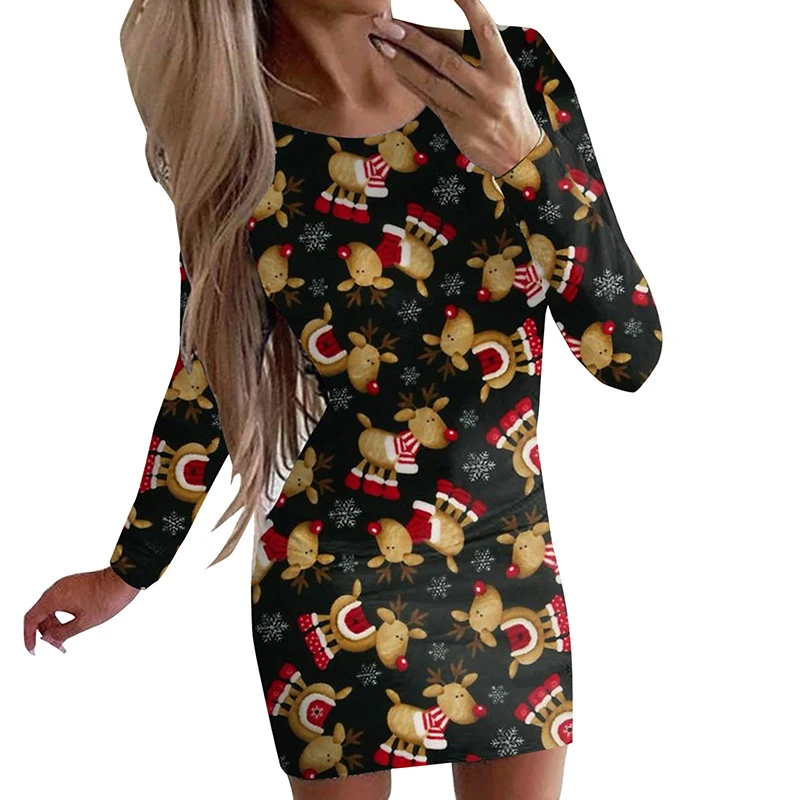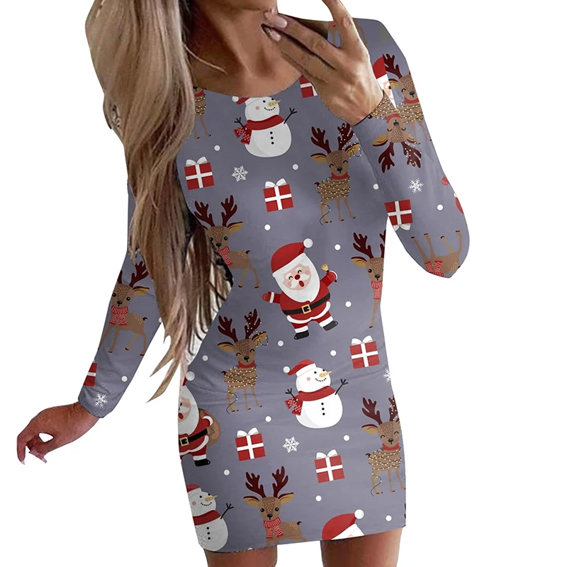 Vintage Christmas Mini Dresses For Women Winter O Neck Santa Claus Print Slim Dress Elegant Ladies Long Sleeve Bodycon Vestidos