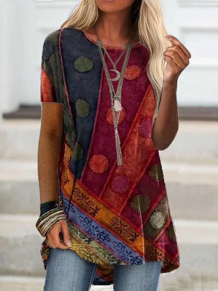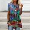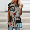 Vintage Face Print Women Blouse Shirt Summer Loose Short Sleeves Streetwear Shirts Elegant Ladies Casual O Neck Pullover Tops