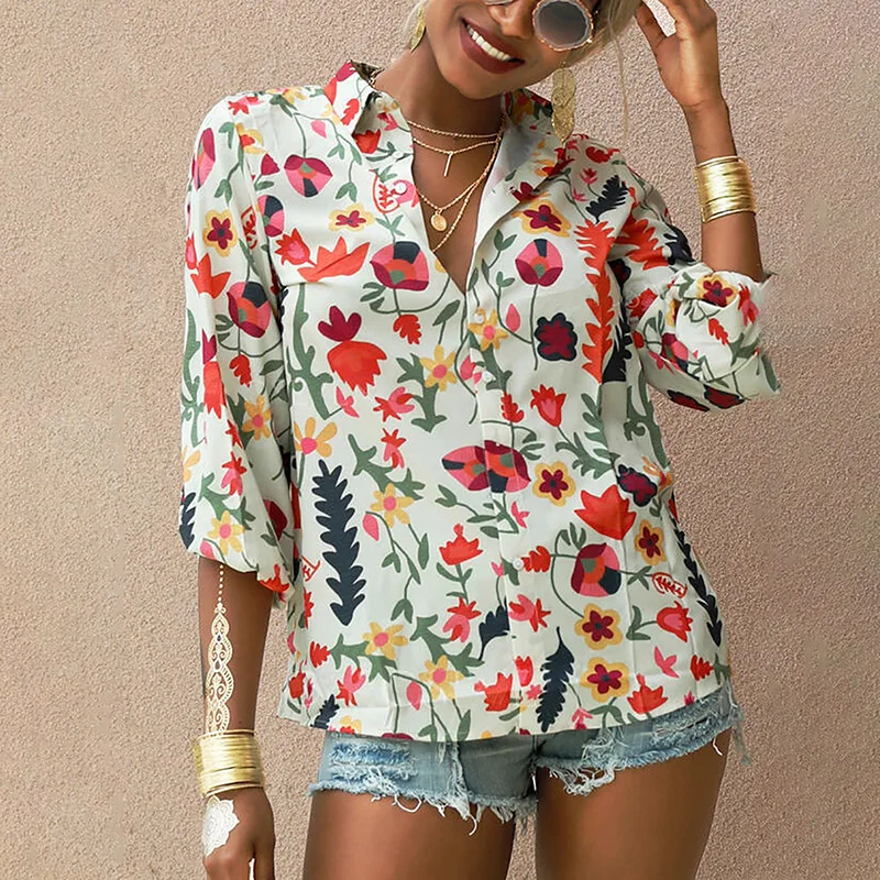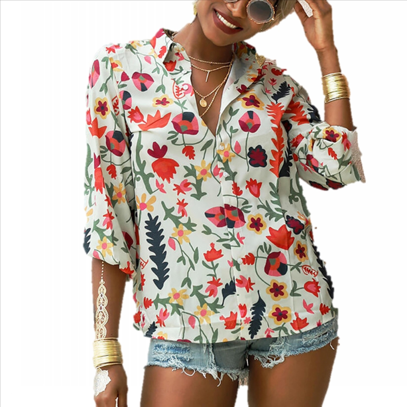 Vintage Floral Print Dress 2021 Autumn Urn-down Button Cardigan Ladies Casual Shirt Fashion Long-sleeved Loose Street Female Top